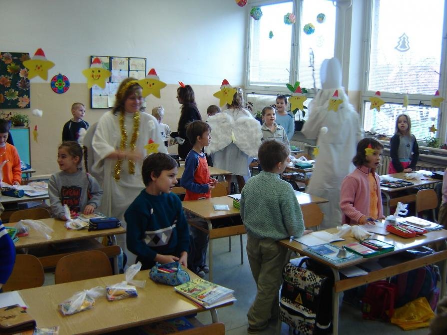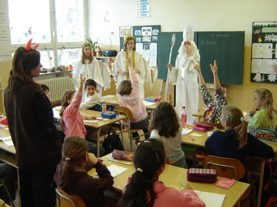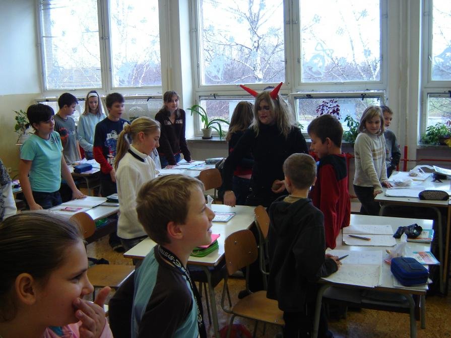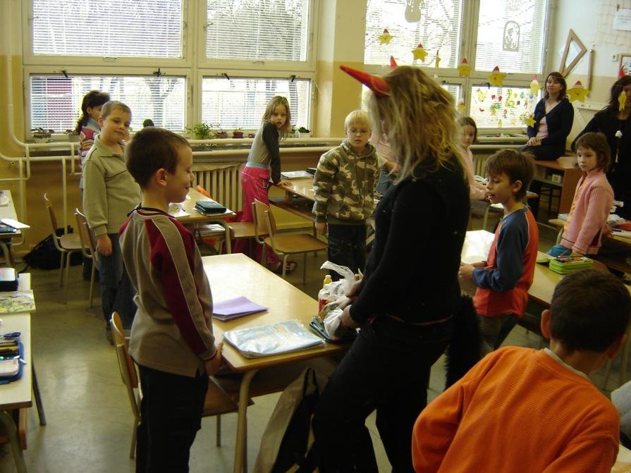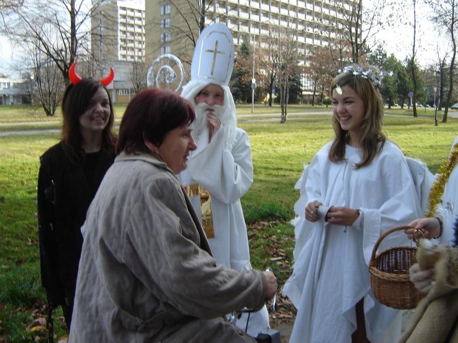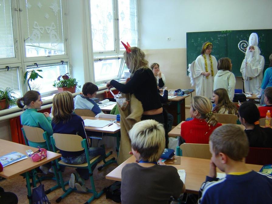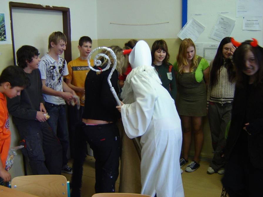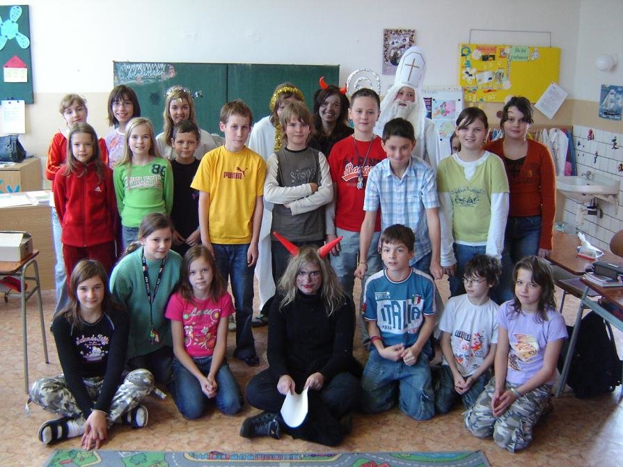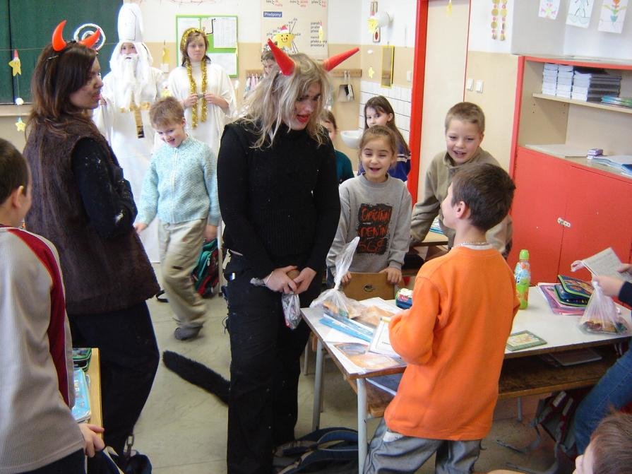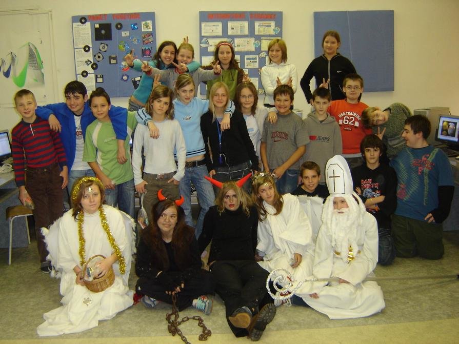6. 12. 2006 procházel školou Mikuláš s čerty a anděly. Hodné obdarovával, zlobivce si odnášeli čerti...:)