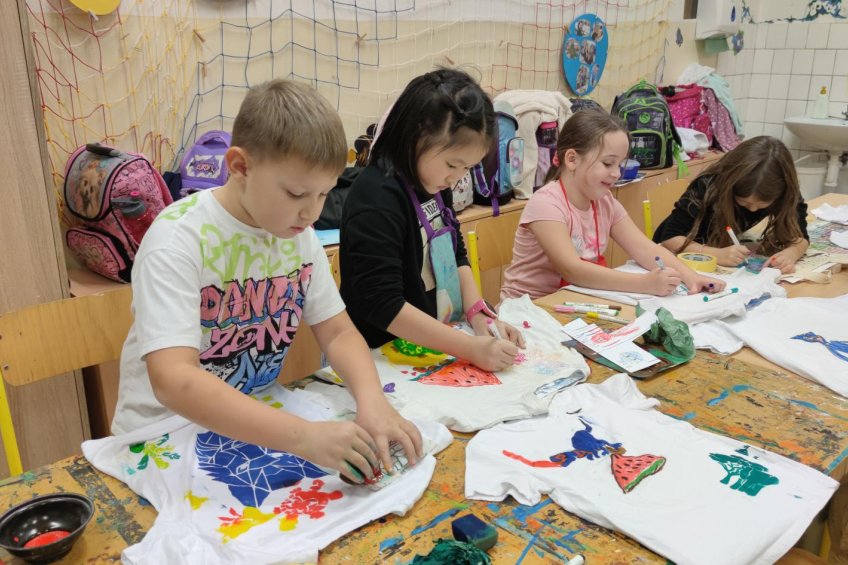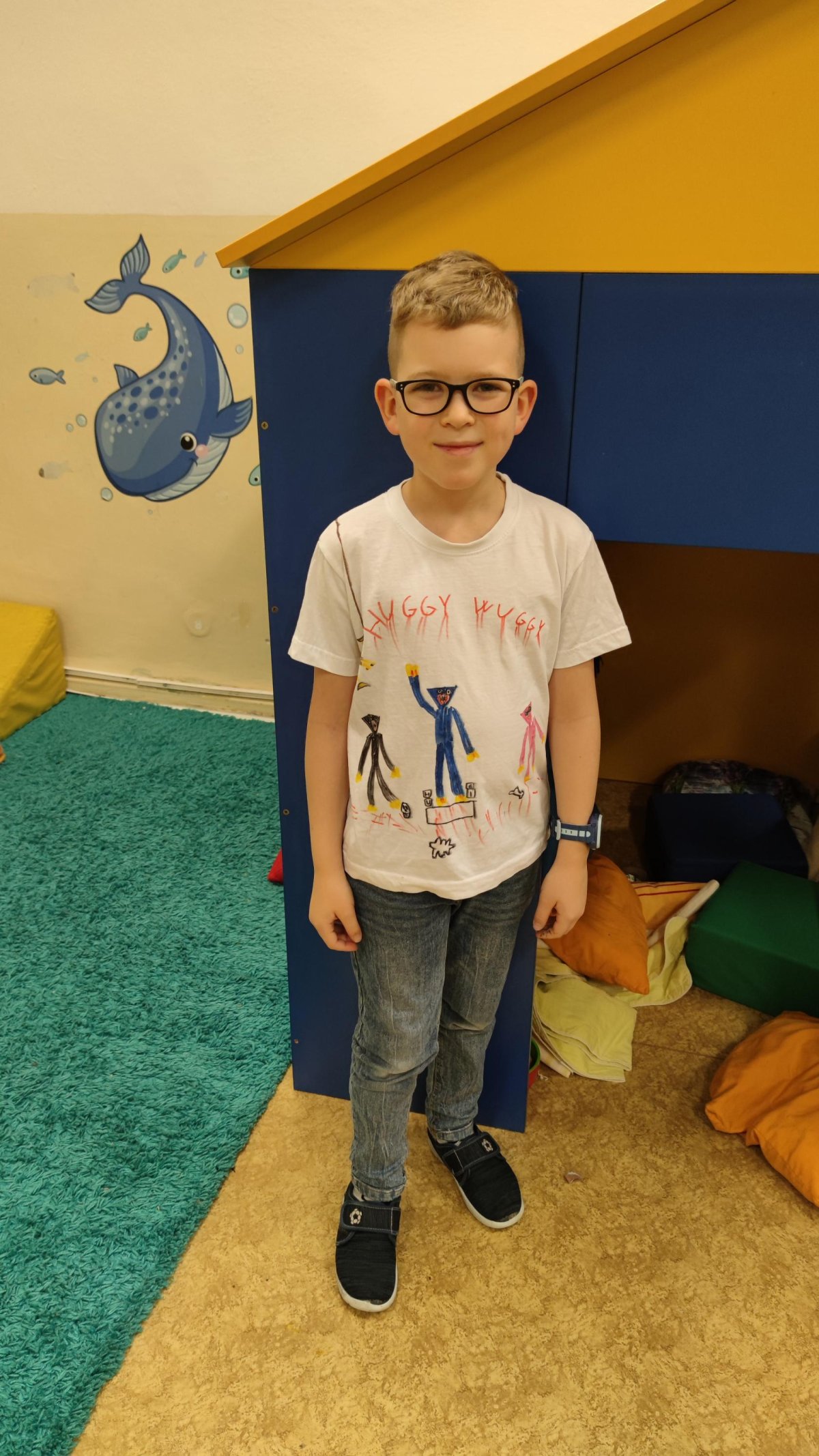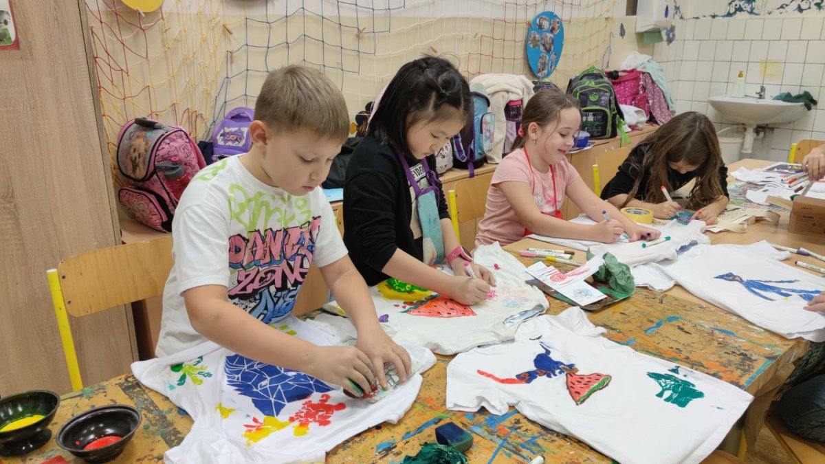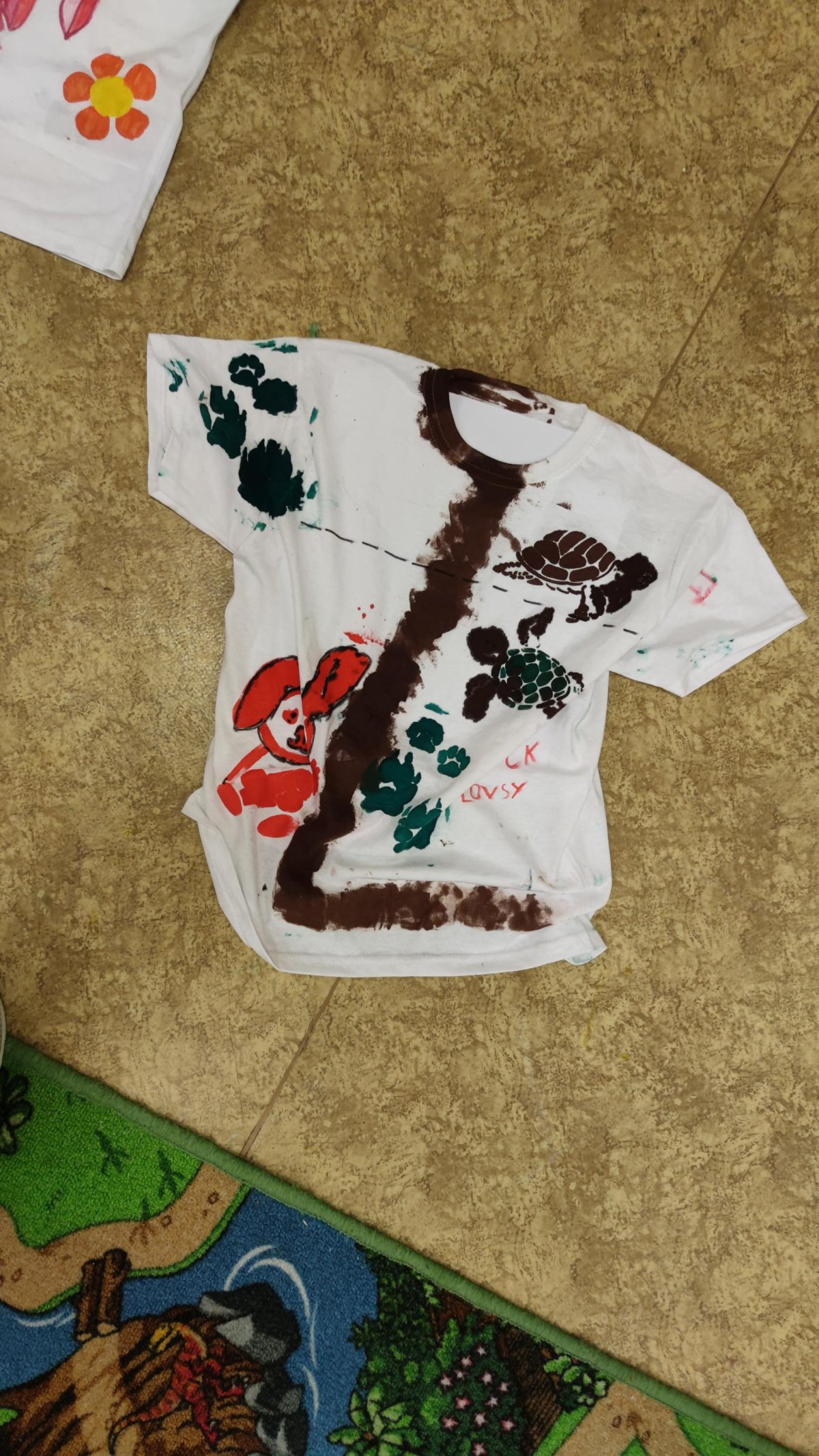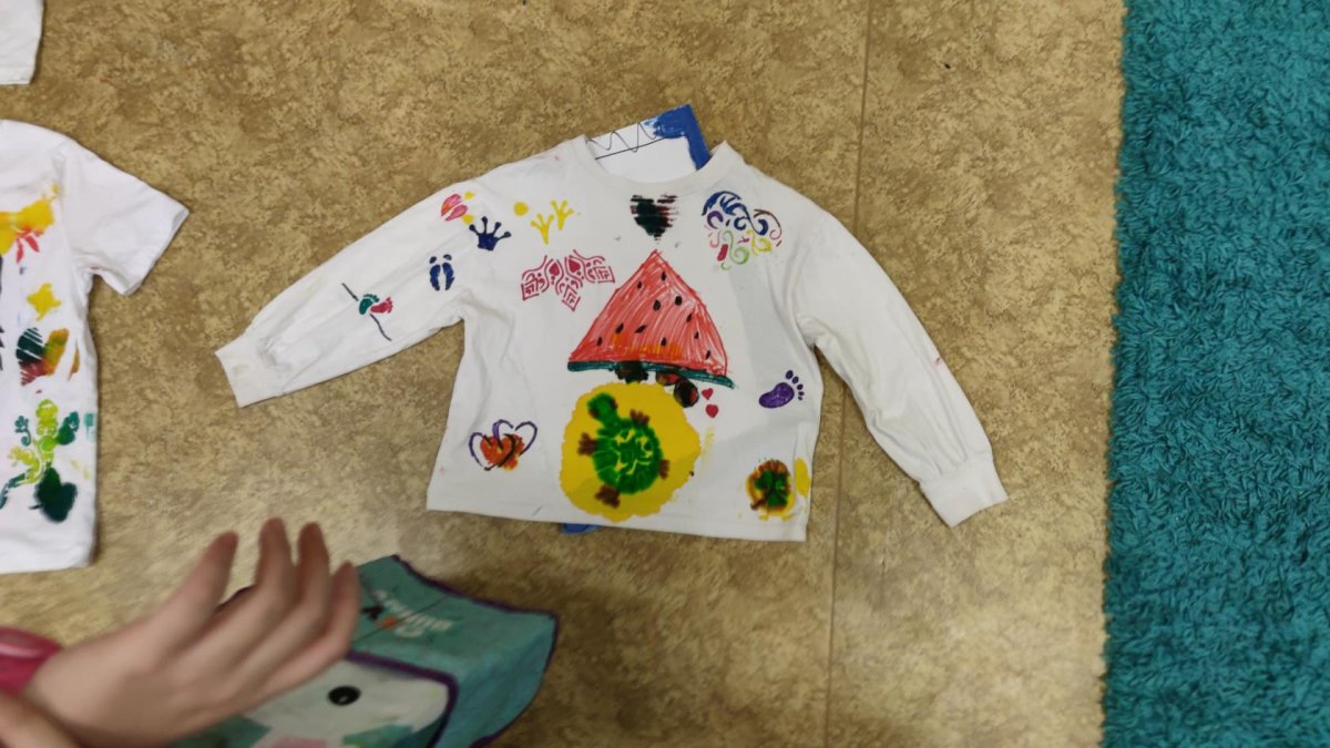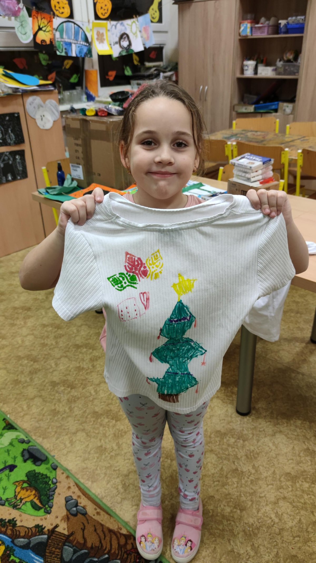 Seznámili jsme se s některými možnostmi, jak si nazdobit svá trička - využili jsme textilní fixy a spreje. Část trička jsme zdobili podle vlastní fantazie, část podle šablon.