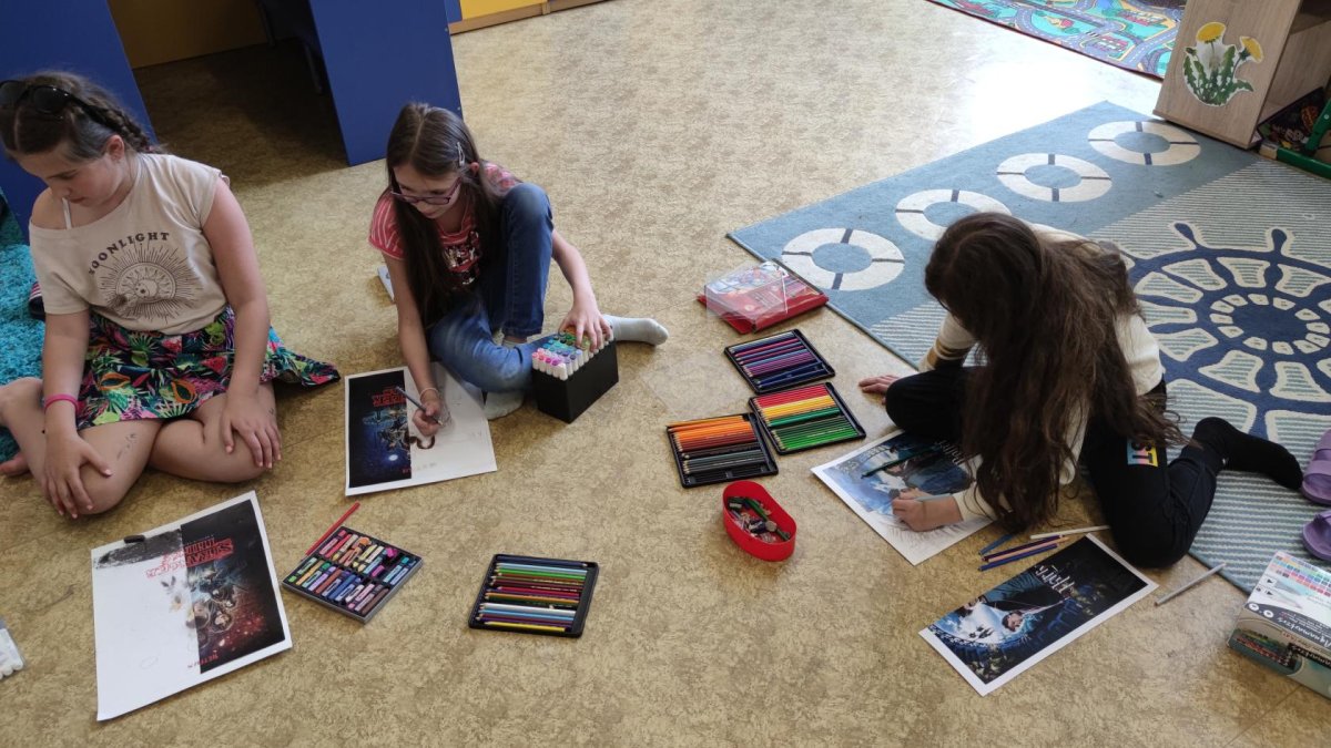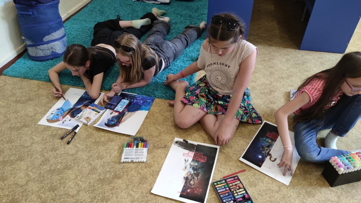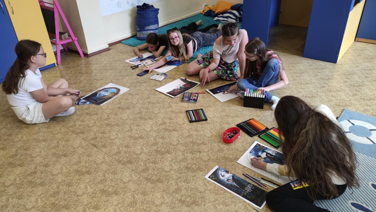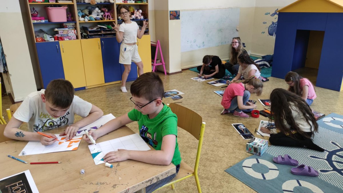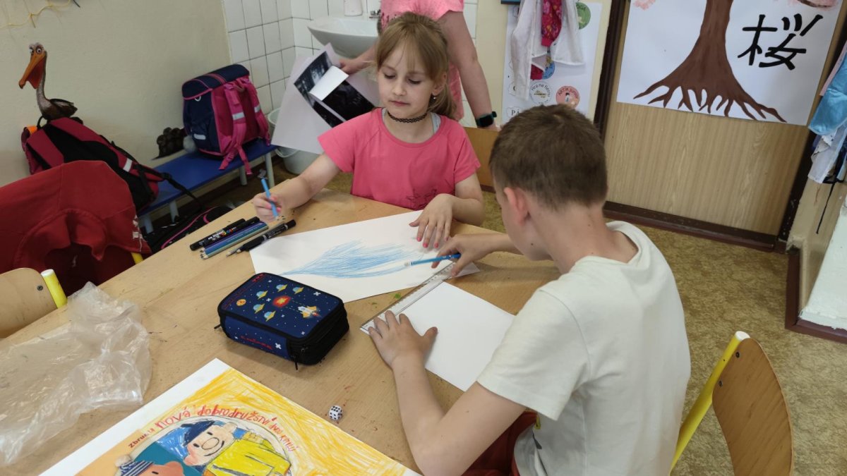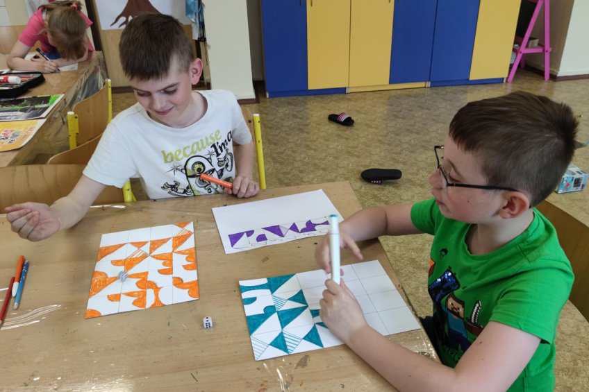 Dokončovali jsme naše práce z minulých kroužků a malovali jsme podle náhody - tedy podle toho, co nám padlo na kostkách :).
