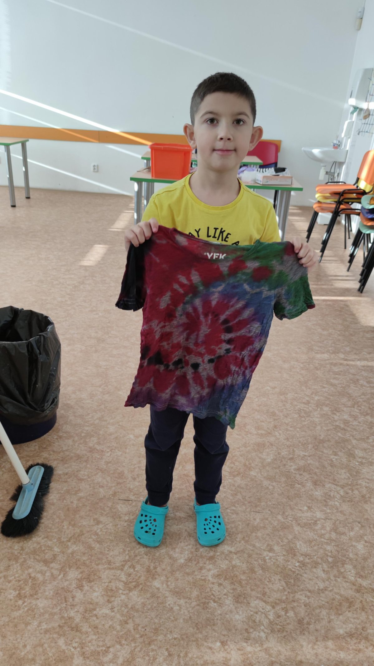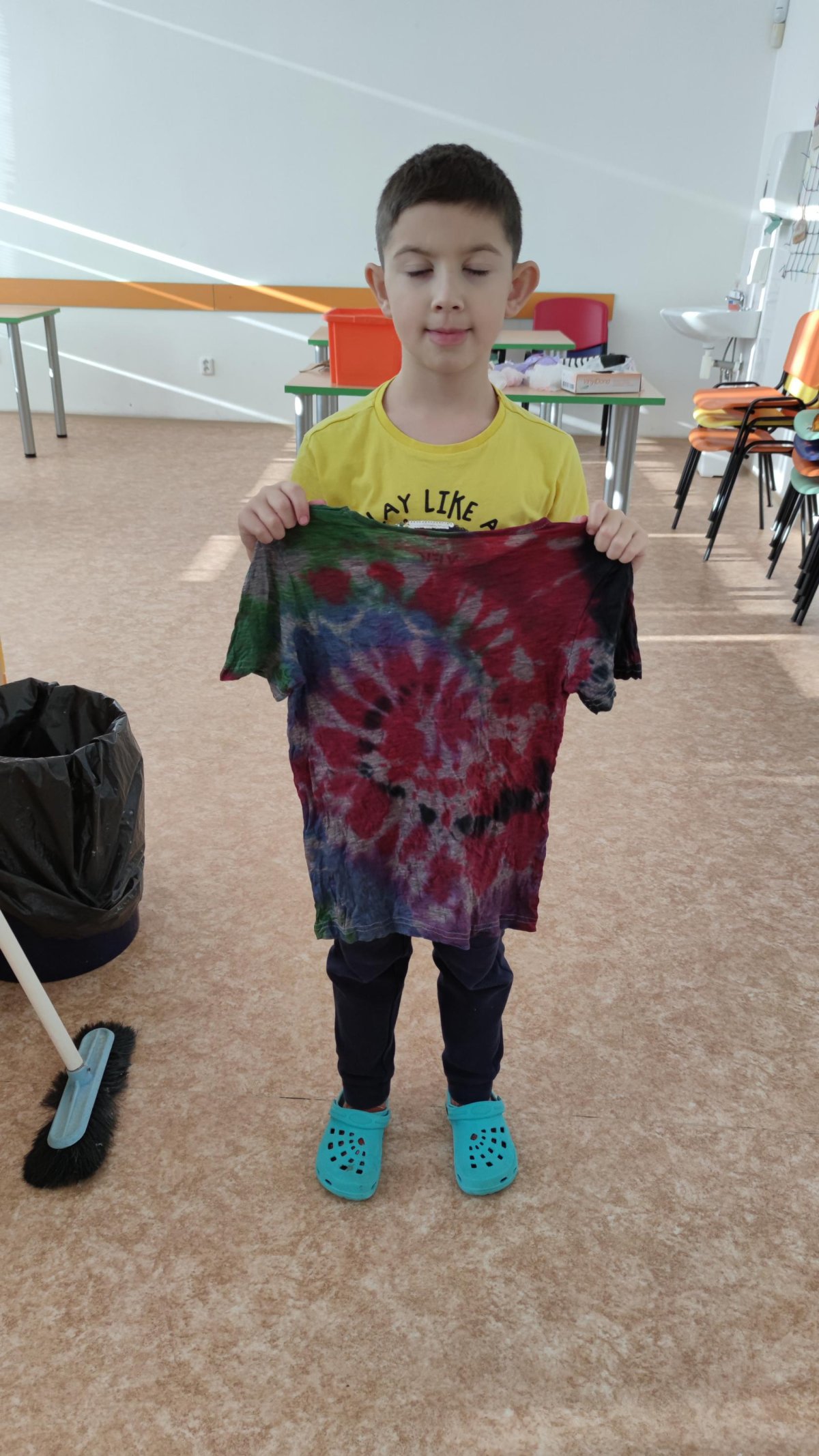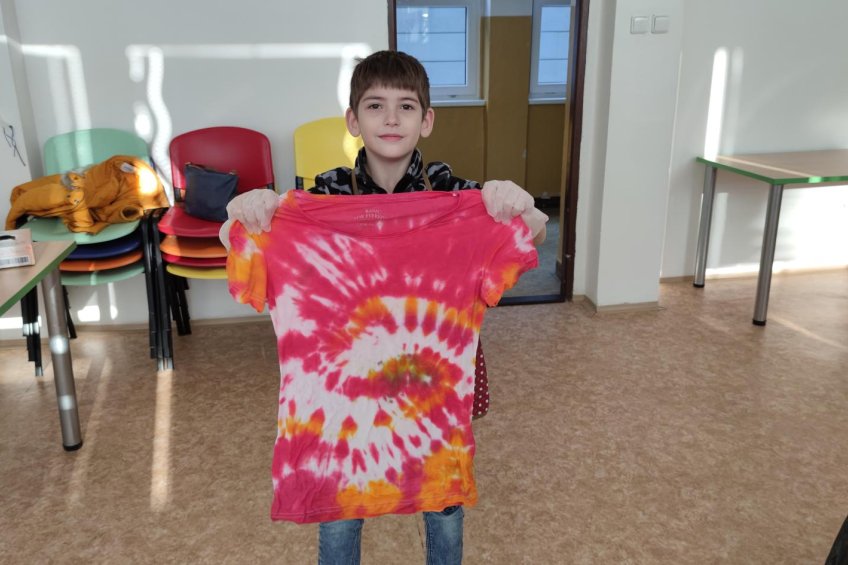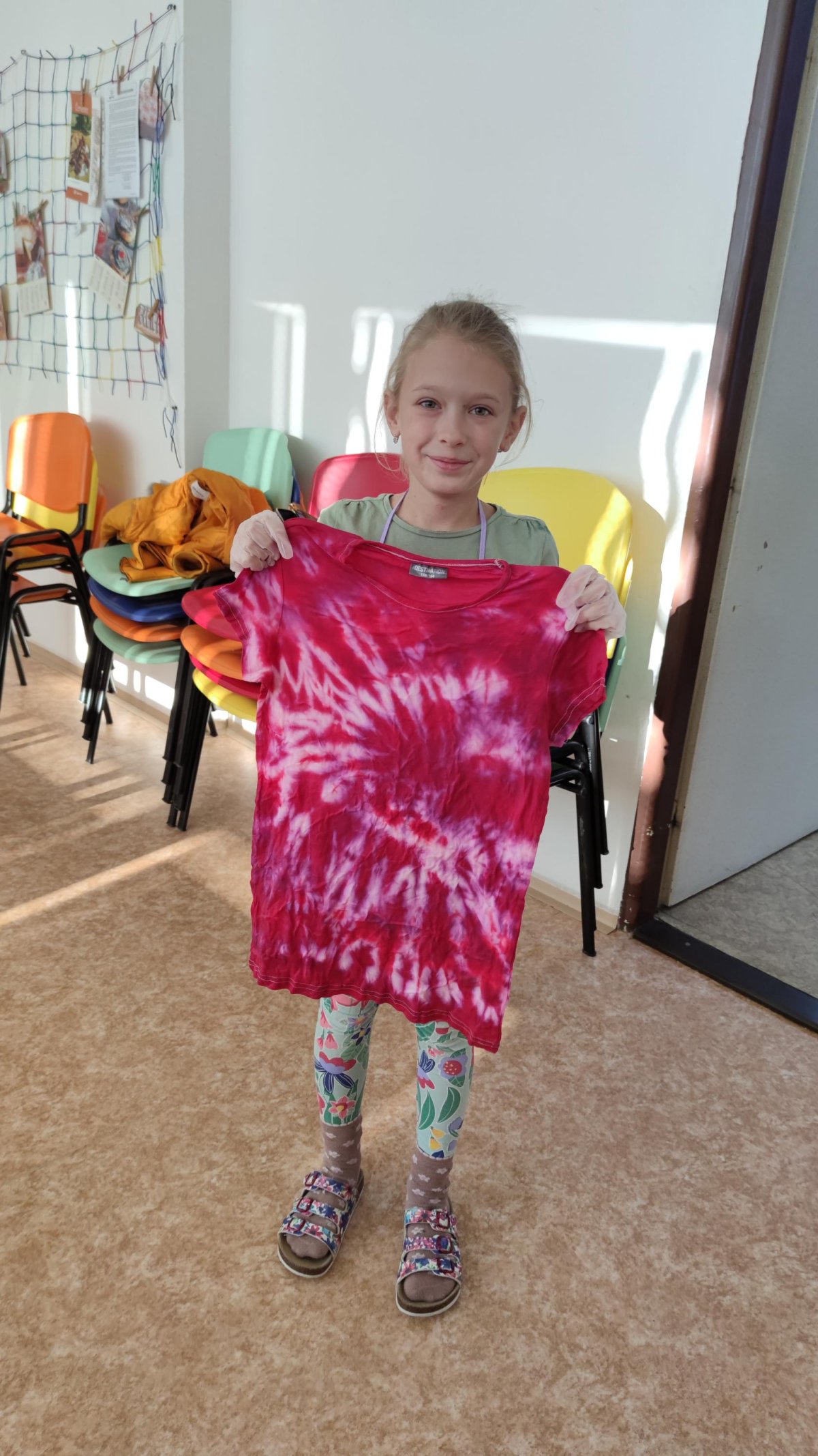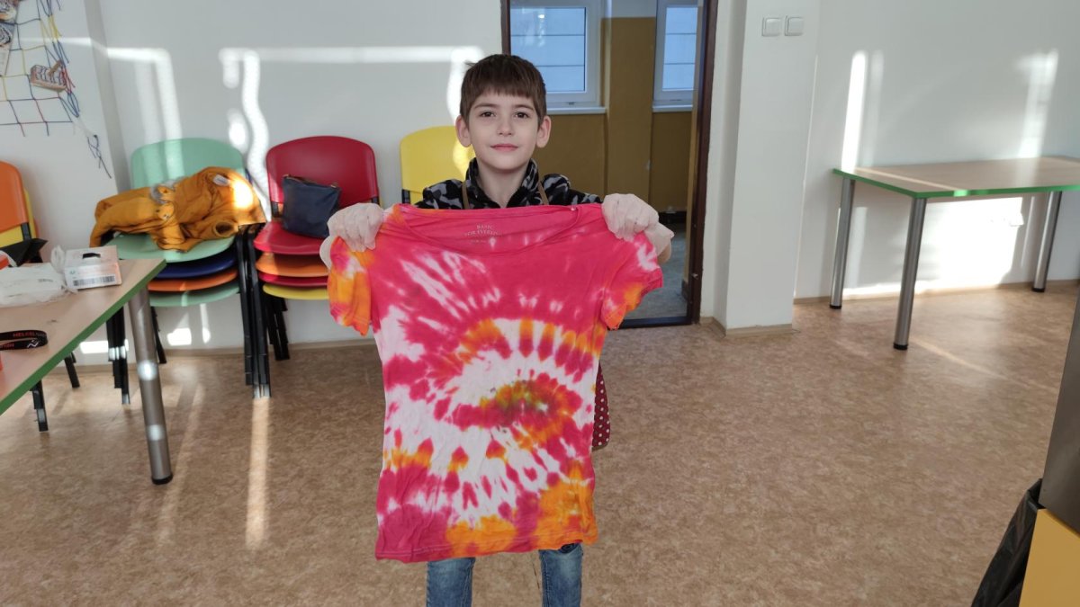 Někteří si svá trička nabatikovali, někteří je pomalovali fixy či temperami na textil. Ať tak či onak, máme originální trička vlastní výroby a je na ně radost pohledět! :)