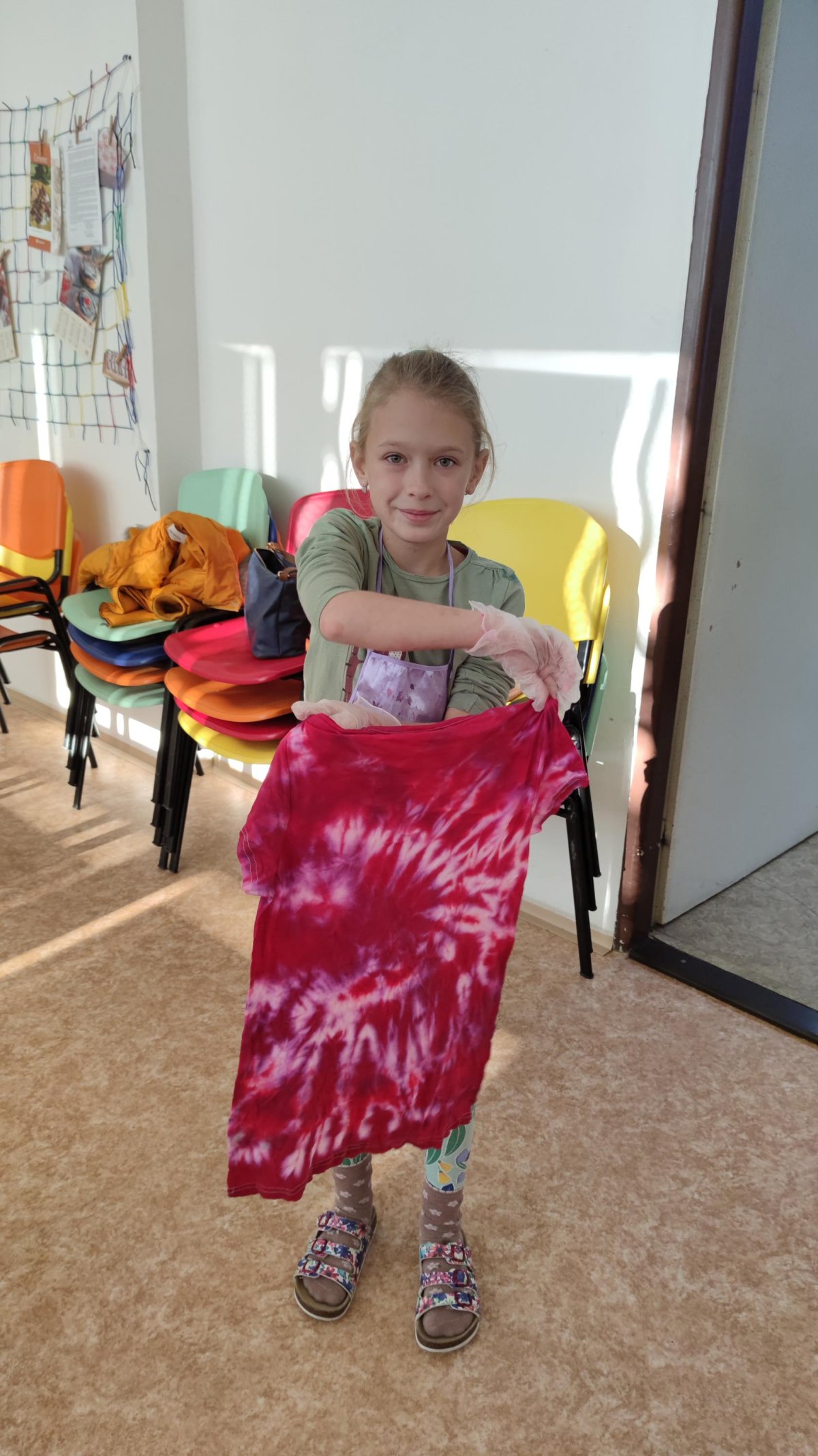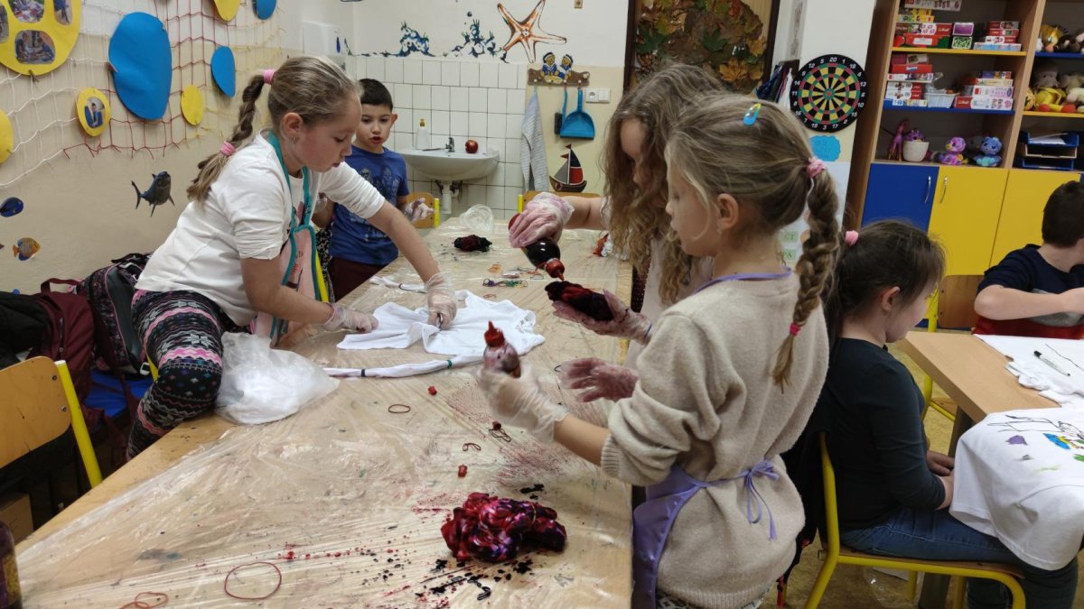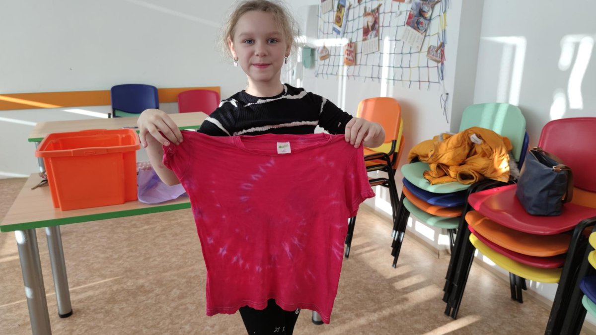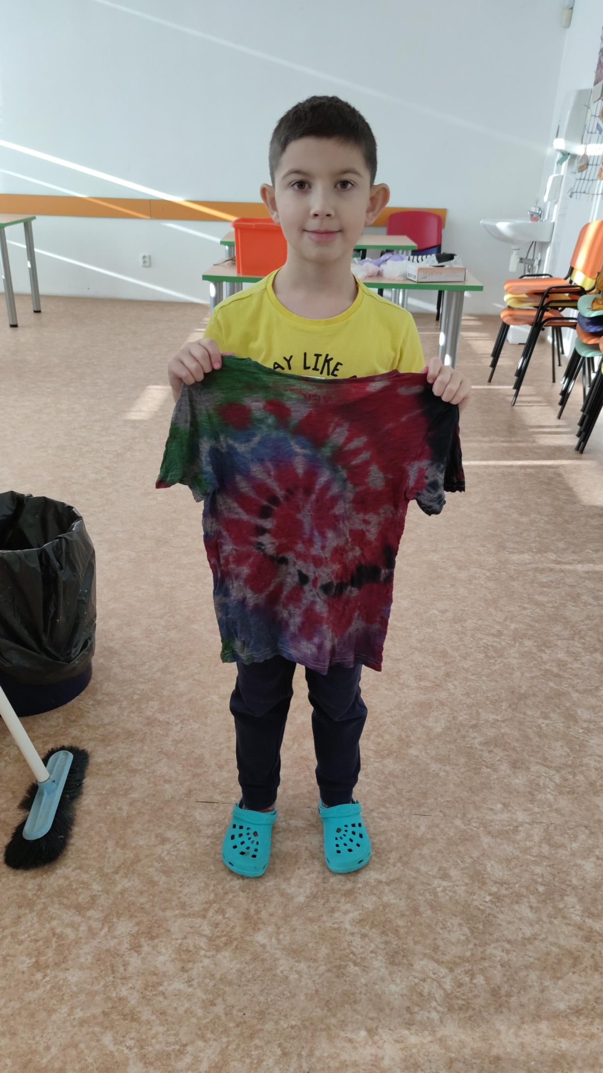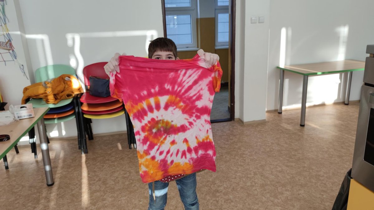 Někteří si svá trička nabatikovali, někteří je pomalovali fixy či temperami na textil. Ať tak či onak, máme originální trička vlastní výroby a je na ně radost pohledět! :)