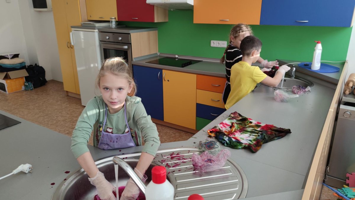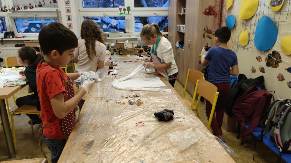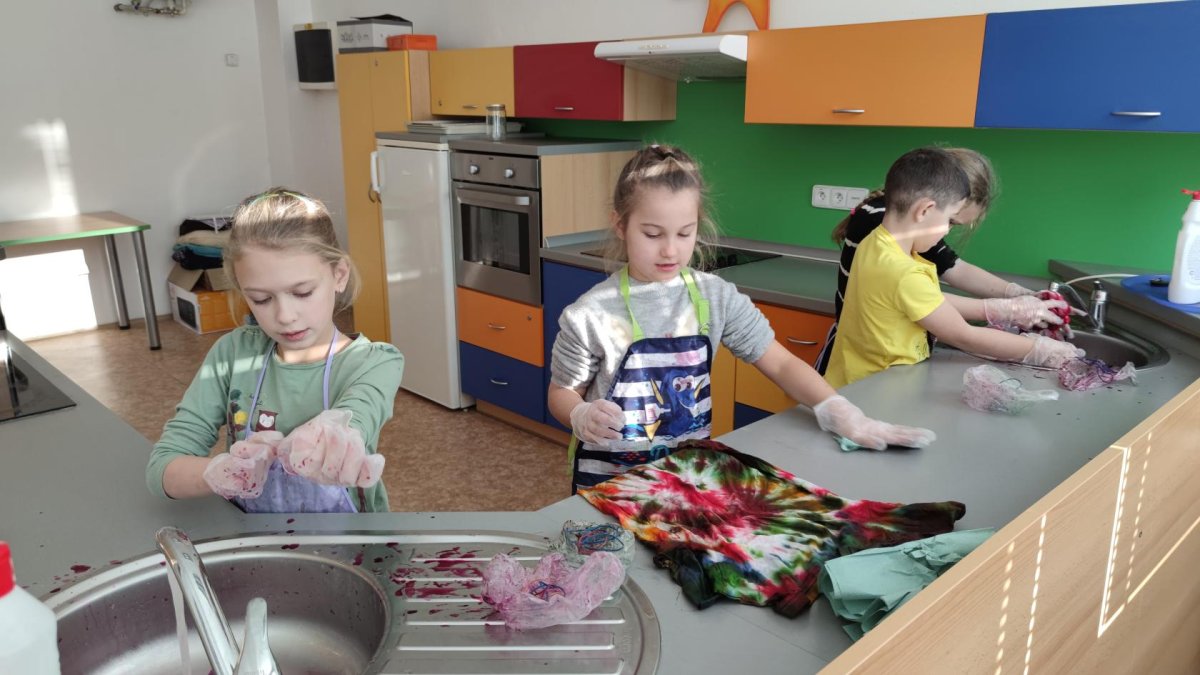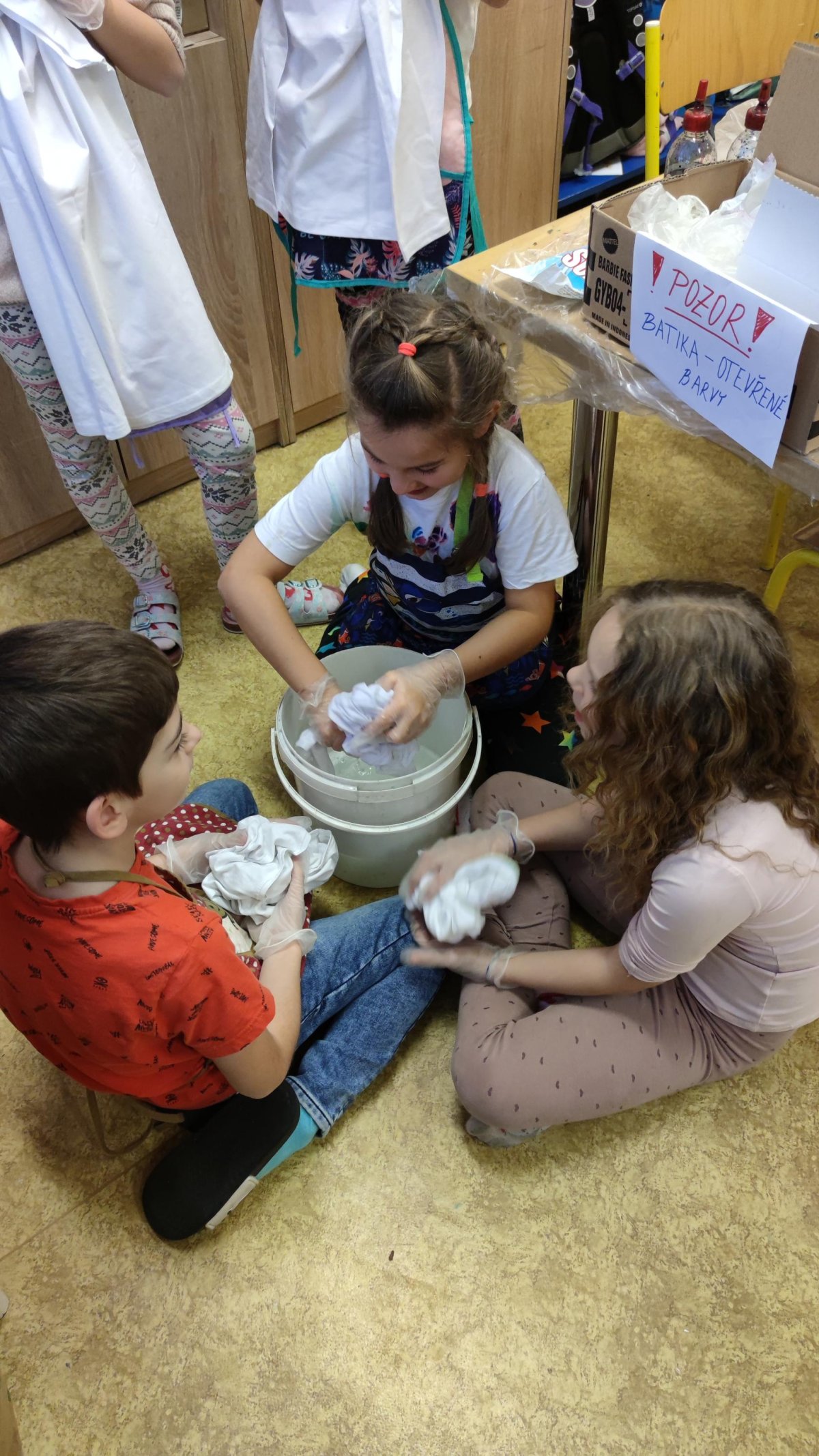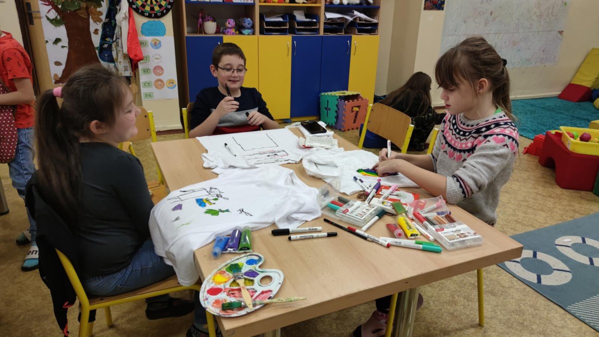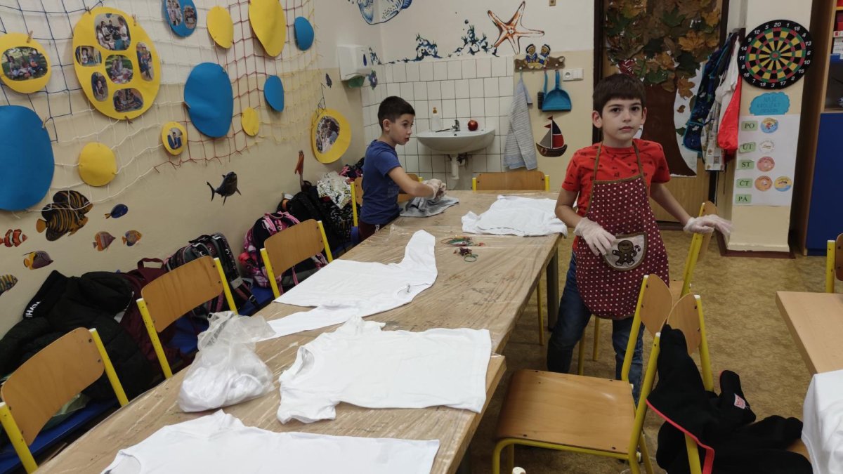 Někteří si svá trička nabatikovali, někteří je pomalovali fixy či temperami na textil. Ať tak či onak, máme originální trička vlastní výroby a je na ně radost pohledět! :)
