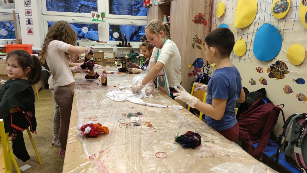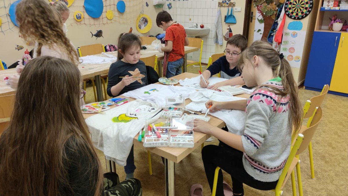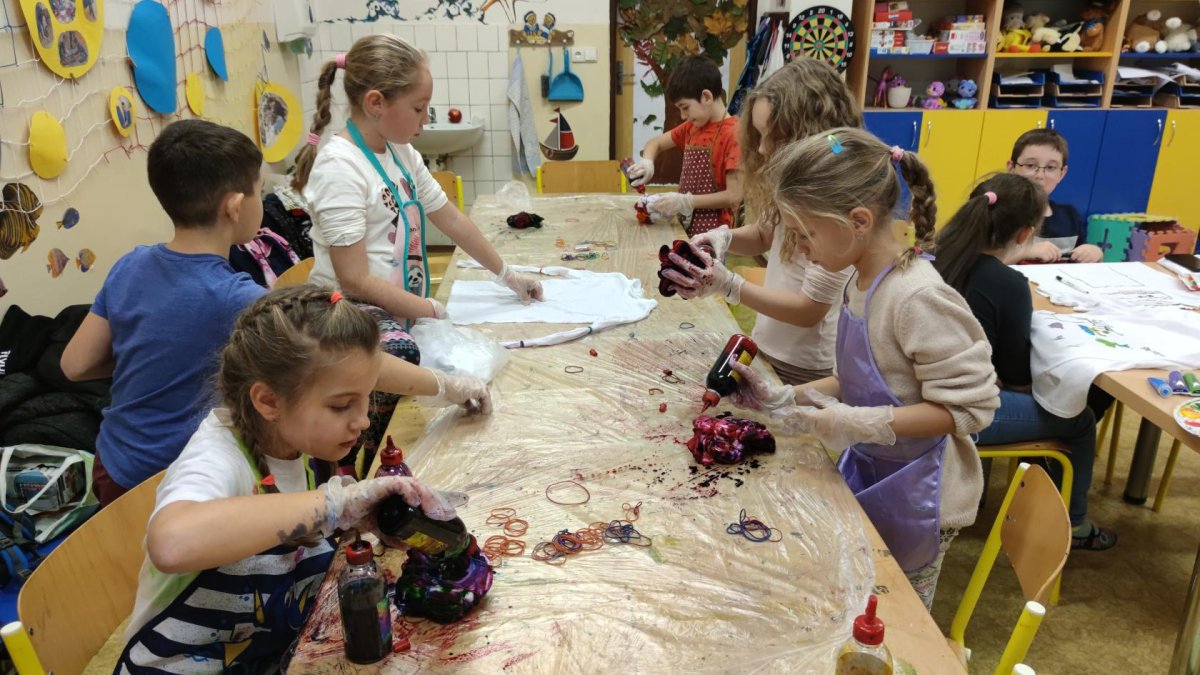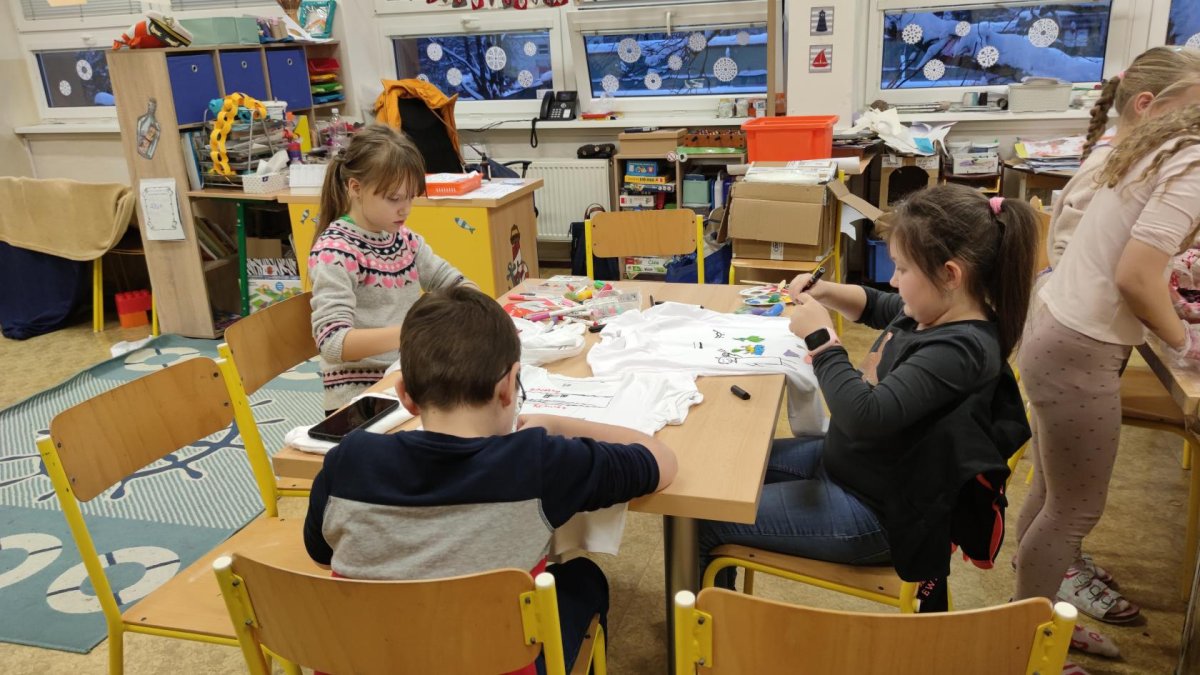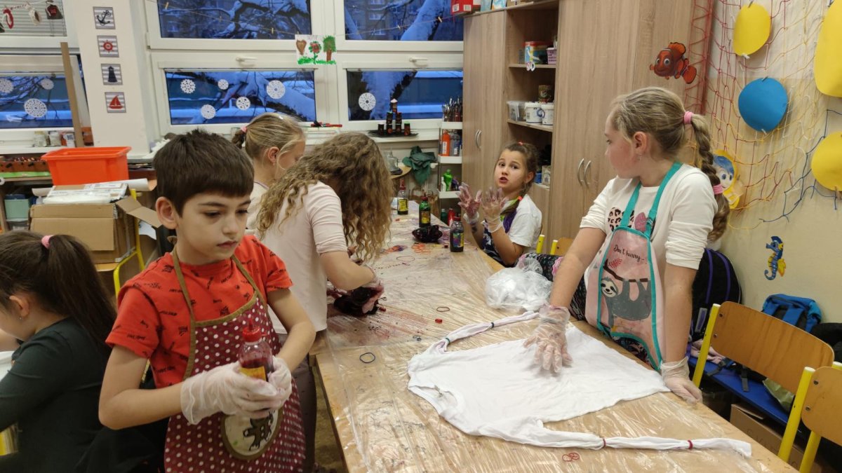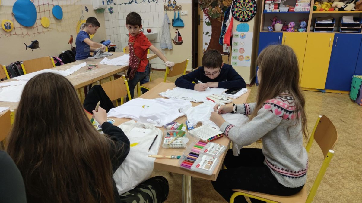 Někteří si svá trička nabatikovali, někteří je pomalovali fixy či temperami na textil. Ať tak či onak, máme originální trička vlastní výroby a je na ně radost pohledět! :)