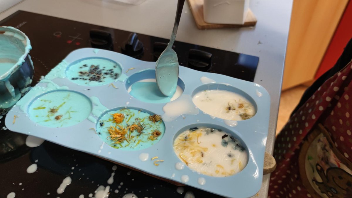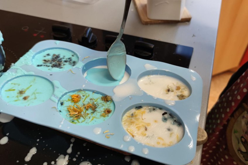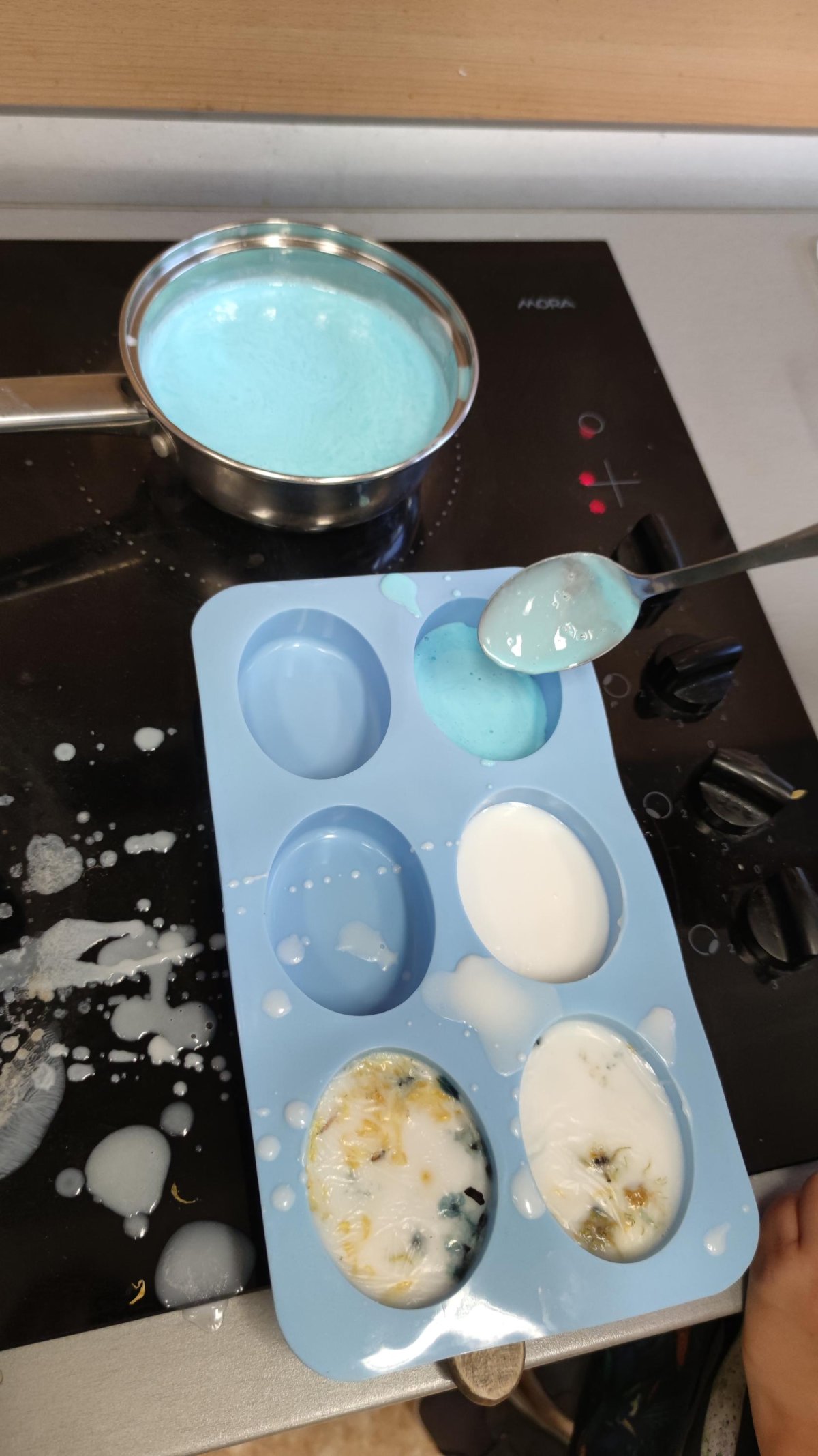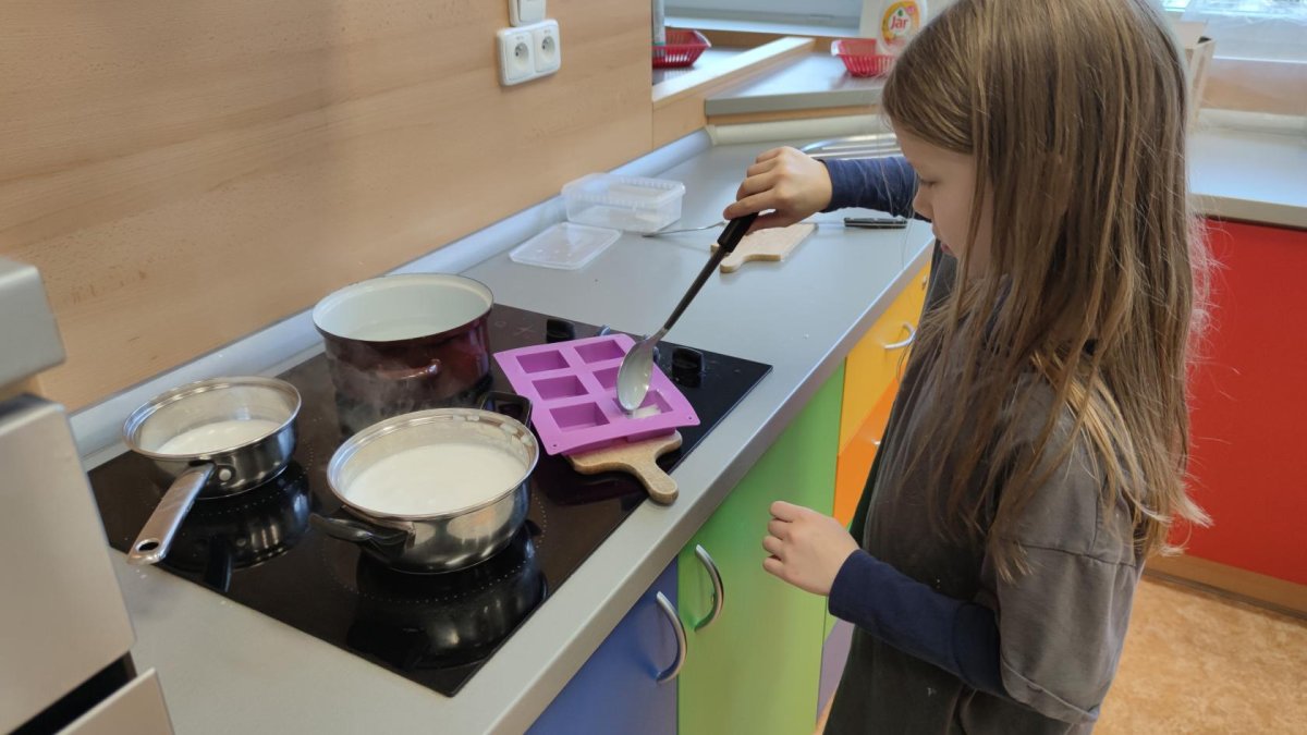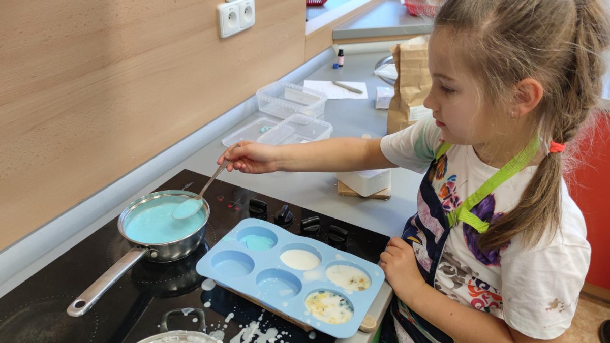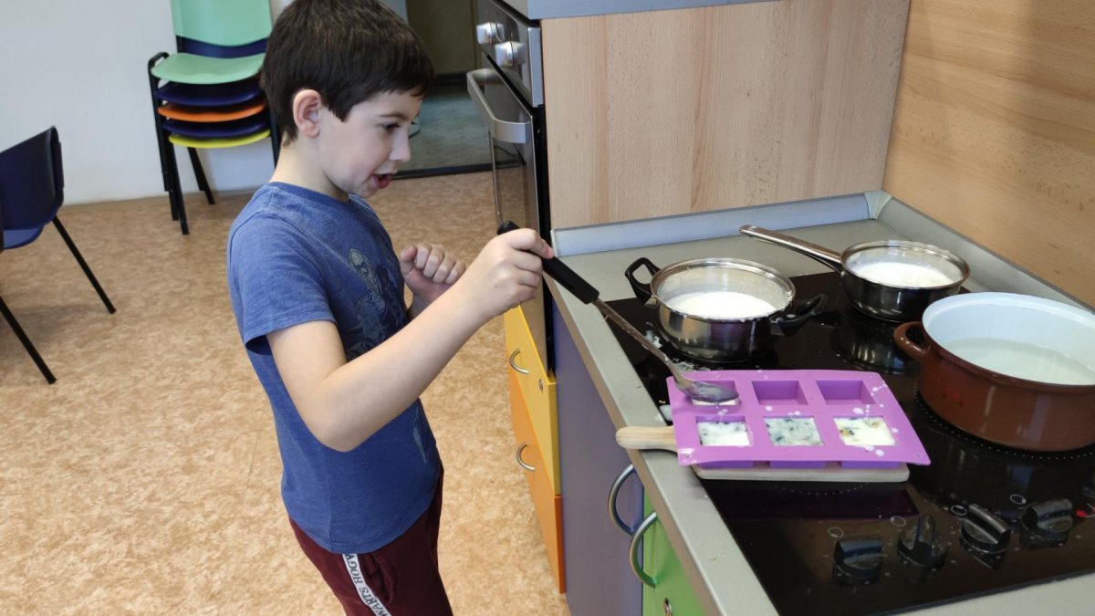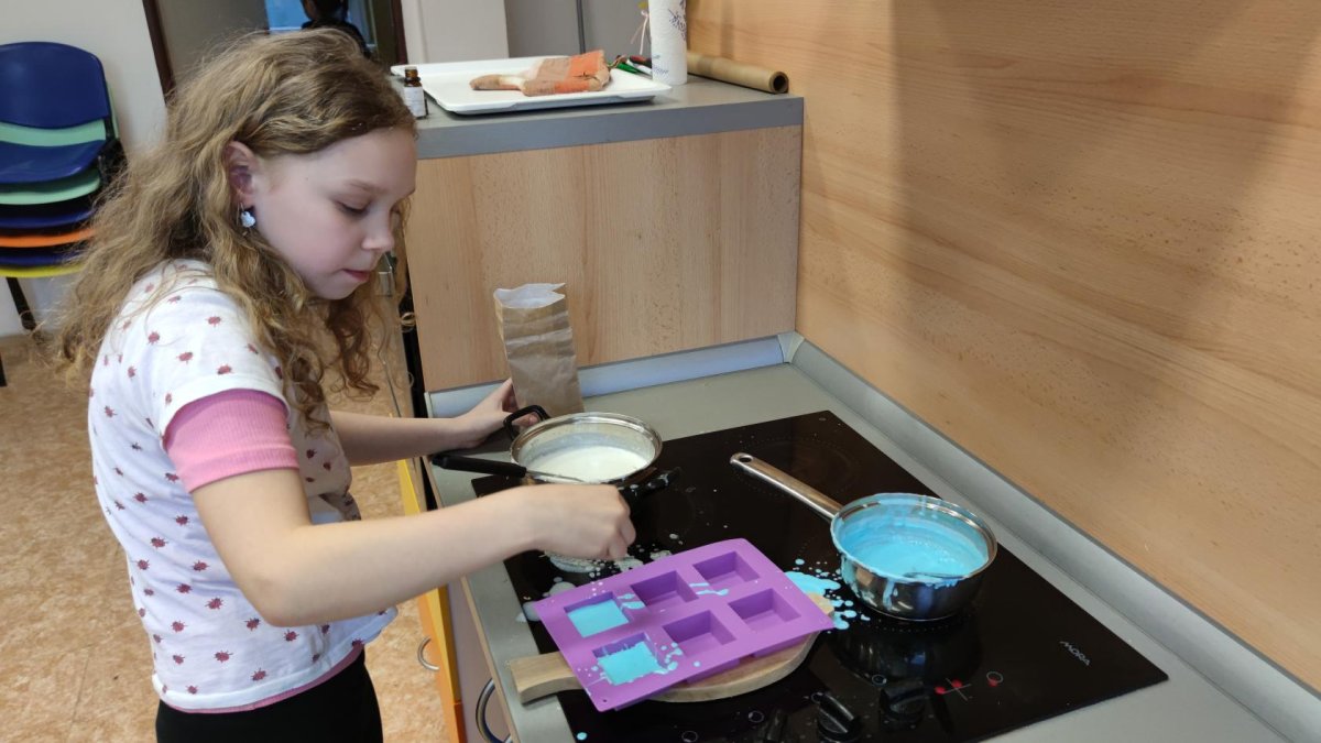 Rádi si vyrobíme domácí mýdlo. Tentokrát jsme naši výrobu posunuli zase o kousek dál a poprvé jsme si vyzkoušeli obarvení mýdlové hmoty, a tak máme krásně šmoulí modrou. Mýdla budeme ještě příště dokončovat. Kdo zrovna netvořil mýdlo, rozvíjel představivost a výtvarné myšlení - kreslili jsme totiž to, co k sobě (ne)patří :).