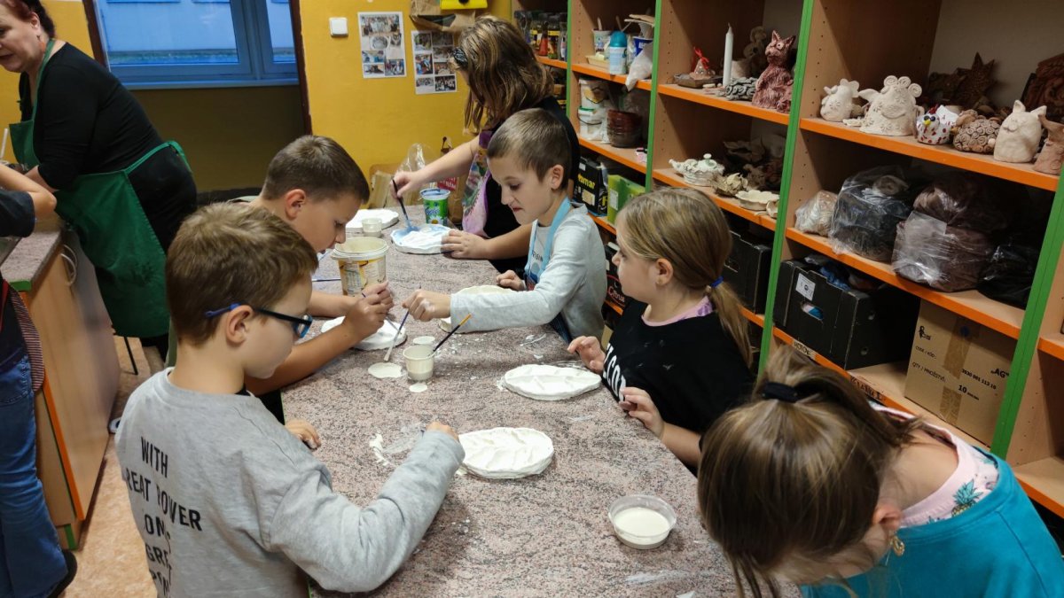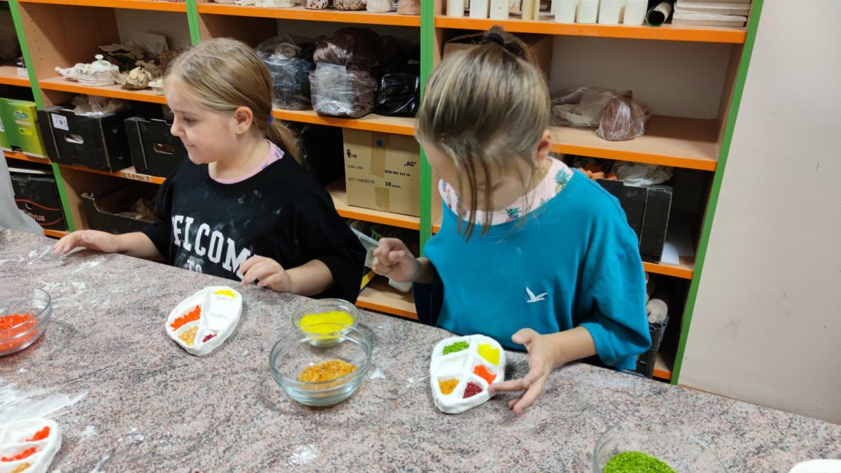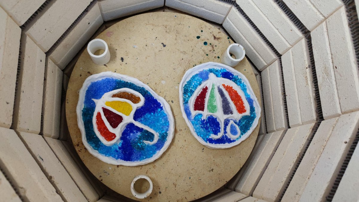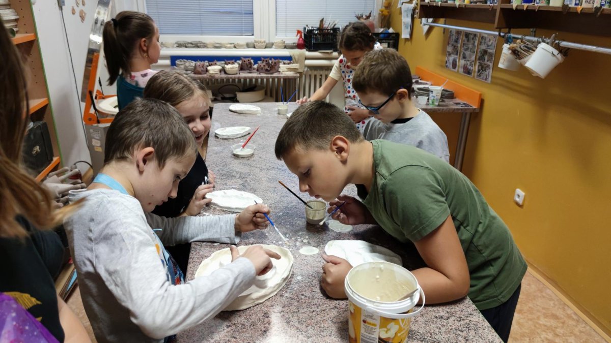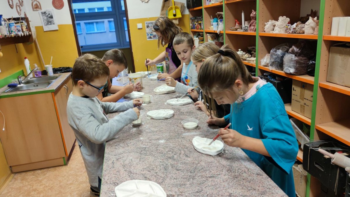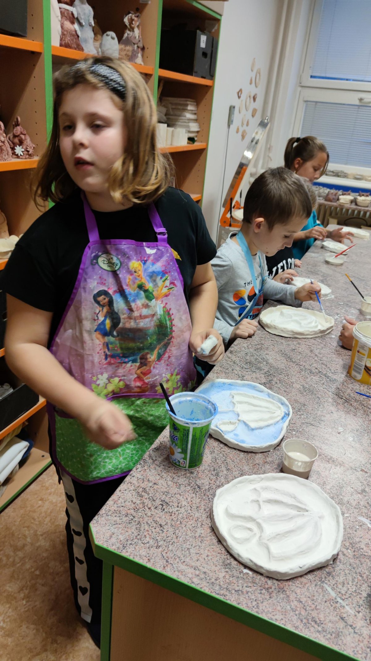 Poprvé jsme glazovali. Využili jsme transparentní glazuru, která dodá našim výrobkům lesk. Výrobky jsme doplnili o barevná sklíčka.