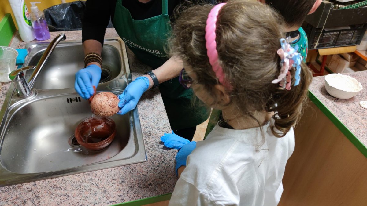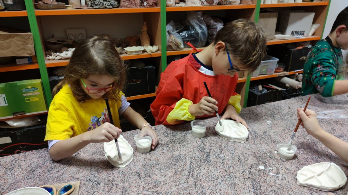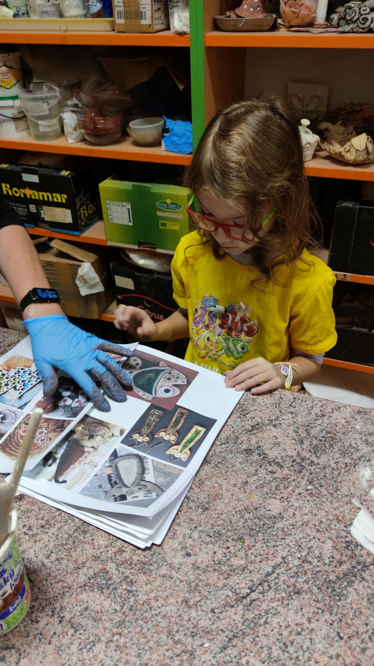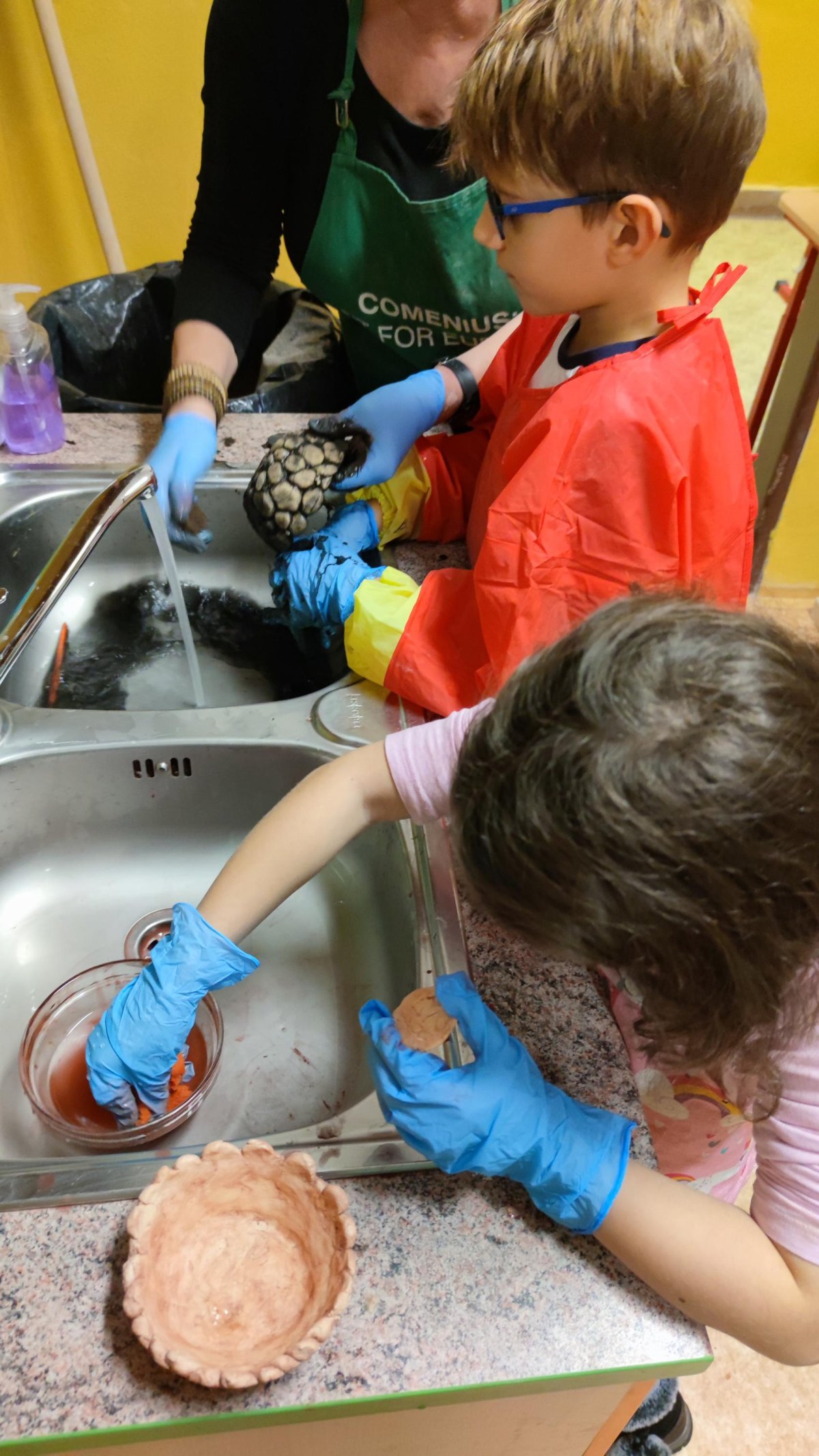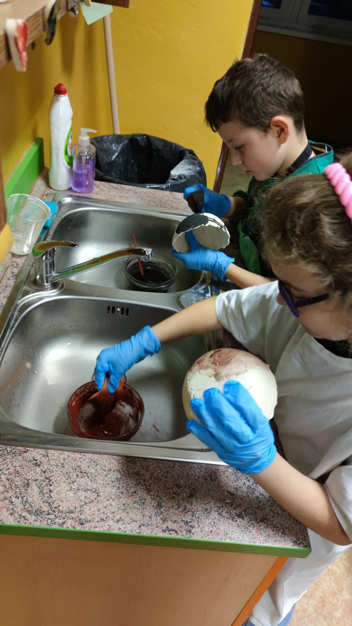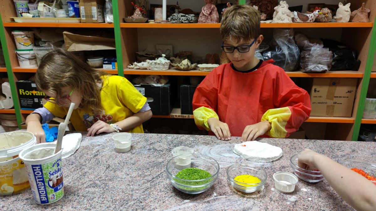 Listy jsme naglazovali transparentní glazurou a vyplnili barevnými sklíčky. Kdo měl čas, bureloval/feprenoval misky.