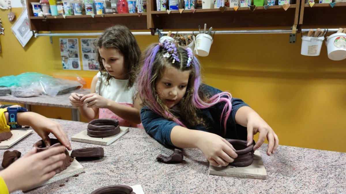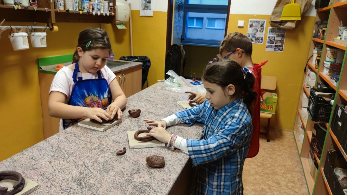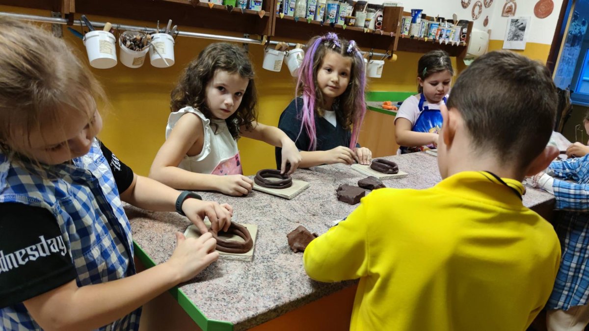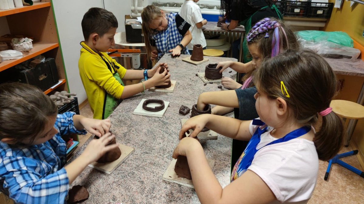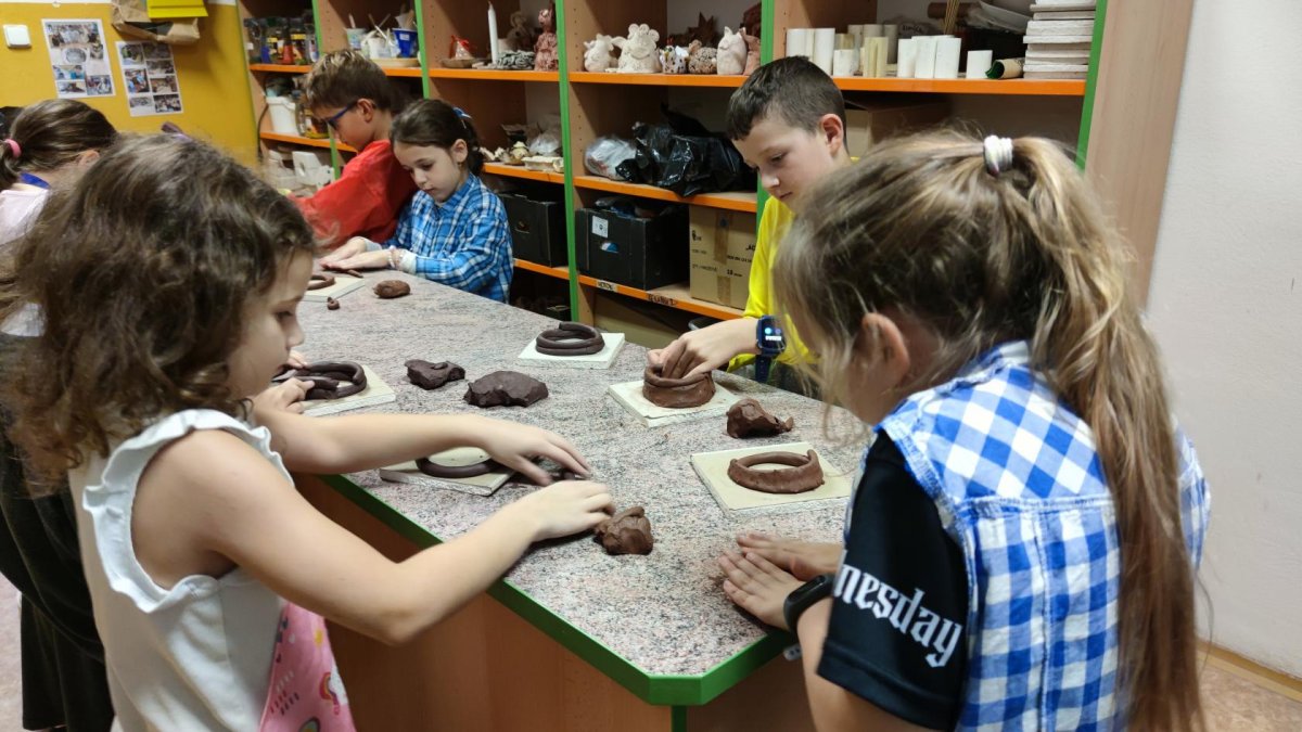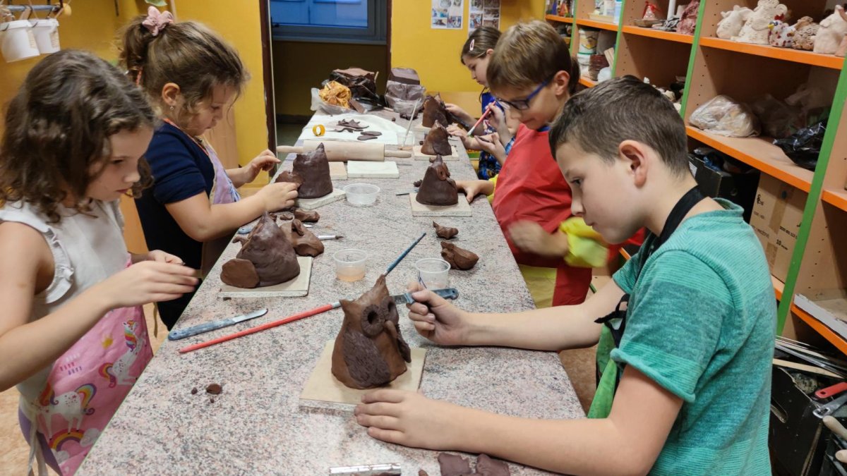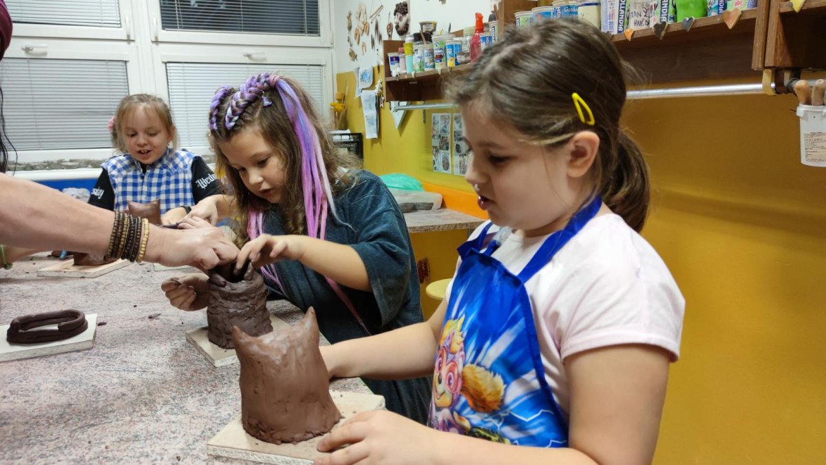 Naším prvním větším keramickým výrobkem se stala sovička. Tvořili jsme ze dvou různých druhů hlín. Po výpalu sovička poslouží jako dekorativní lucernička.