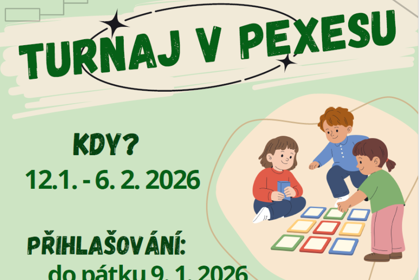 Přidáš se? Chystá se velký celodružinový turnaj v pexesu. Přihlašování probíhá u p.v. Petry Dvorské do pátku 9. 1. 2026.