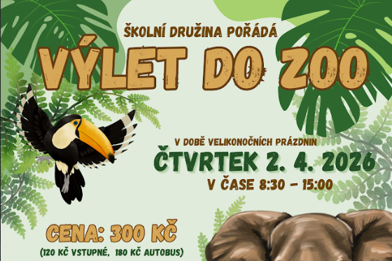 Ve čtvrtek 2. 4. 2026 (velikonoční prázdniny) pořádáme pro zájemce z řad družinových dětí výlet do Zoo Ostrava.