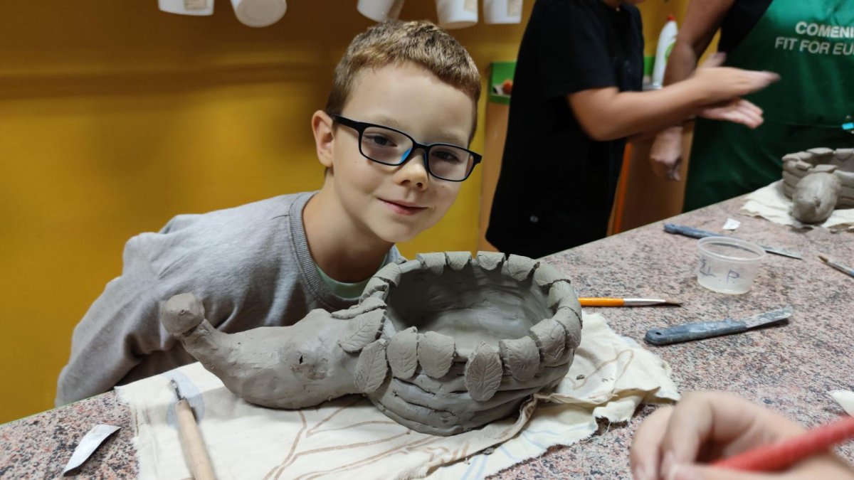 Výrobky v kreativních kroužcích jsou tematické - podzimní. Ježečci, sovy, barevné listy a deštníky. Nejen v Tvořílku se využívaly přírodní materiály. Výtvarný kroužek Artík se ponořil do tématu "Šneci", který zpracovával pro výtvarnou soutěž.