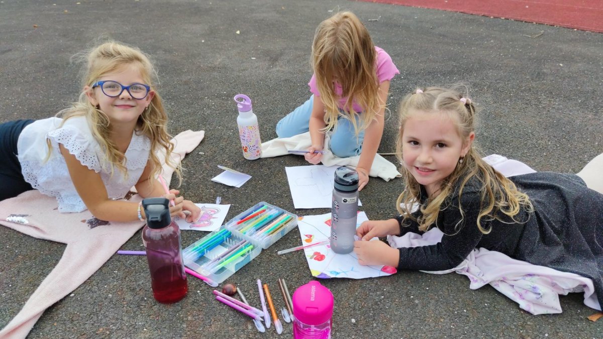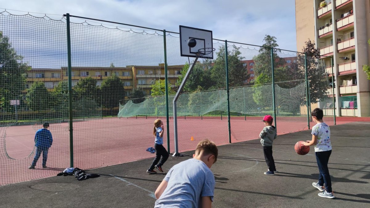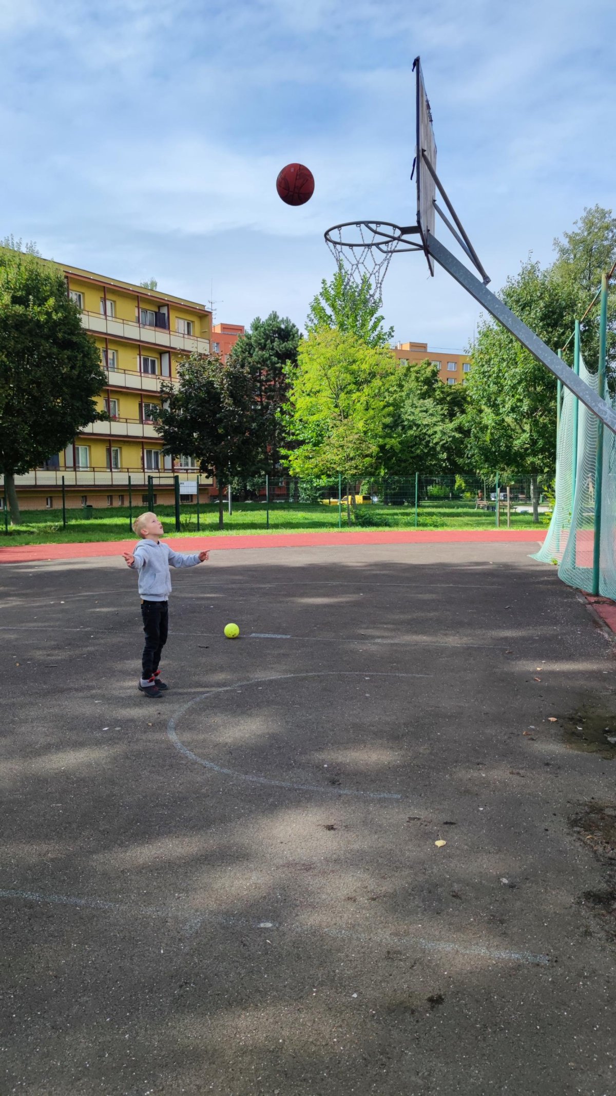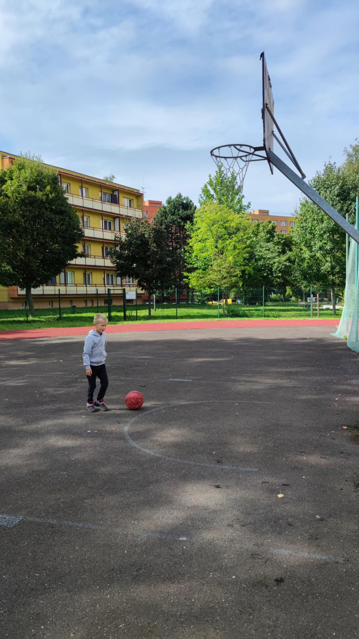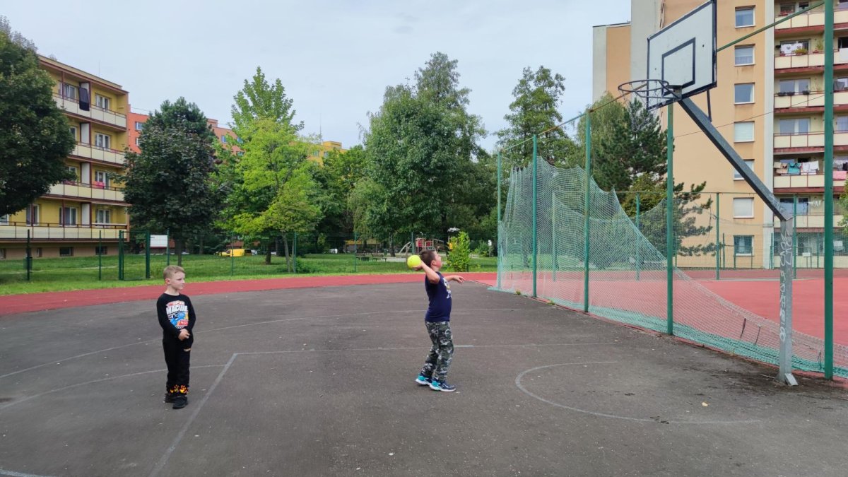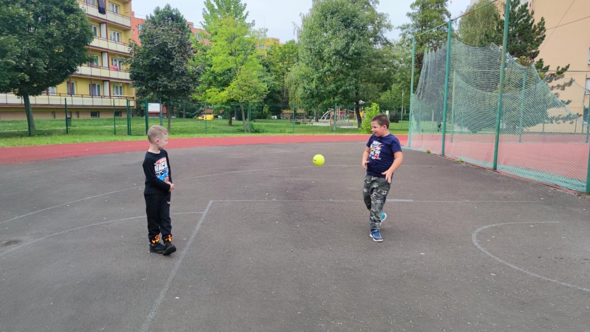 Za dobrého počasí jste nás v září často mohli najít mezi 14:00 - 15:00 na školním hřišti. Máme zde možnost vypůjčit si pomůcky z tělocvičny, hrát různé míčové hry, hry s provazem i přírodninami, na honěnou atd.