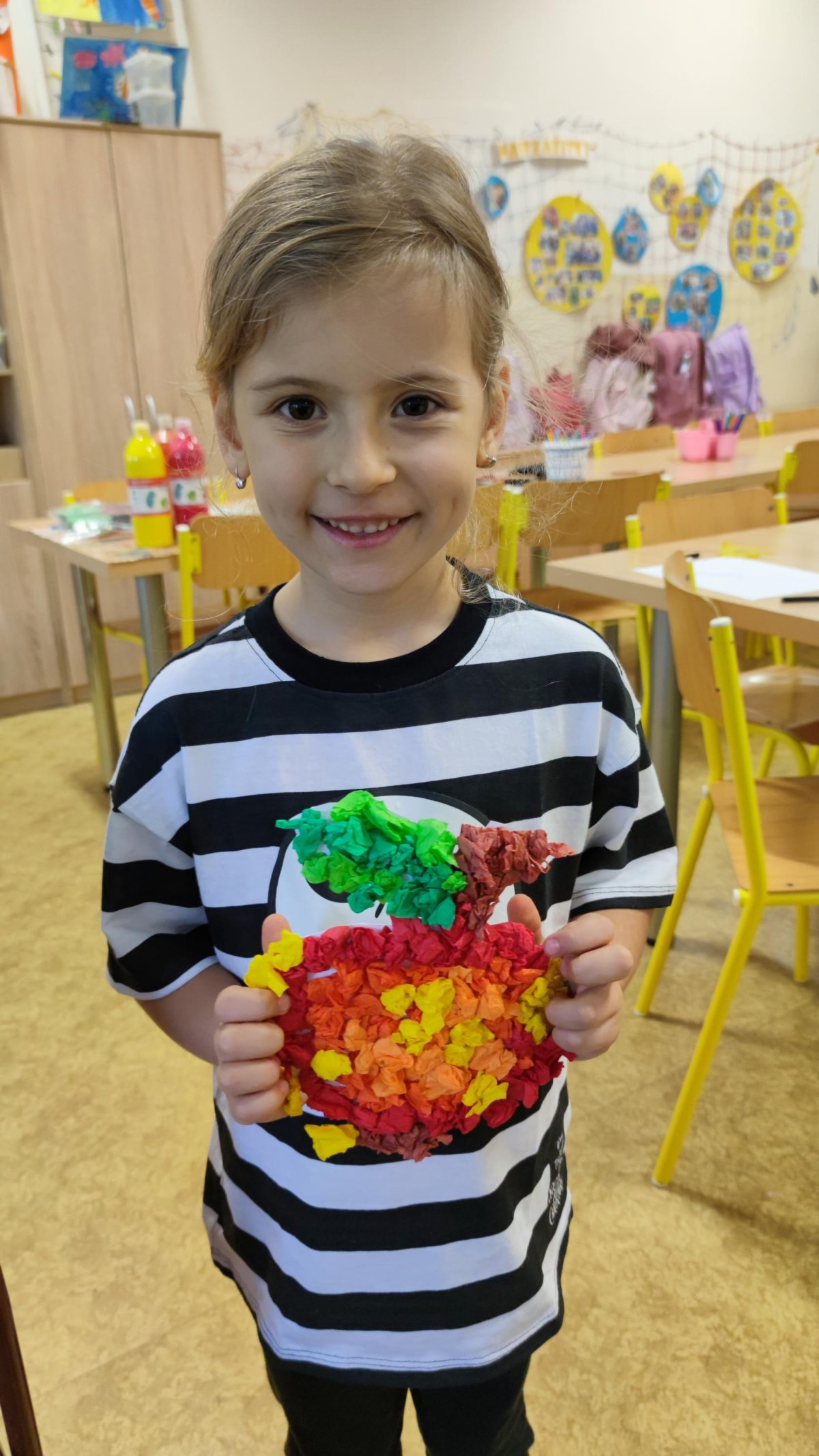Jablíčka, hrušky či švestky - povídali jsme si o ovoci, které dozrává na podzim a vyrobili jsme si jej z krepového papíru. Skvěle jsme tak procvičili jemnou motoriku.