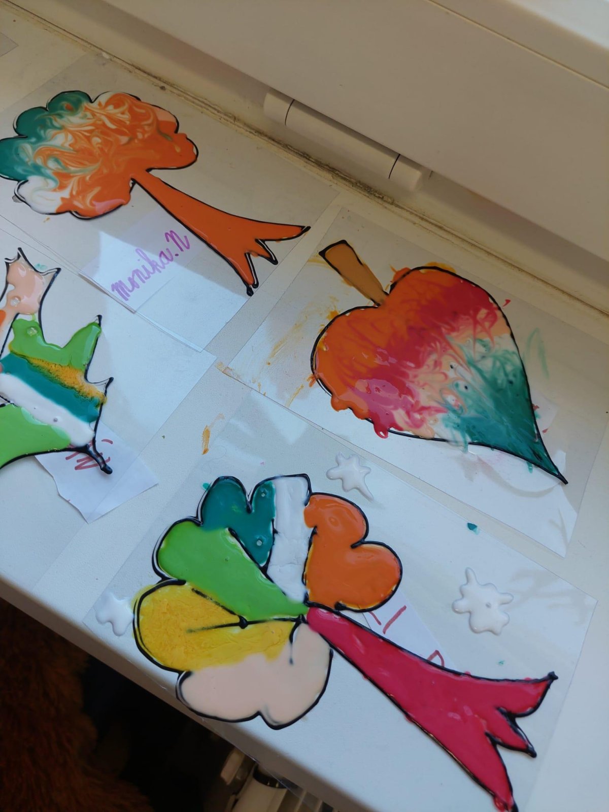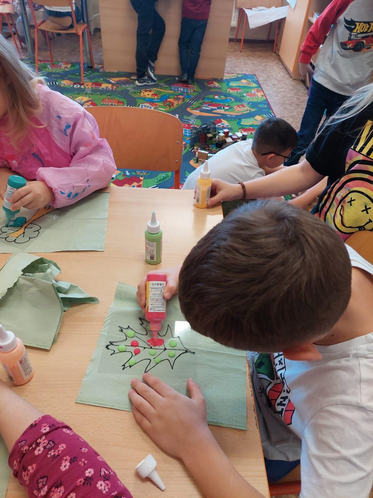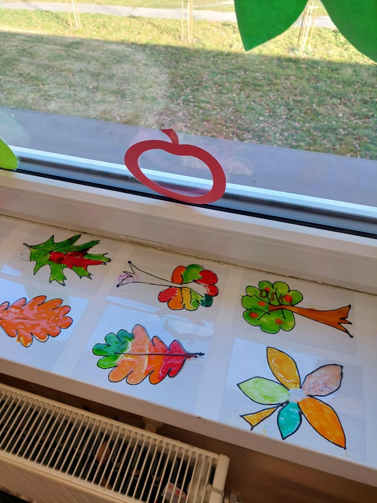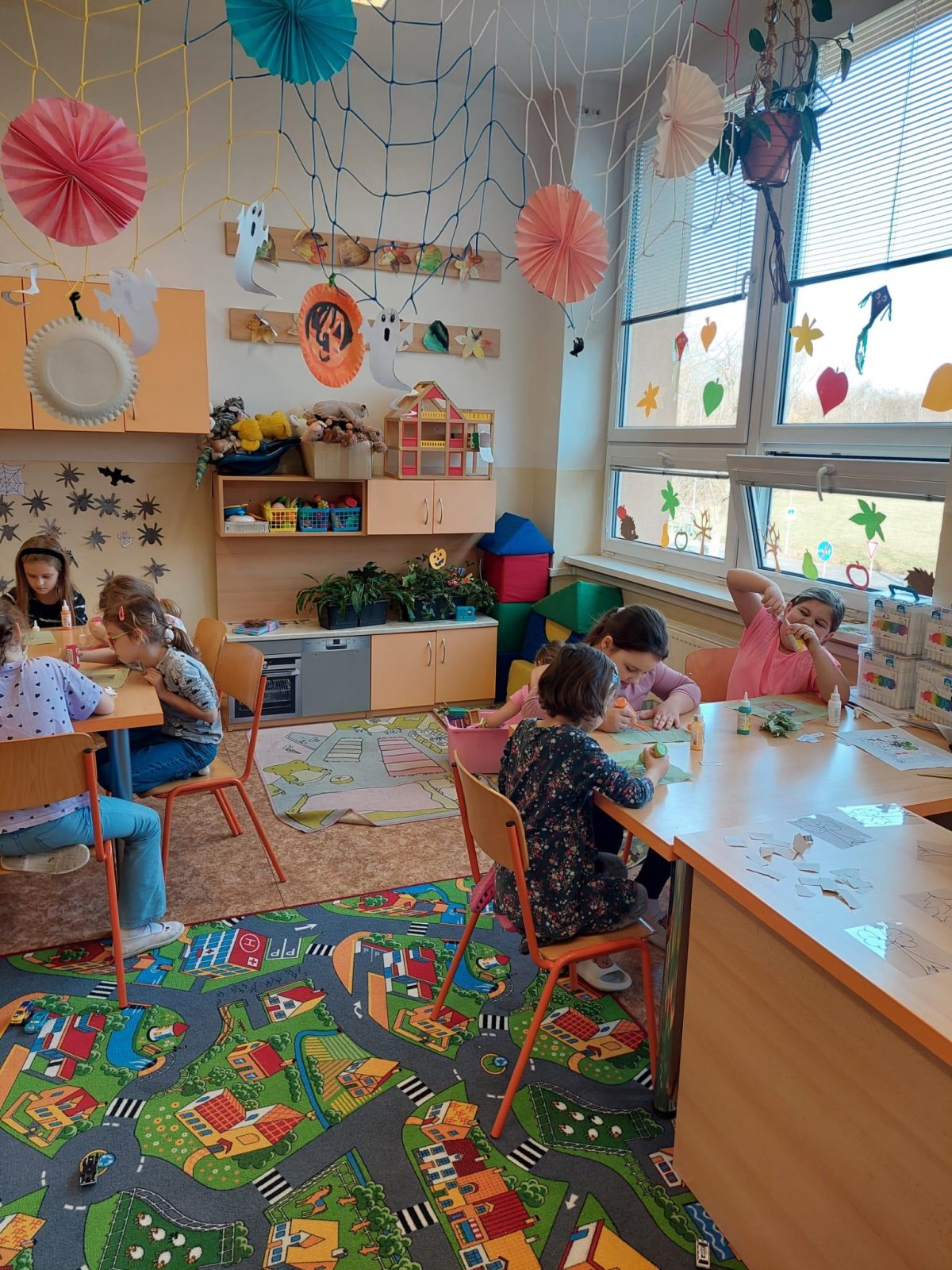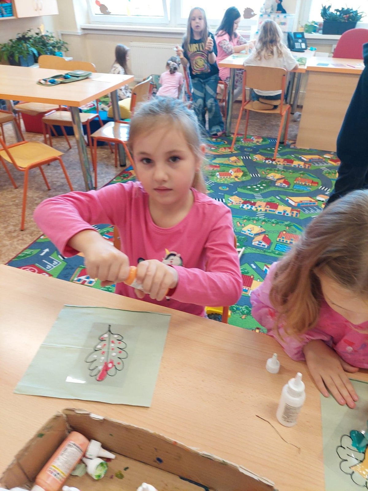Stromy a listy zbarvené do podzimních barev byly inspirací pro 2. oddělení, které pracovalo s papírem i slupovacími barvami.