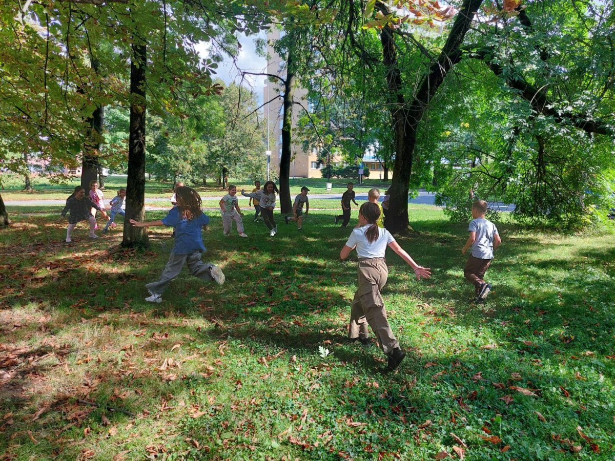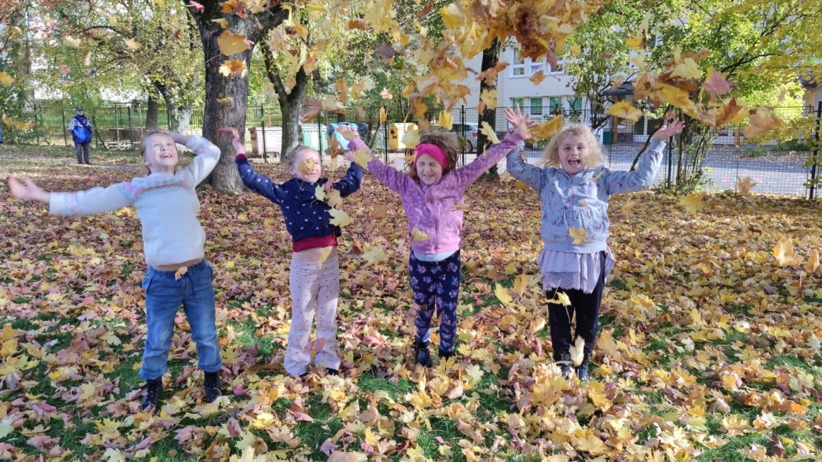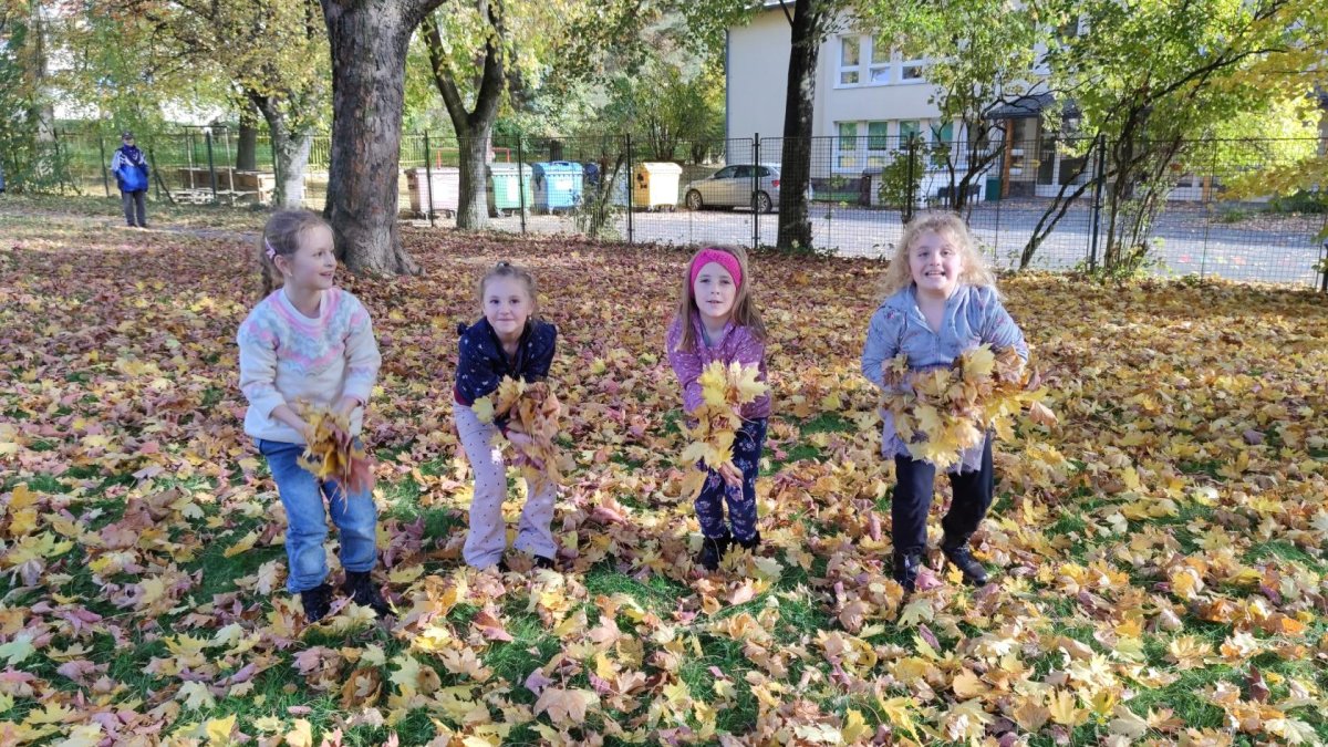 V rámci podzimních vycházek trávily děti čas v přírodě v okolí školní družiny. Pozorovaly proměny podzimní krajiny a při hrách s listím si užívaly pobyt na čerstvém vzduchu.