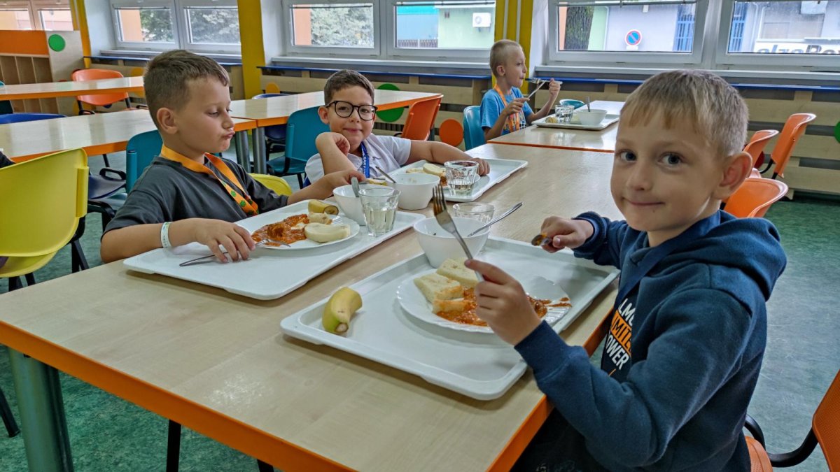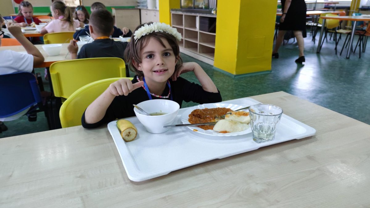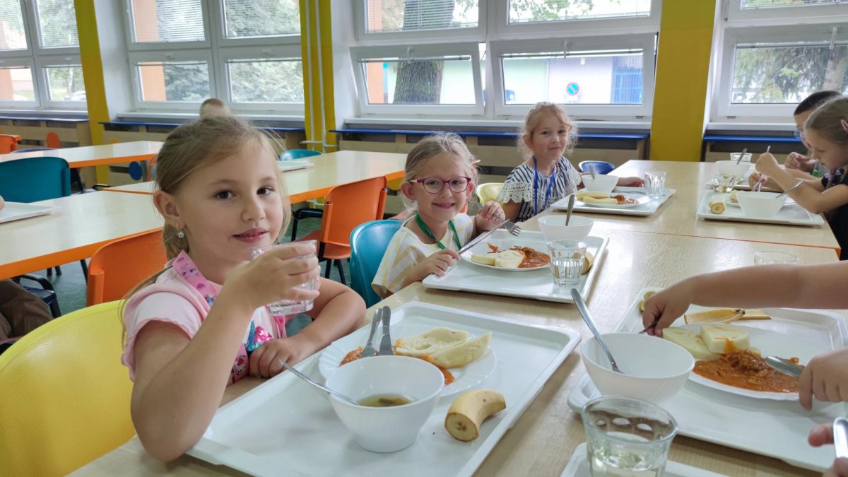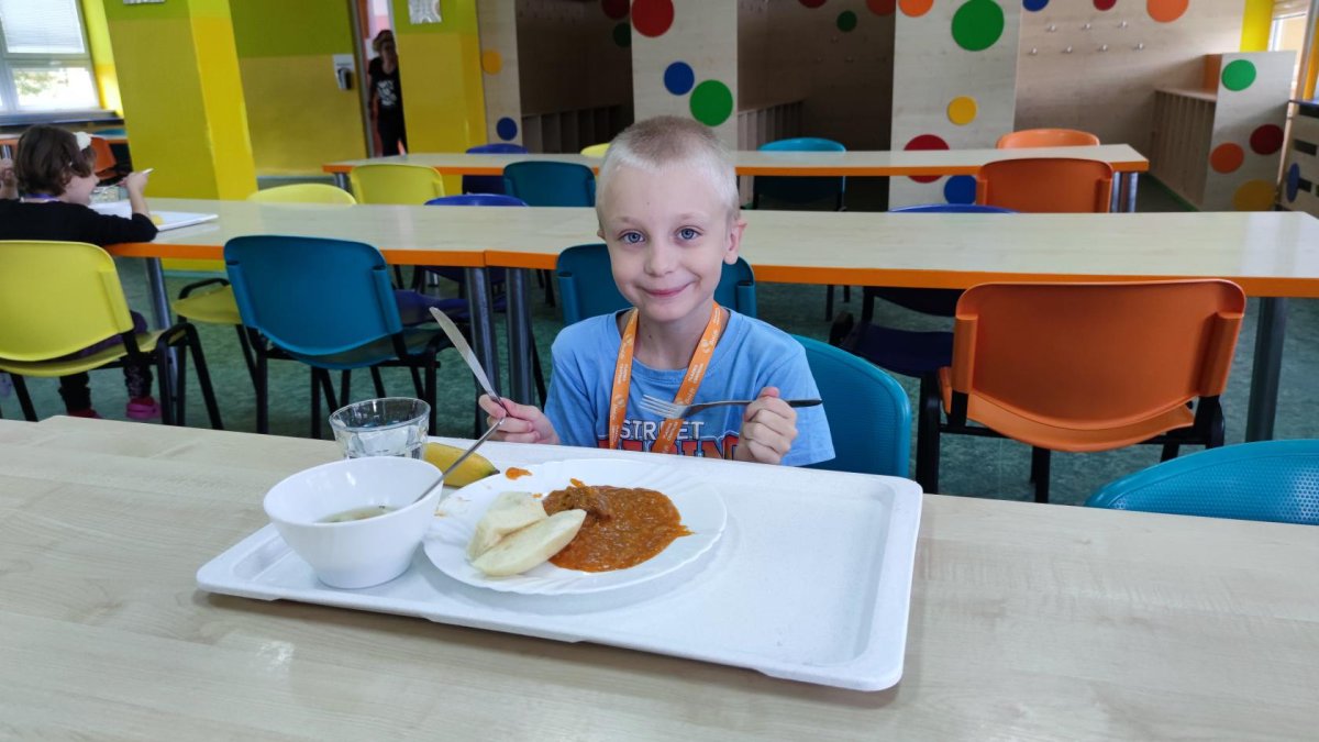 · Ve školní jídelně se s pomocí vychovatelek, učitelek a asistentek naučili chystat si tácek a příbory, používat čipovku a uklidit po sobě použité nádobí. Upevňovali také zásady slušného stolování.