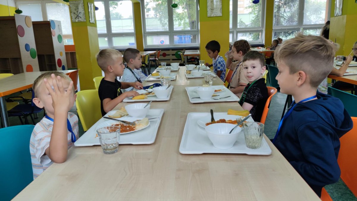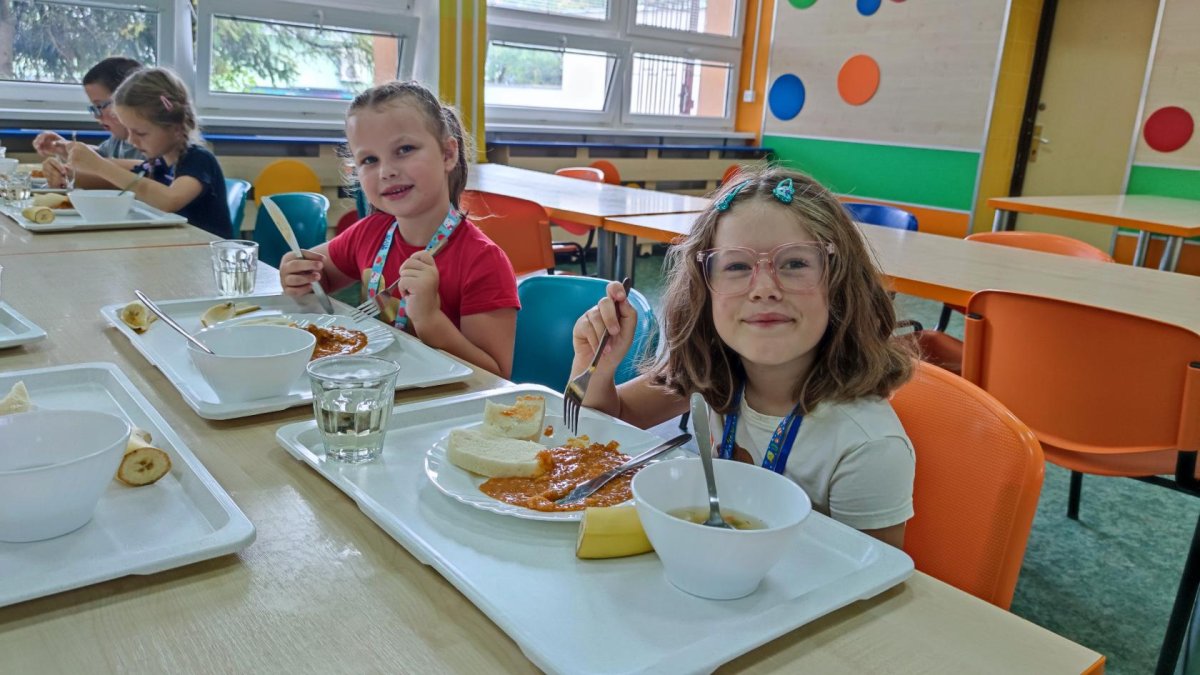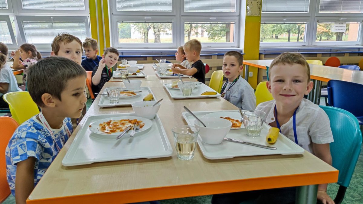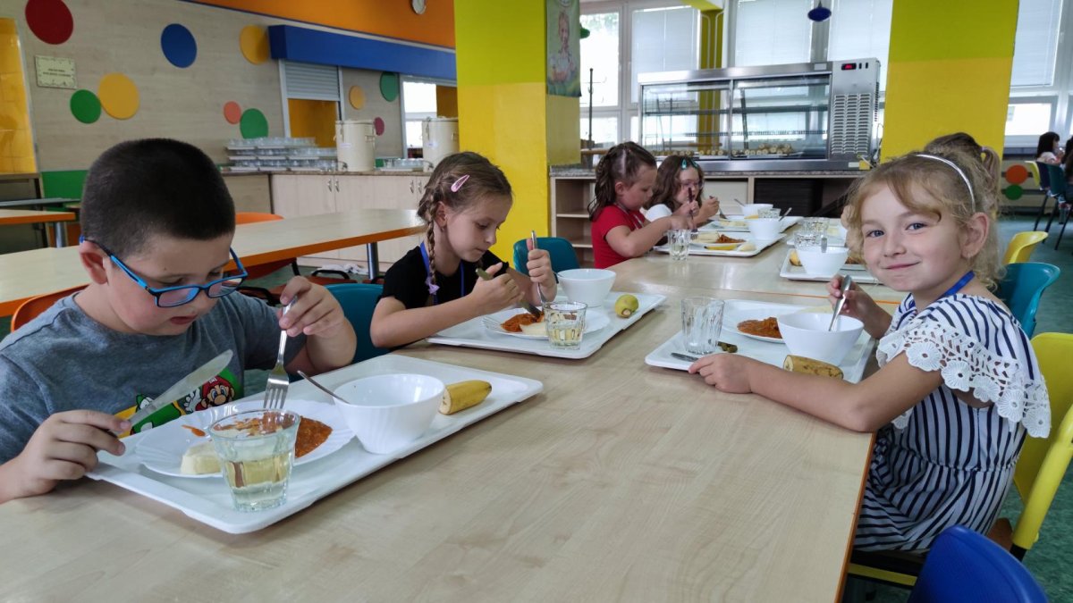 · Ve školní jídelně se s pomocí vychovatelek, učitelek a asistentek naučili chystat si tácek a příbory, používat čipovku a uklidit po sobě použité nádobí. Upevňovali také zásady slušného stolování.