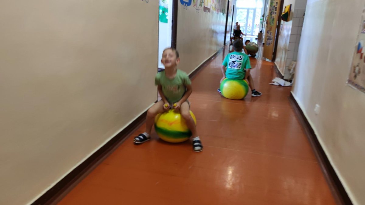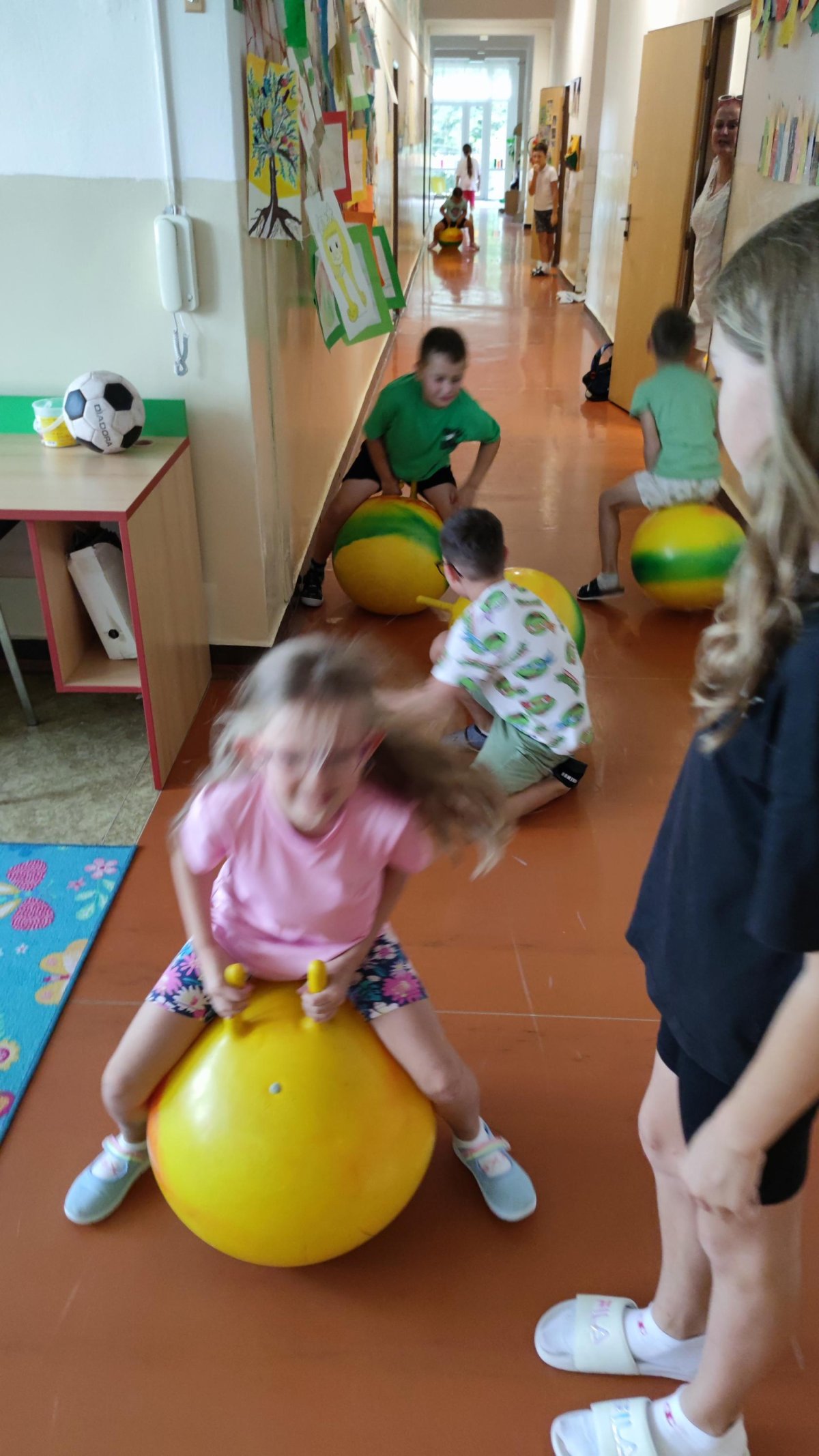 · Chodili ven a na školní hřiště, skákali na míčích a tančili.