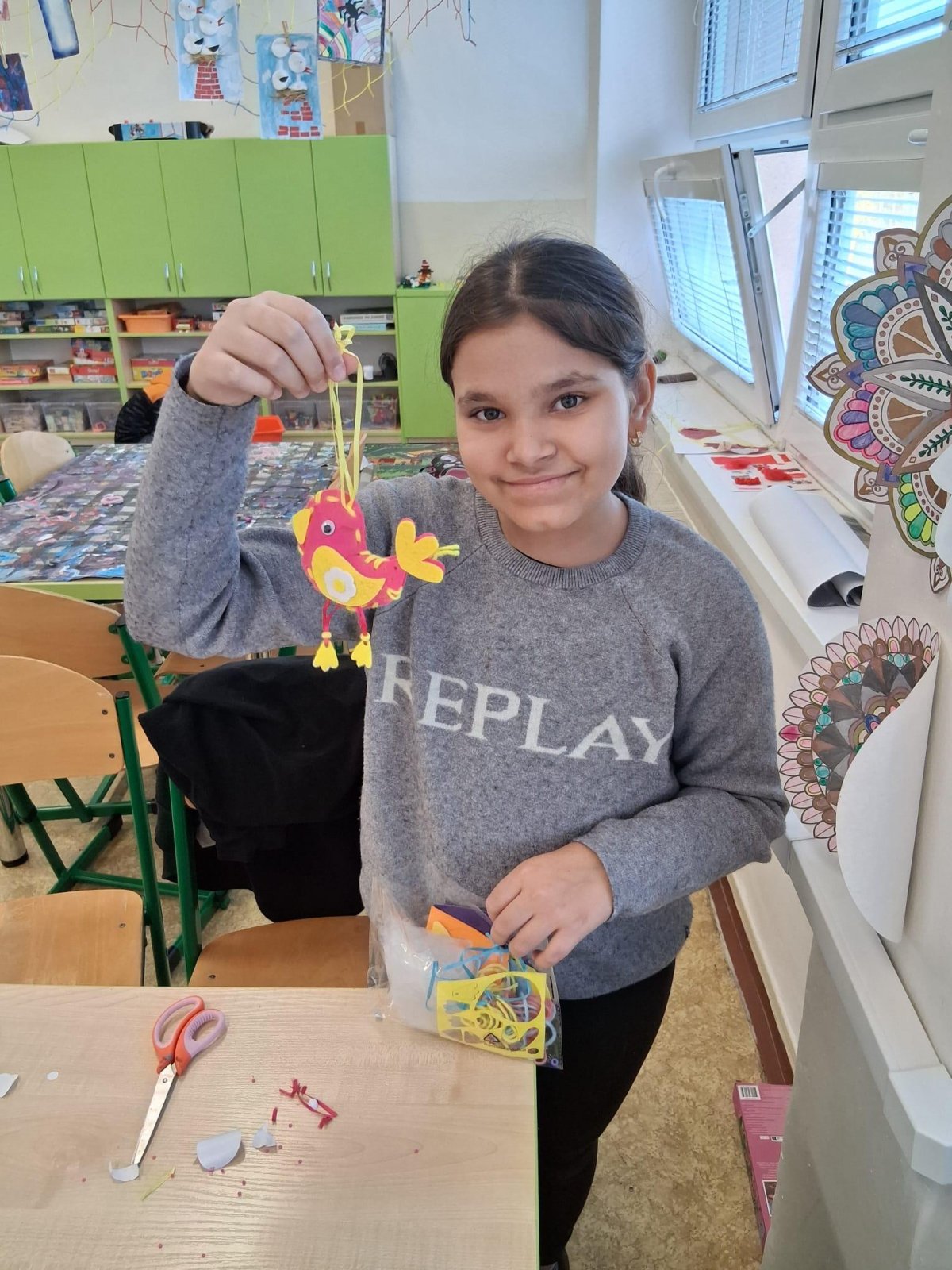 Kromě kroužku Klubíčko se šije a plete i při výchovně-vzdělávacích činnostech, které ŠD nabízí. Tentokrát v 5. oddělení.