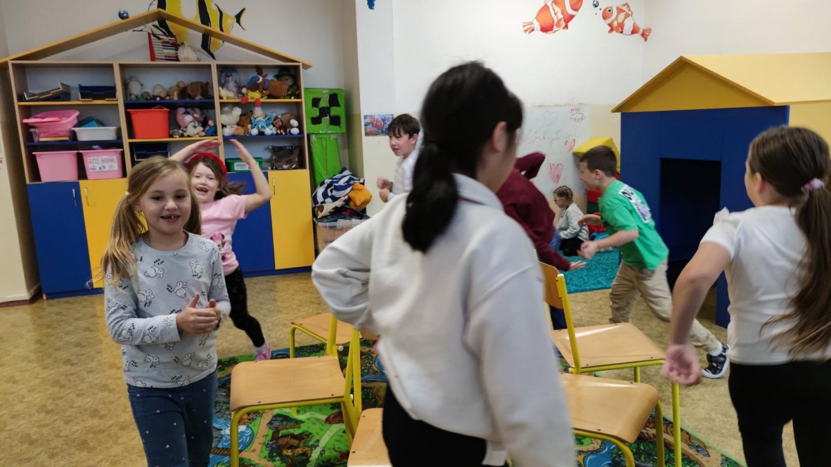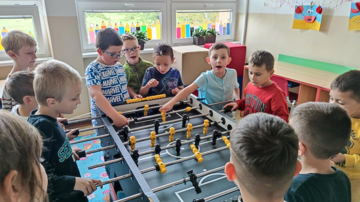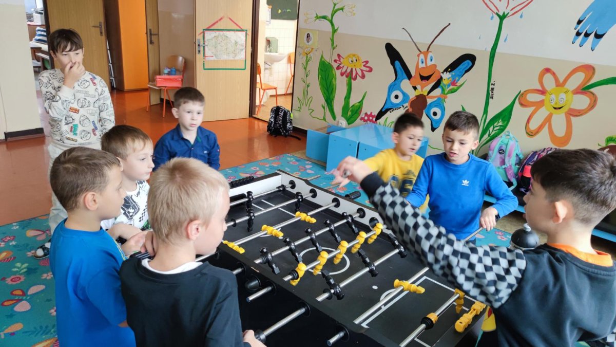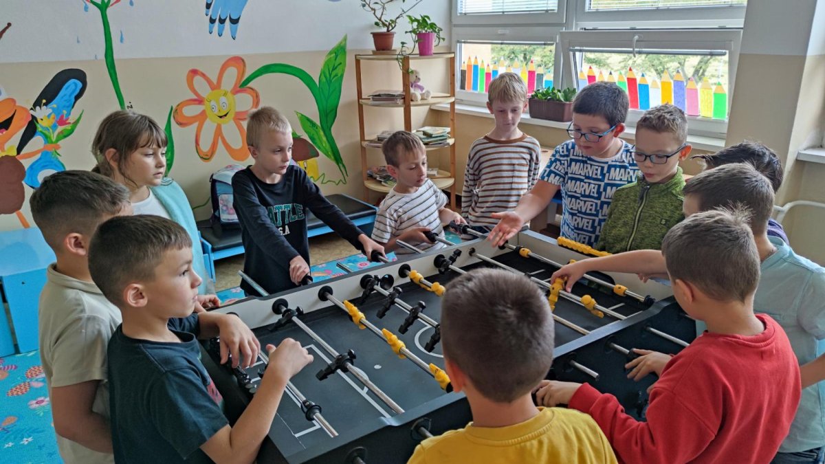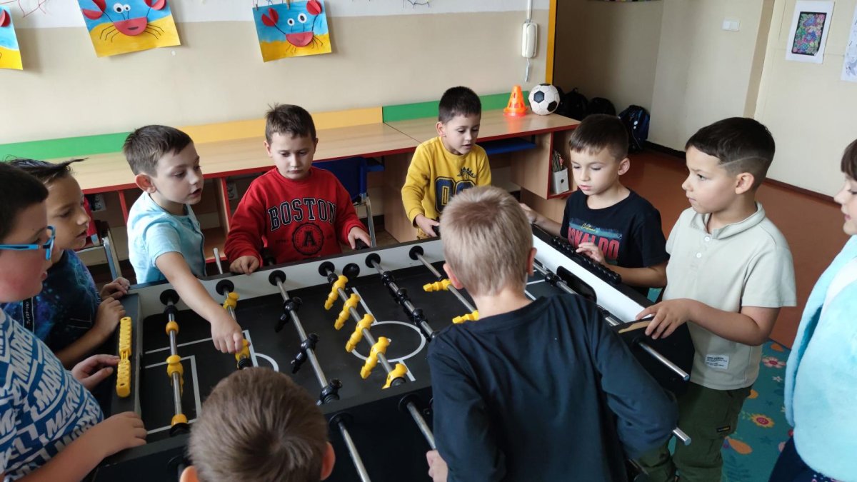Pokud se kvůli špatnému počasí nedostaneme ven, věnujeme se pohbovým aktivitám i uvnitř školní družiny. Sportujeme i skrze stolní fotbálek, šipky či bowling.