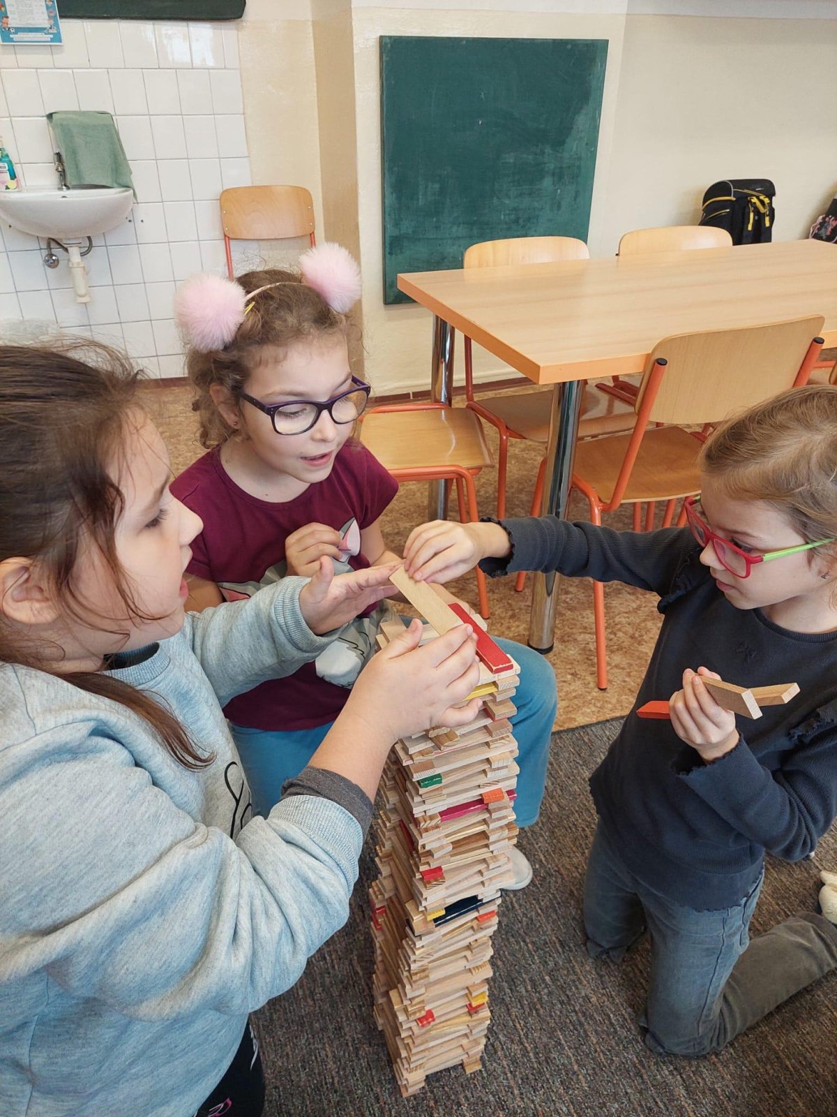 Ve školní družině patří mezi velmi oblíbené činnosti hra s různými stavebnicemi. Někteří z nás už v různých stavbách dosahují úplného mistrovstí.