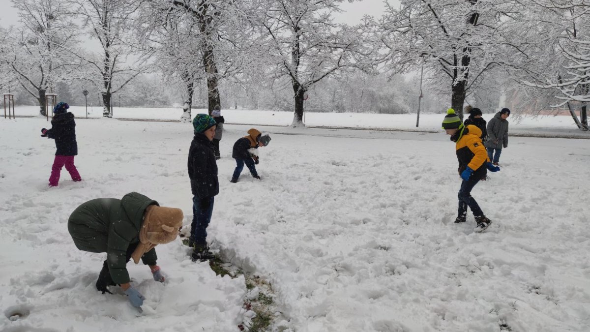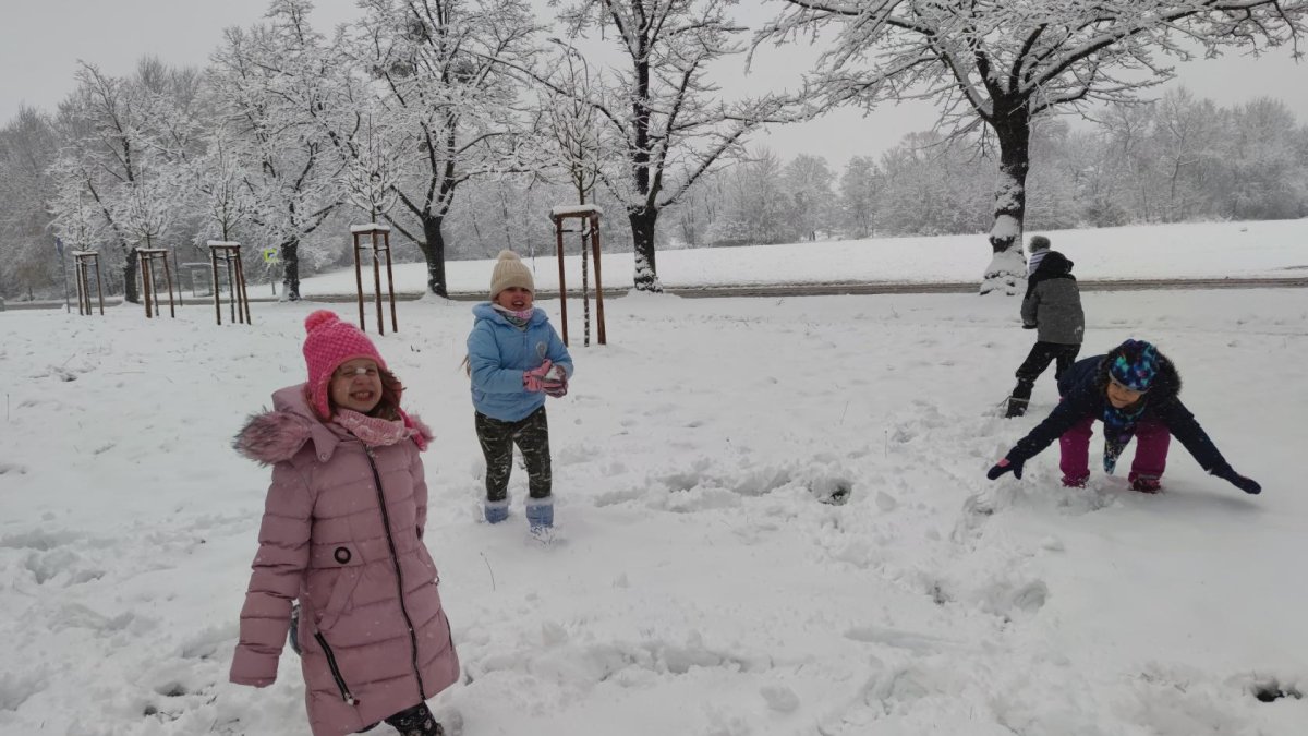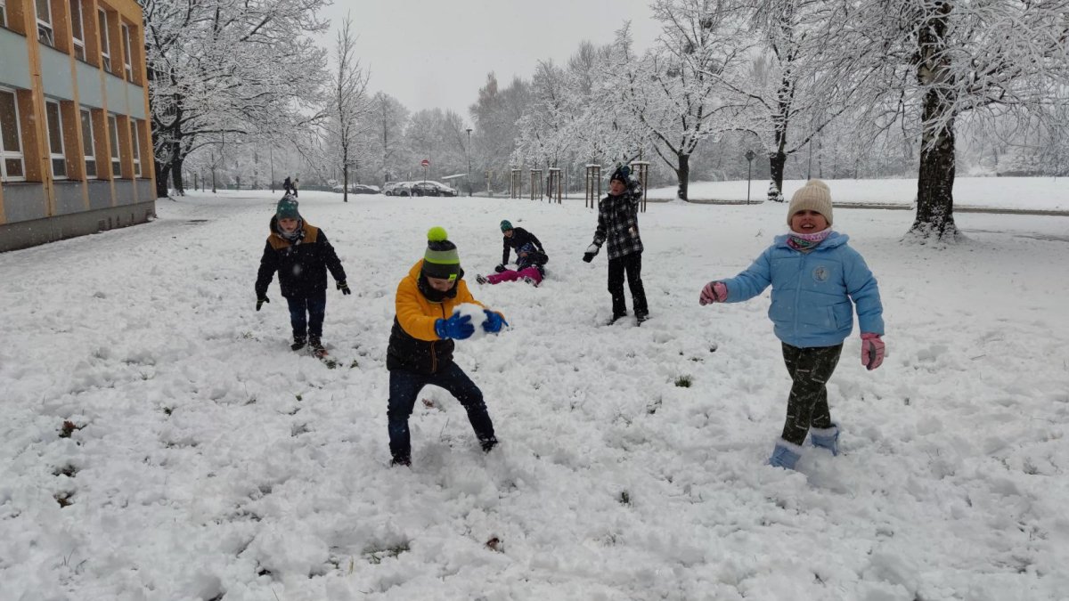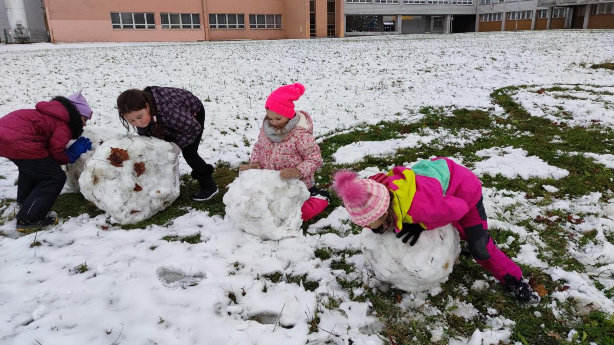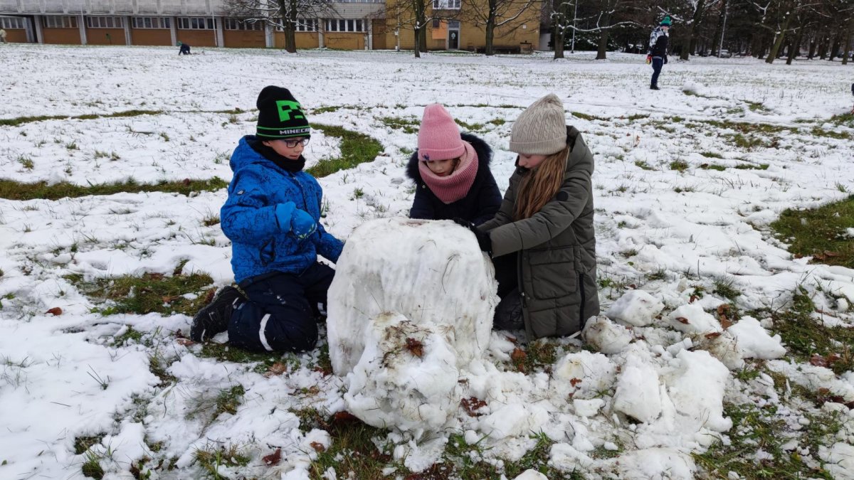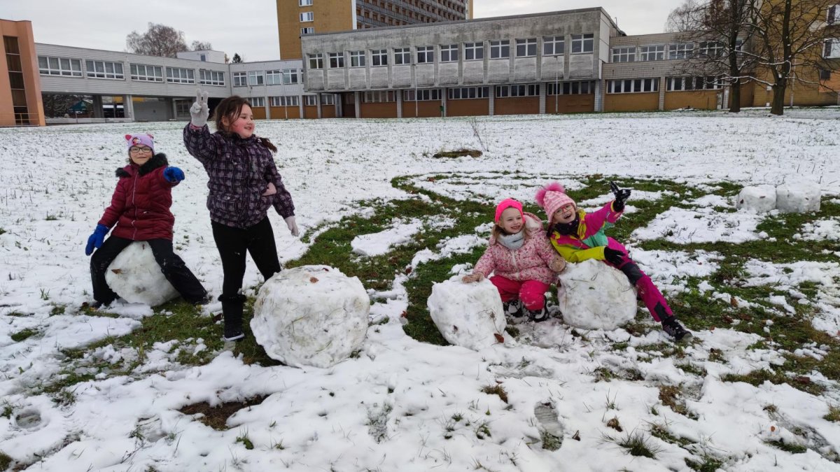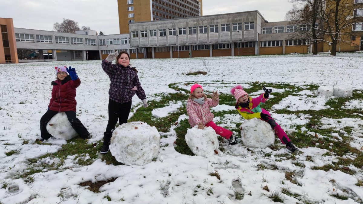 Zima je tady, zima je tu! I když sněhu ještě není moc, využíváme každou chvíli, abychom si s ním mohli hrát.