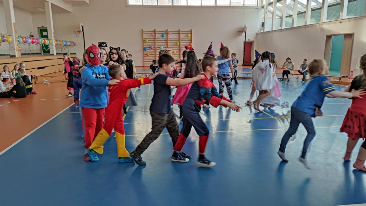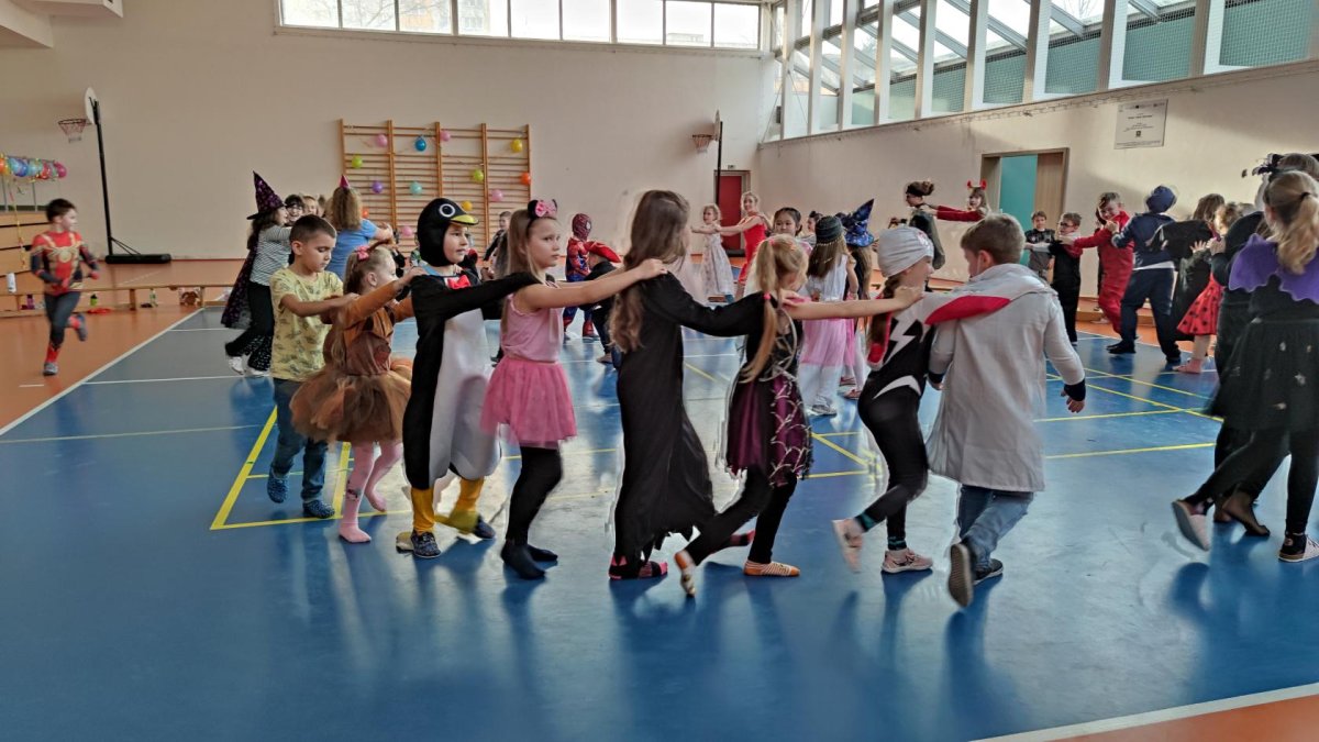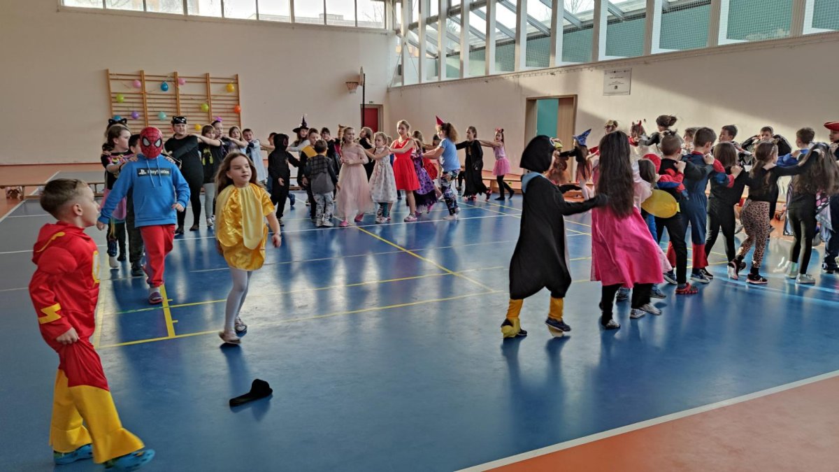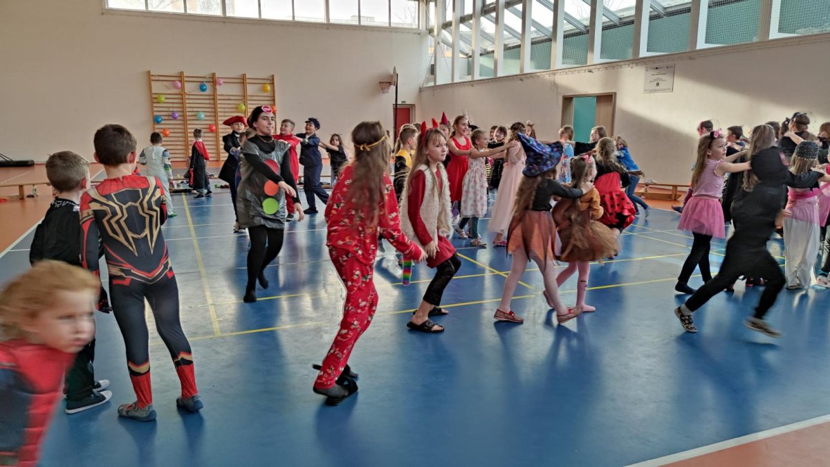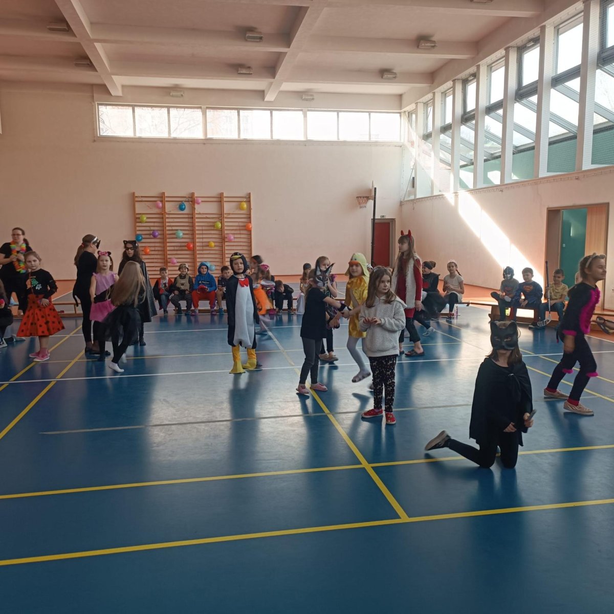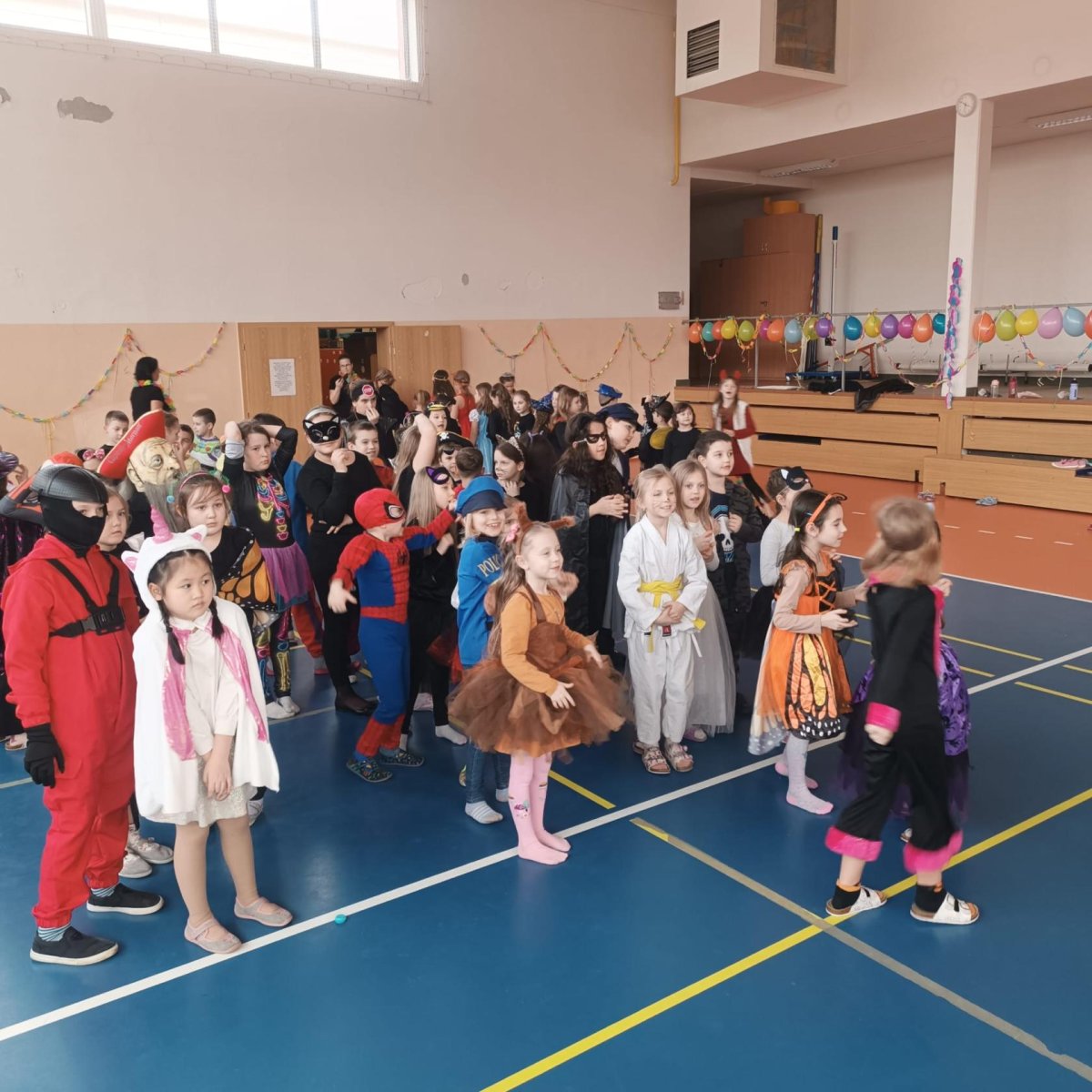 Družinová párty v maskách se konala v pondělí 26.2. v tělocvičně školy. Zpívali jsme, tančili, soutěžili a dobře jsme se bavili. Na párty přišly děti v nádherných kostýmech a mohli jsme tak vidět přehlídku princezen, čarodějek, zvířátek (například kočiček, tučňáků, včeliček, motýlků...), policistů, vojáků, superhrdinů, ale viděli jsme třeba i semafor nebo pirátku.
