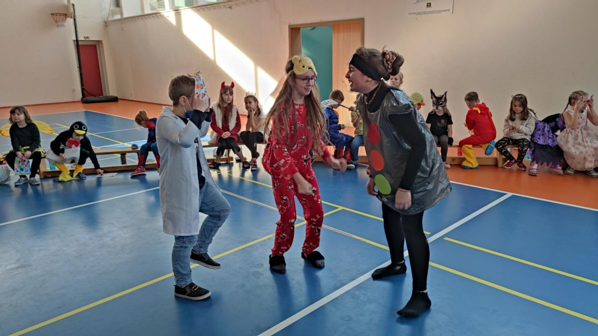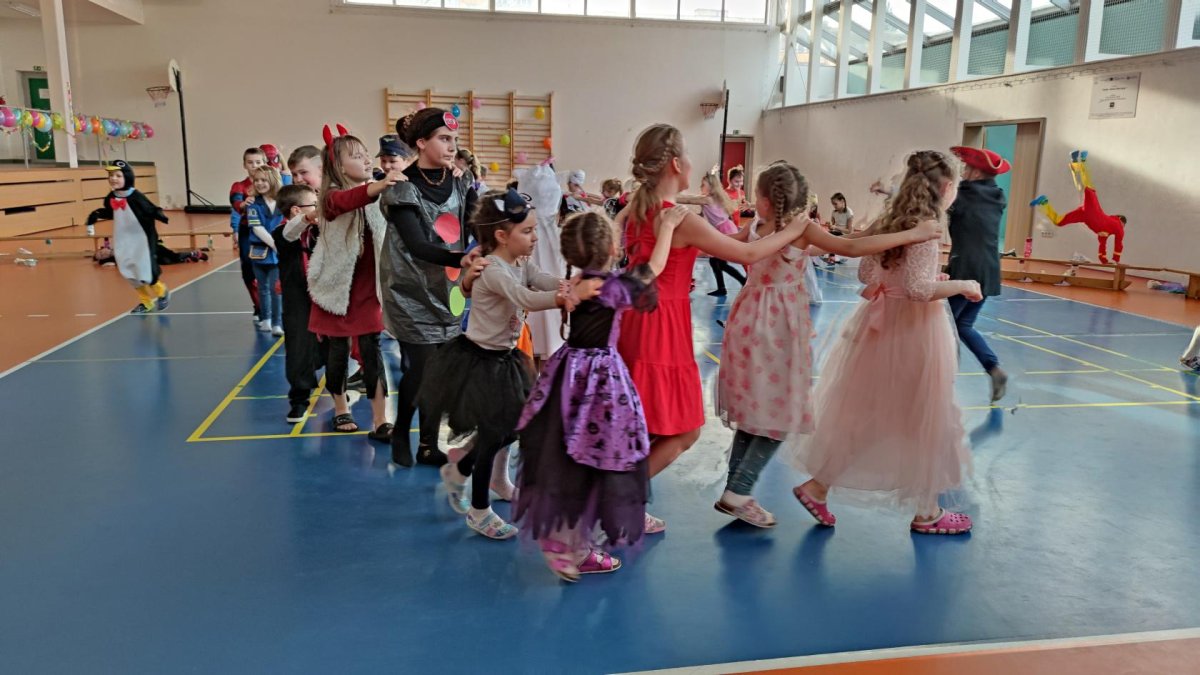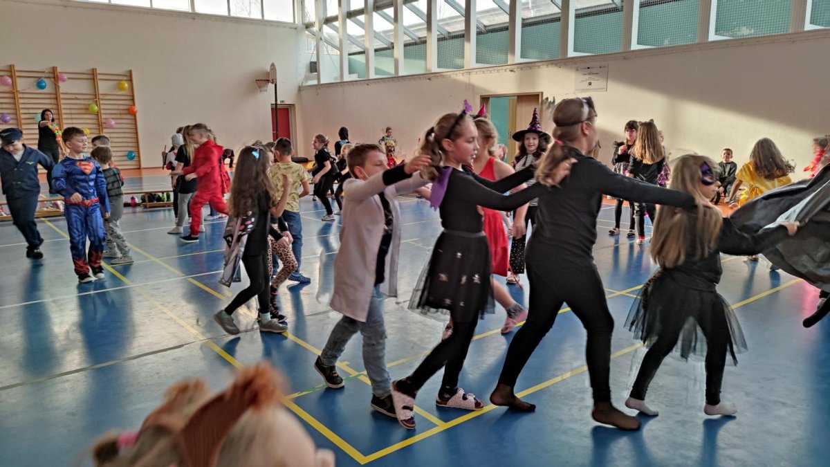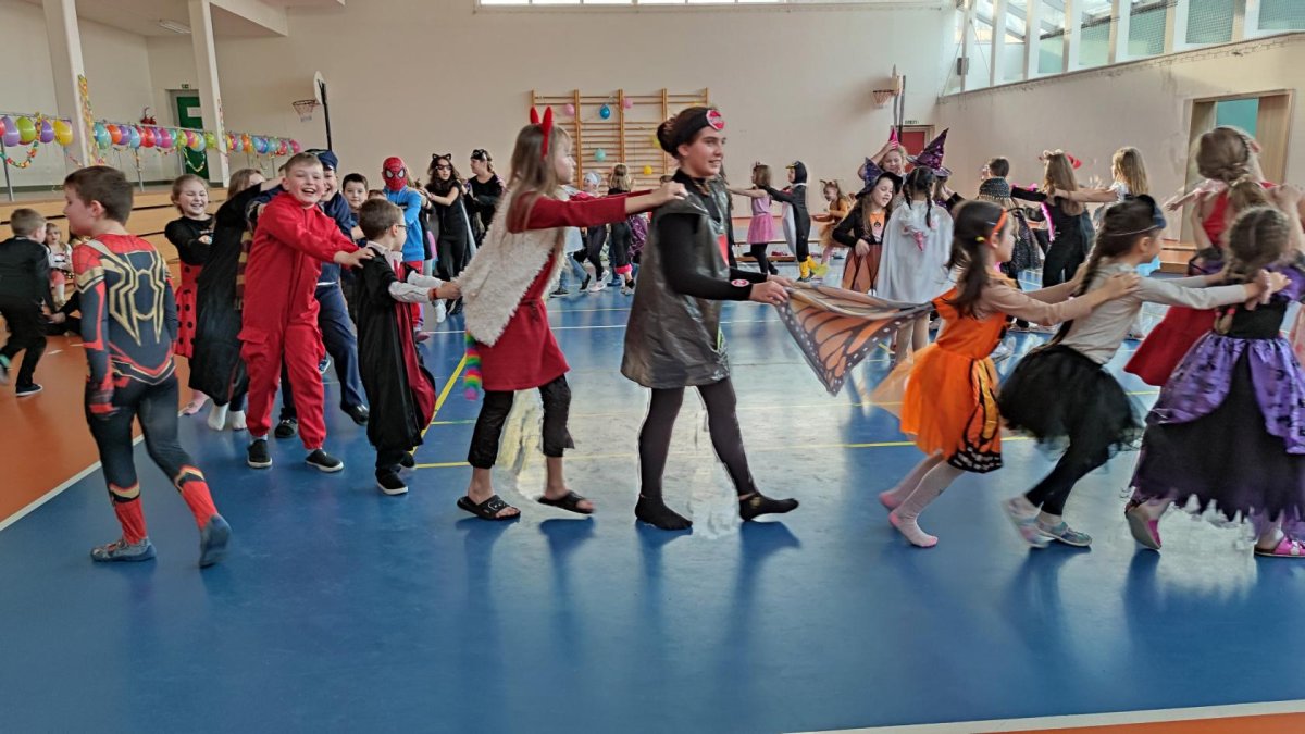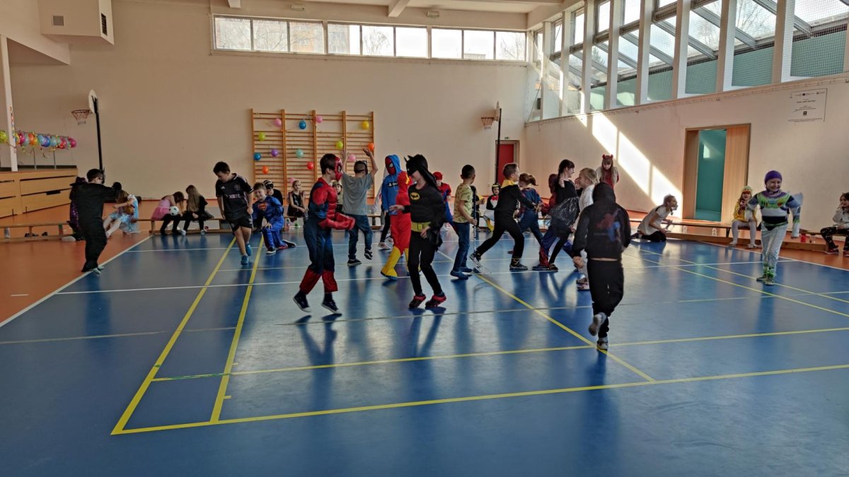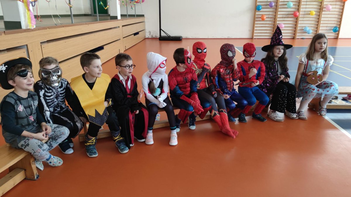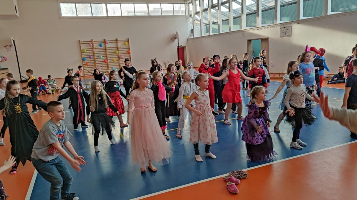 Družinová párty v maskách se konala v pondělí 26.2. v tělocvičně školy. Zpívali jsme, tančili, soutěžili a dobře jsme se bavili. Na párty přišly děti v nádherných kostýmech a mohli jsme tak vidět přehlídku princezen, čarodějek, zvířátek (například kočiček, tučňáků, včeliček, motýlků...), policistů, vojáků, superhrdinů, ale viděli jsme třeba i semafor nebo pirátku.