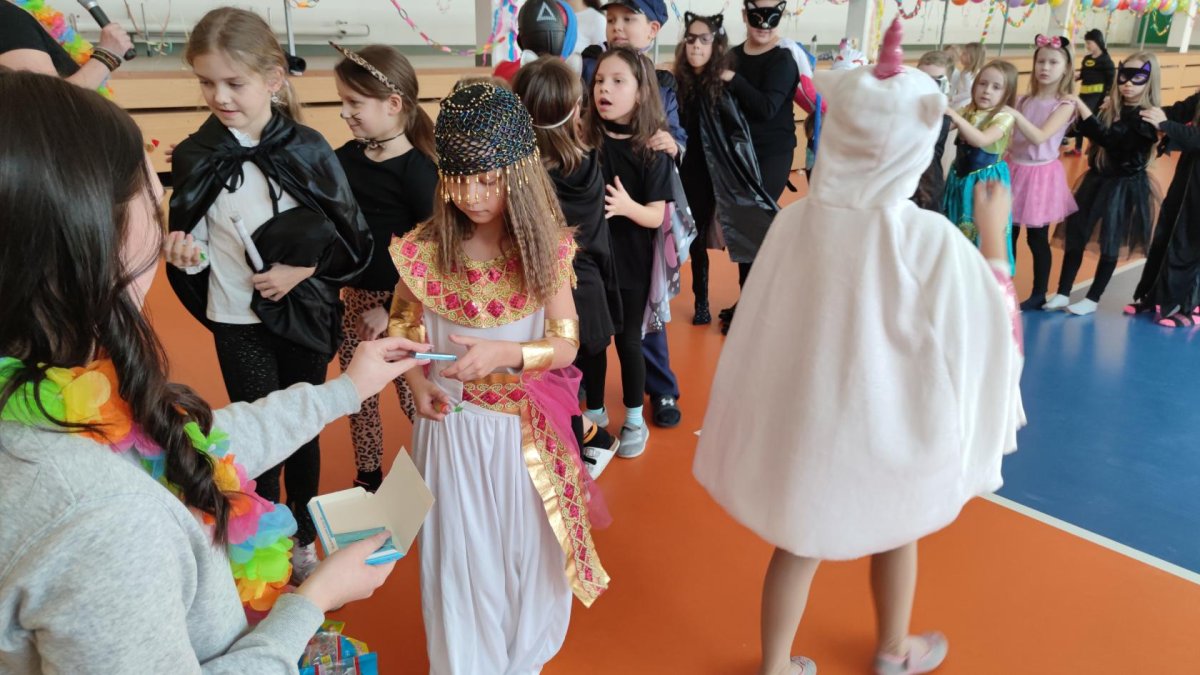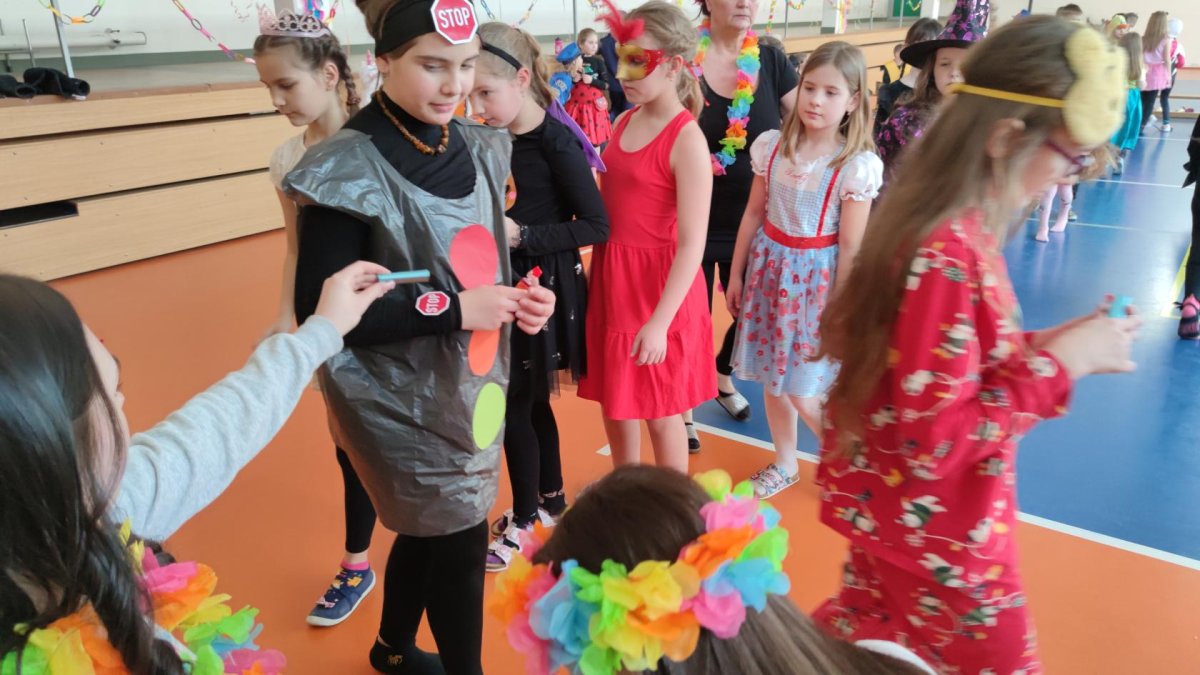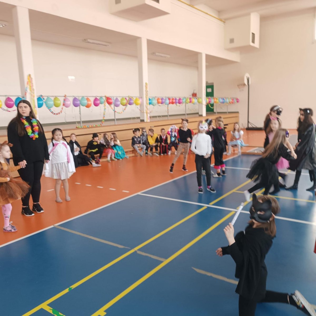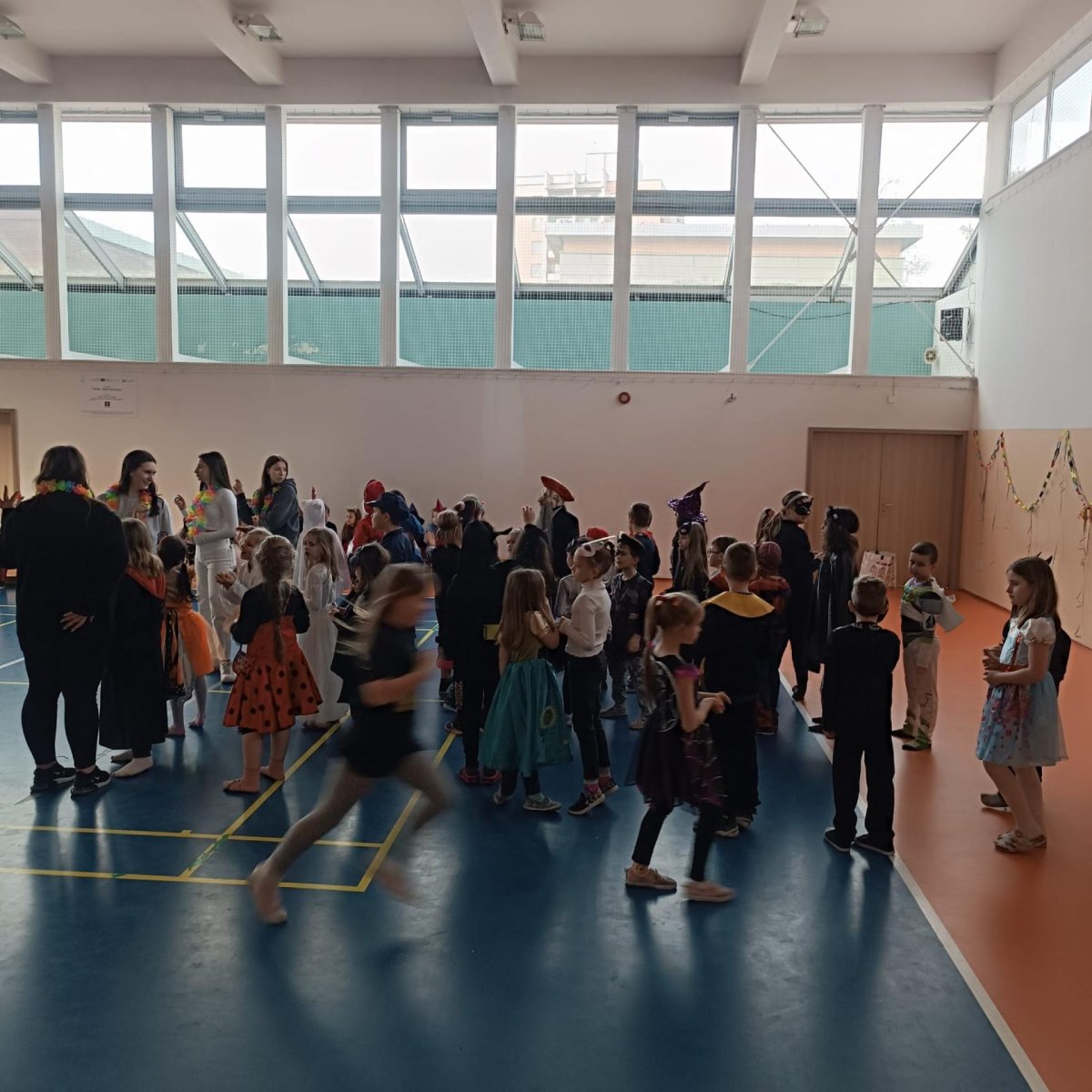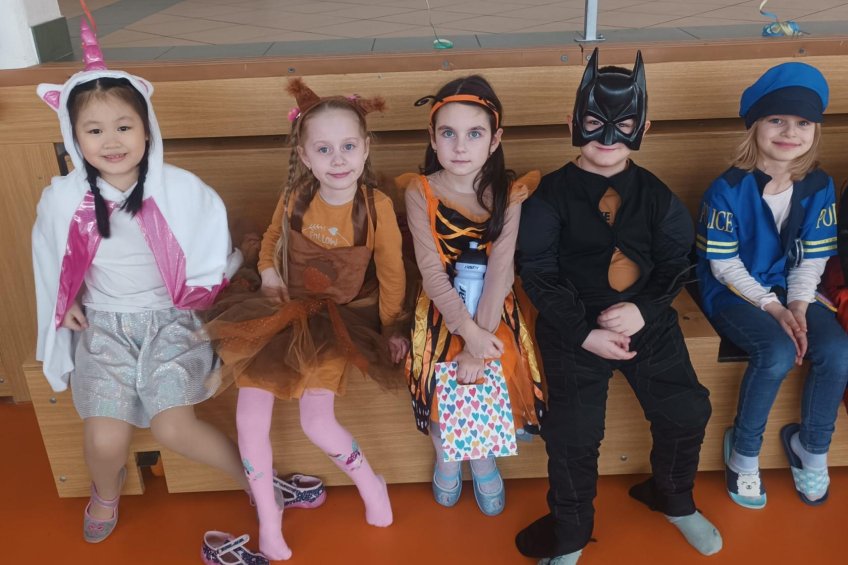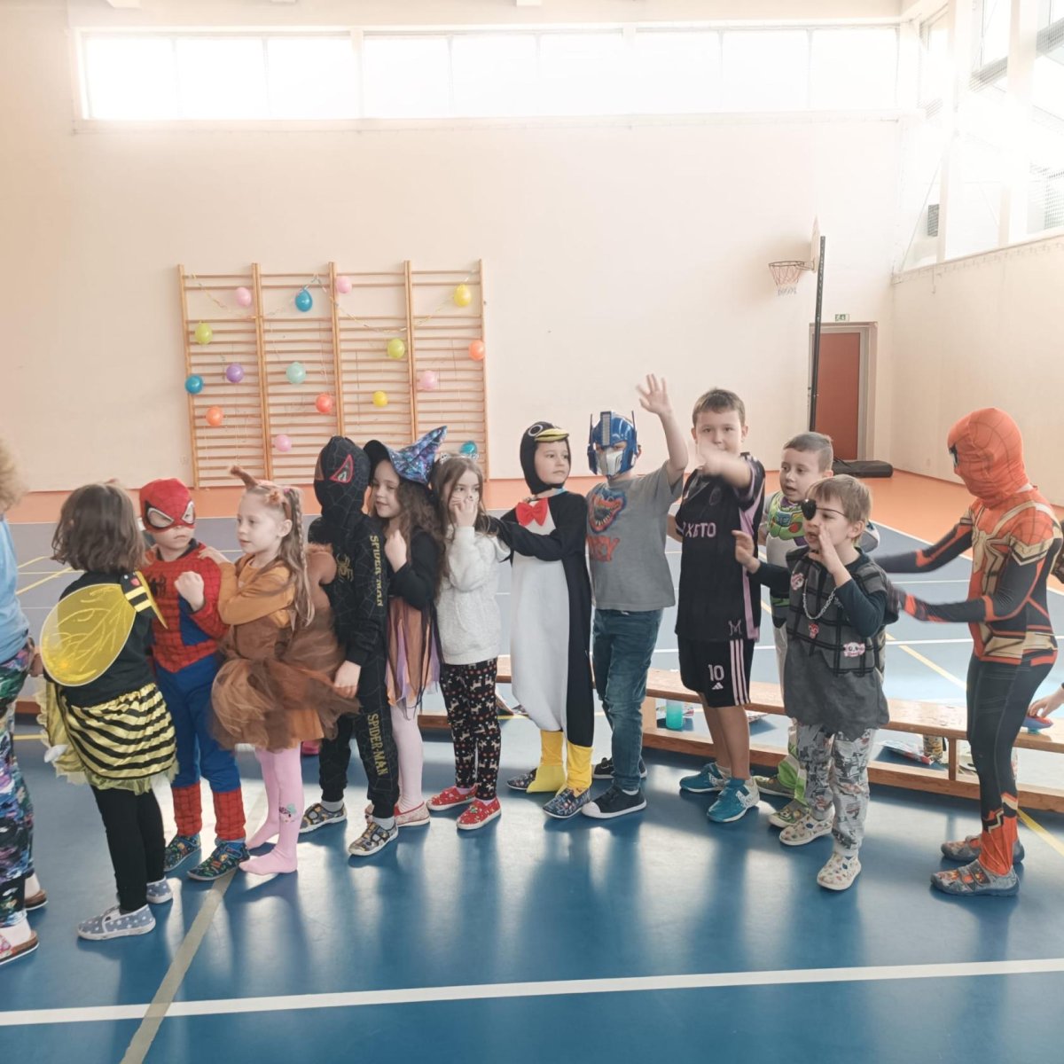 Družinová párty v maskách se konala v pondělí 26.2. v tělocvičně školy. Zpívali jsme, tančili, soutěžili a dobře jsme se bavili. Na párty přišly děti v nádherných kostýmech a mohli jsme tak vidět přehlídku princezen, čarodějek, zvířátek (například kočiček, tučňáků, včeliček, motýlků...), policistů, vojáků, superhrdinů, ale viděli jsme třeba i semafor nebo pirátku.