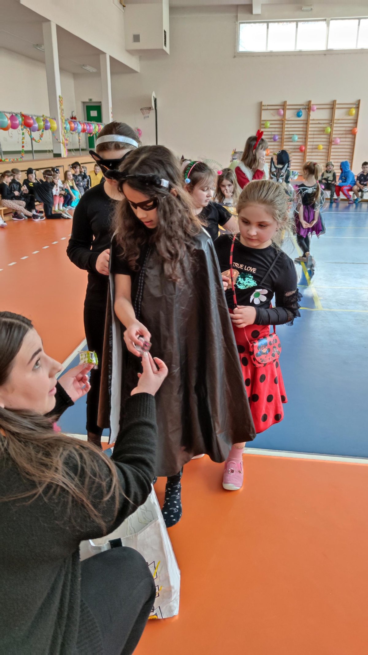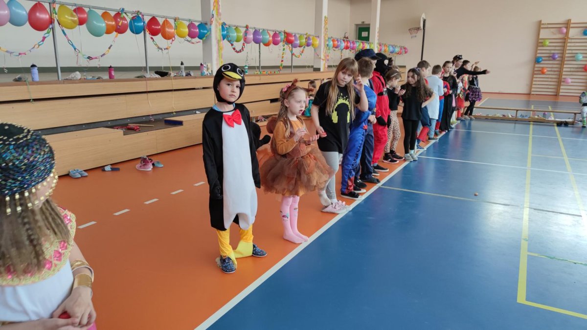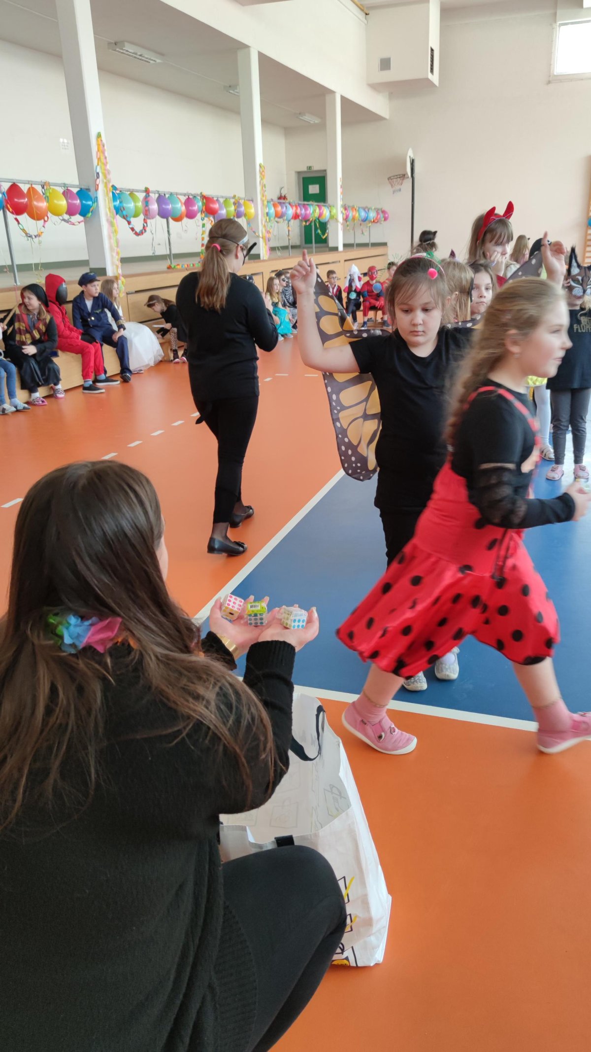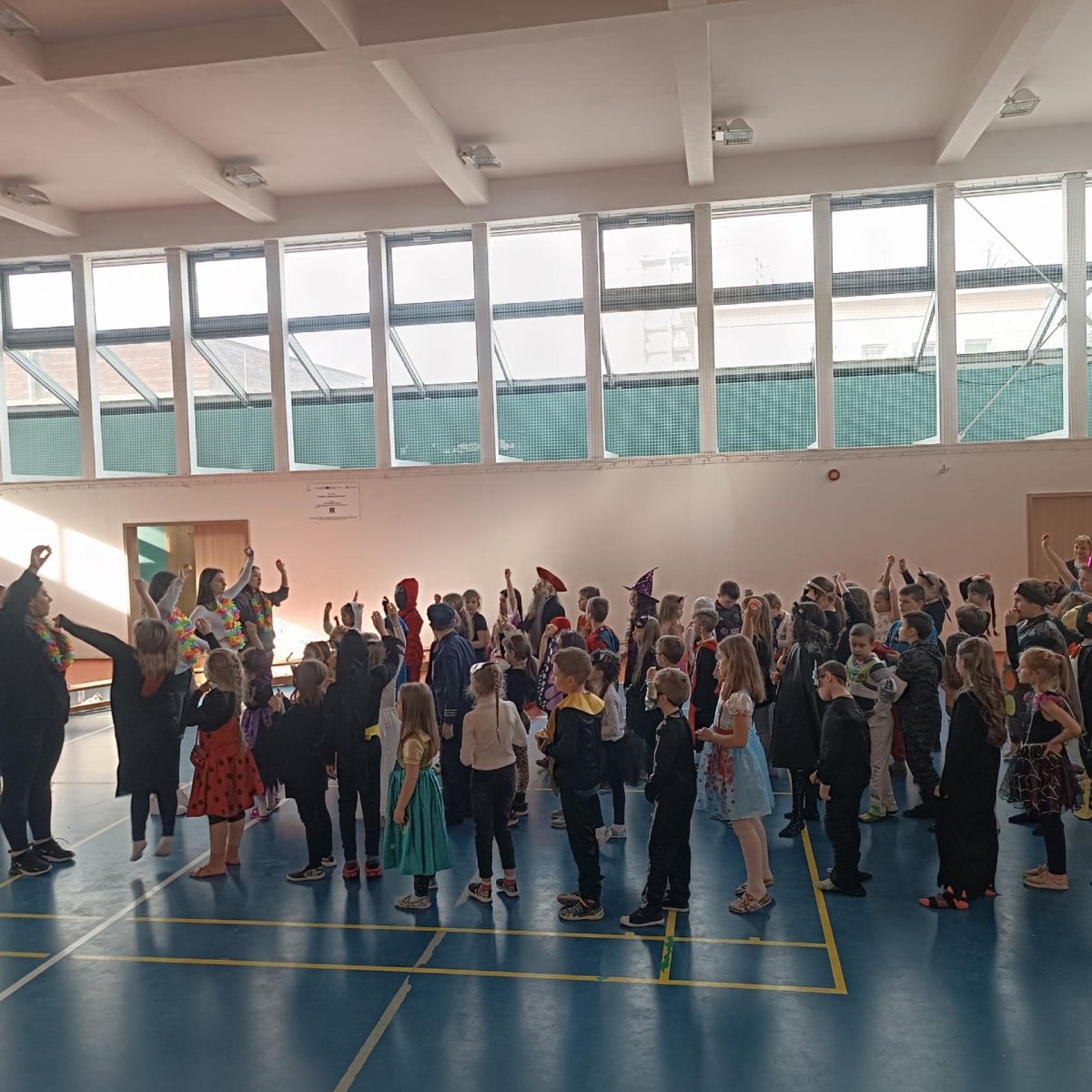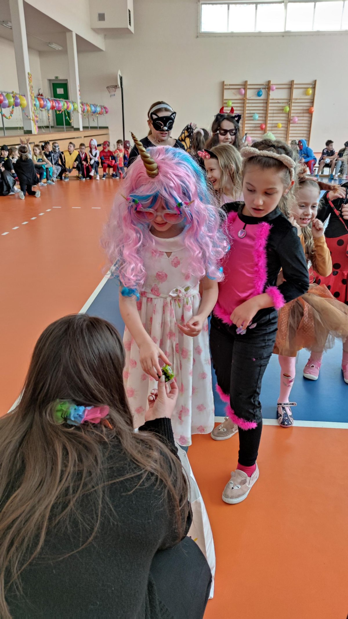 Družinová párty v maskách se konala v pondělí 26.2. v tělocvičně školy. Zpívali jsme, tančili, soutěžili a dobře jsme se bavili. Na párty přišly děti v nádherných kostýmech a mohli jsme tak vidět přehlídku princezen, čarodějek, zvířátek (například kočiček, tučňáků, včeliček, motýlků...), policistů, vojáků, superhrdinů, ale viděli jsme třeba i semafor nebo pirátku.