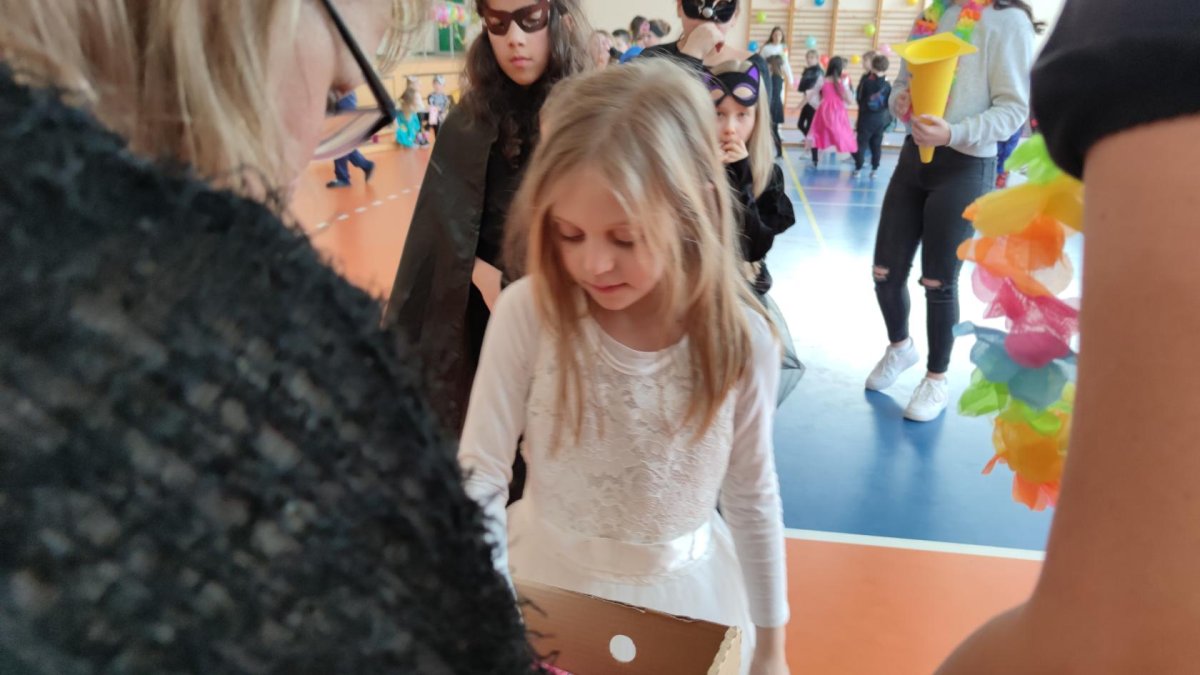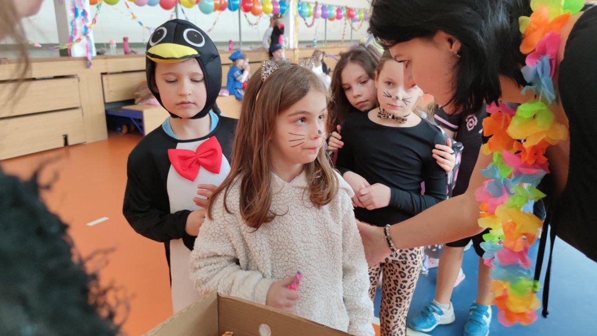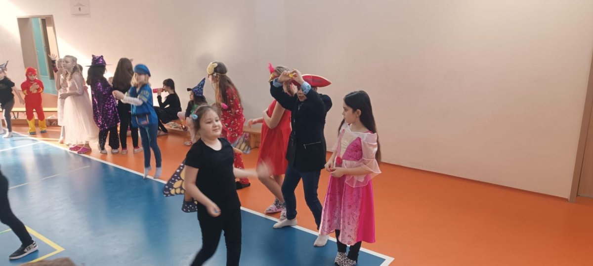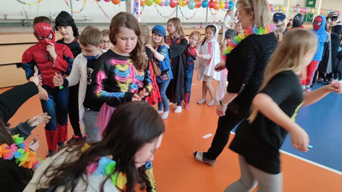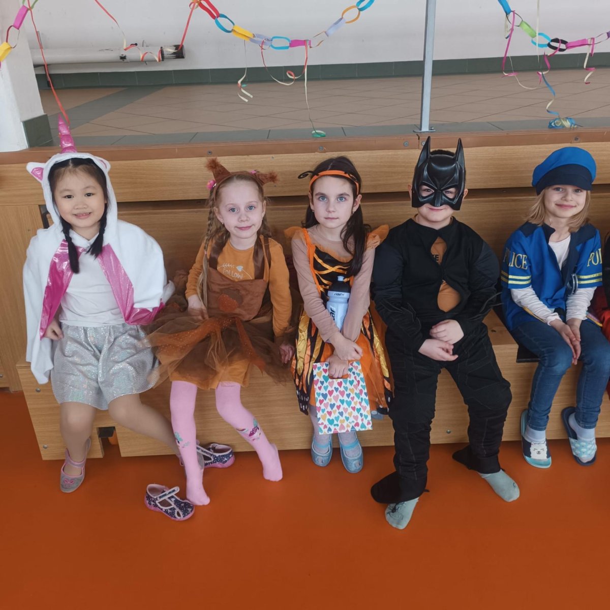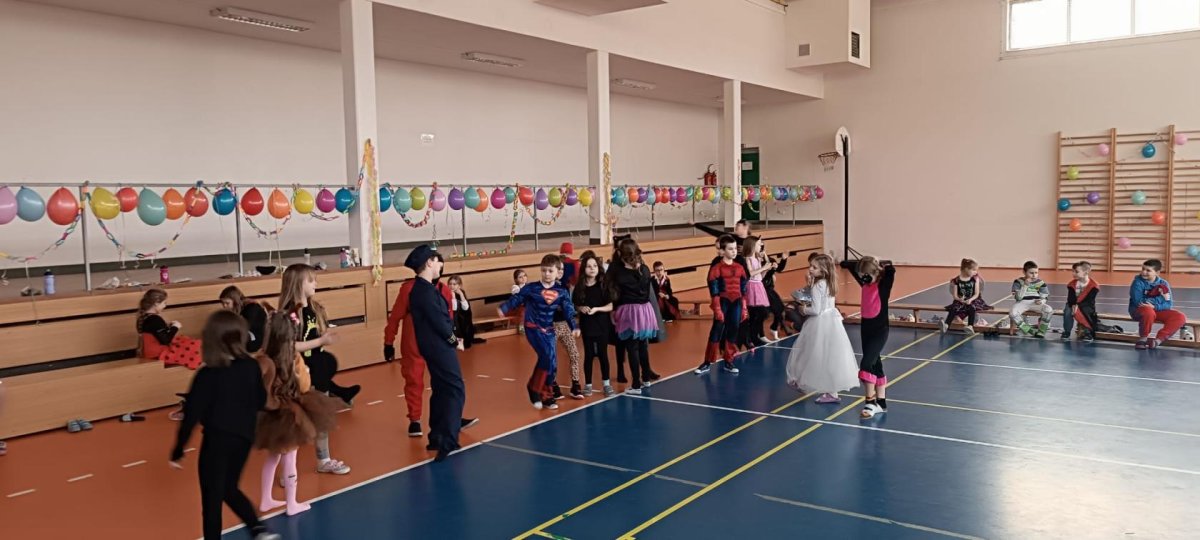 Družinová párty v maskách se konala v pondělí 26.2. v tělocvičně školy. Zpívali jsme, tančili, soutěžili a dobře jsme se bavili. Na párty přišly děti v nádherných kostýmech a mohli jsme tak vidět přehlídku princezen, čarodějek, zvířátek (například kočiček, tučňáků, včeliček, motýlků...), policistů, vojáků, superhrdinů, ale viděli jsme třeba i semafor nebo pirátku.