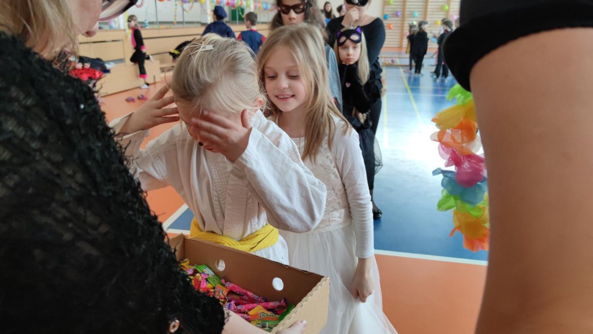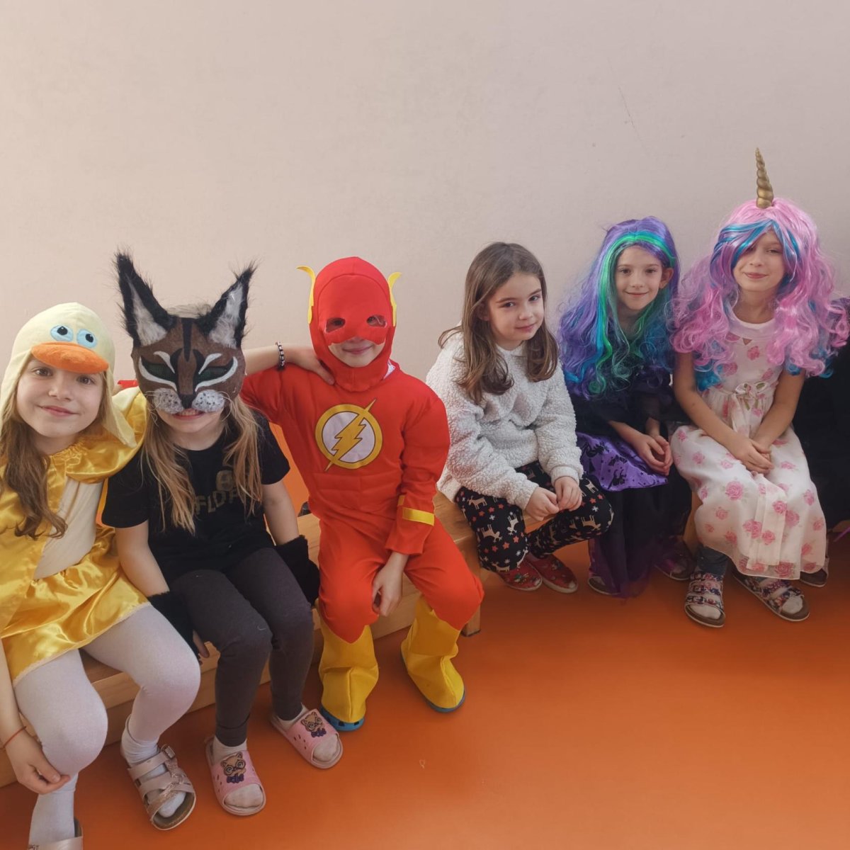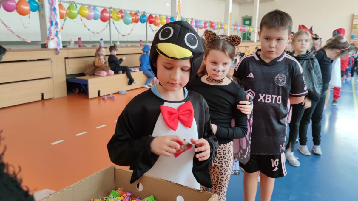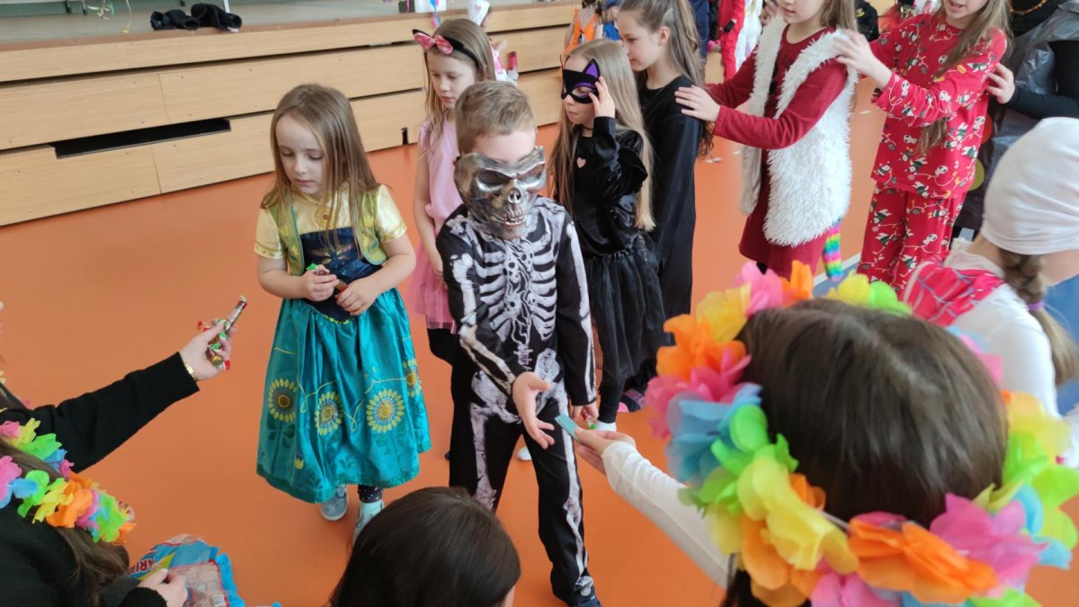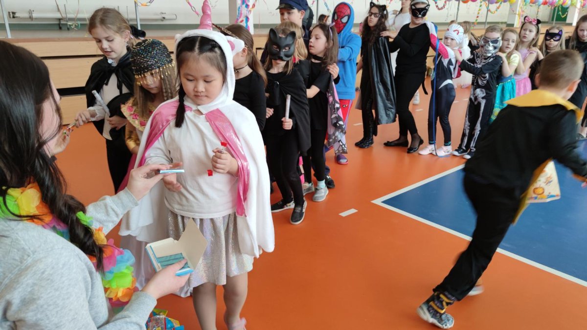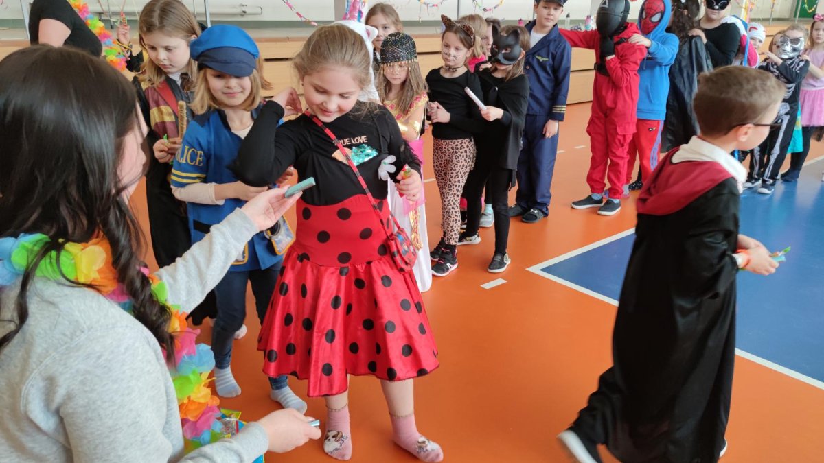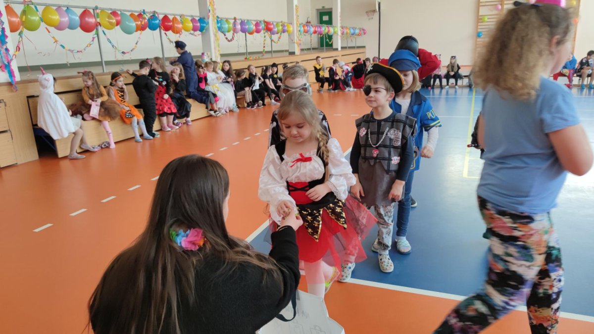 Družinová párty v maskách se konala v pondělí 26.2. v tělocvičně školy. Zpívali jsme, tančili, soutěžili a dobře jsme se bavili. Na párty přišly děti v nádherných kostýmech a mohli jsme tak vidět přehlídku princezen, čarodějek, zvířátek (například kočiček, tučňáků, včeliček, motýlků...), policistů, vojáků, superhrdinů, ale viděli jsme třeba i semafor nebo pirátku.