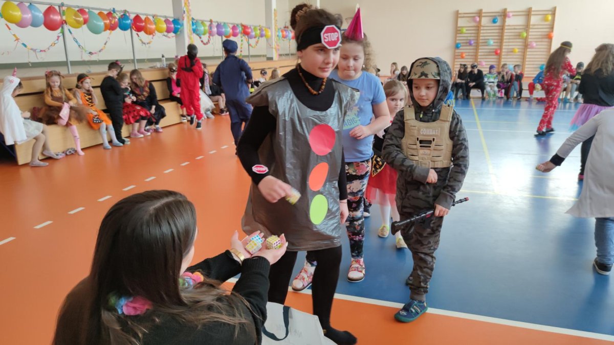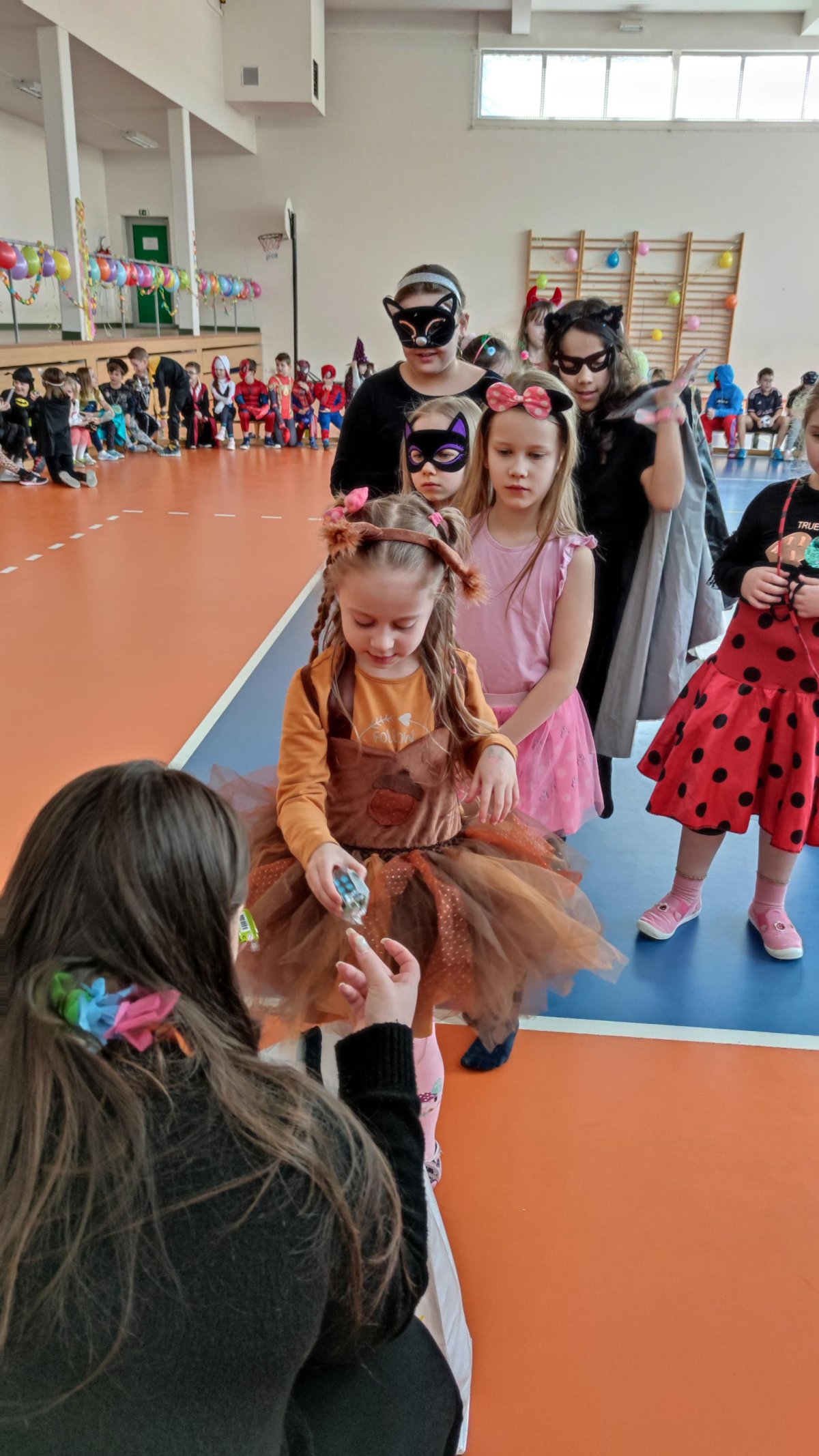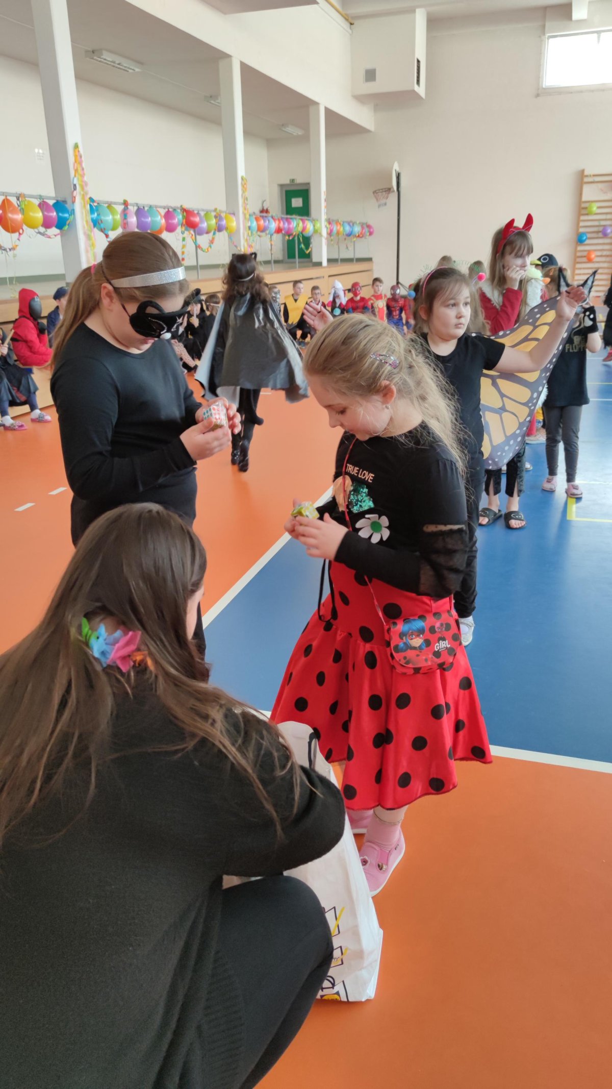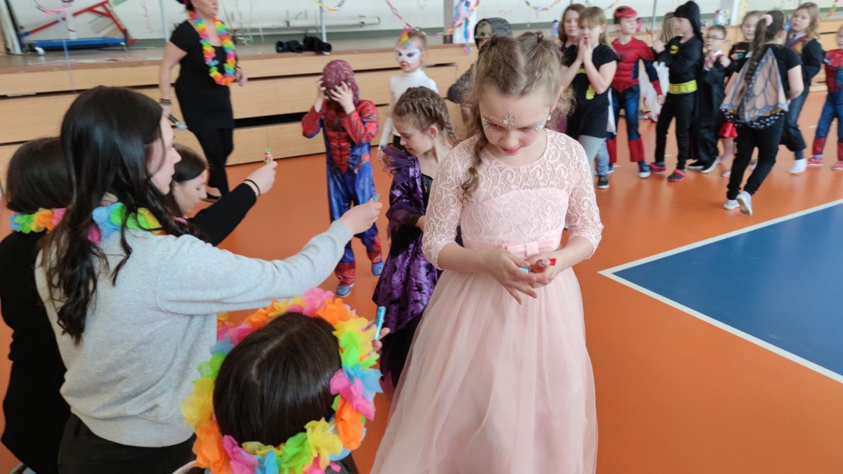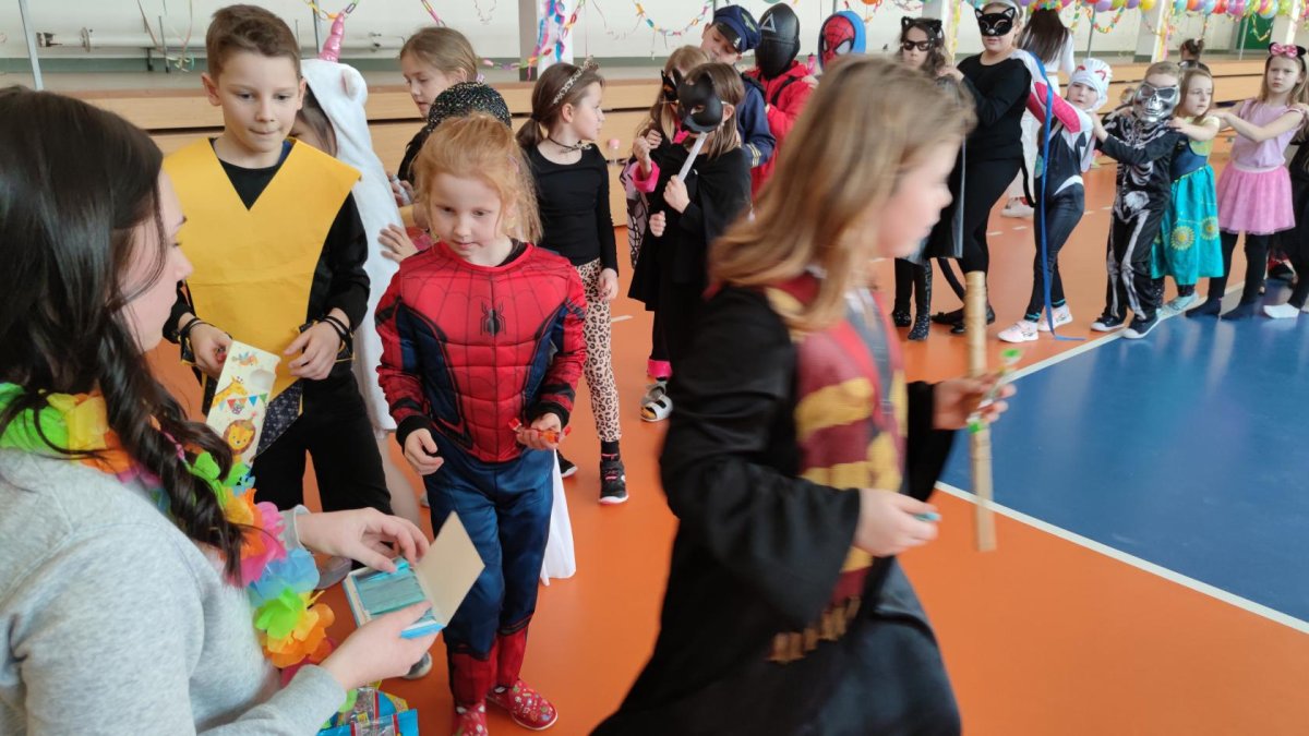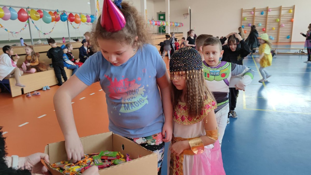 Družinová párty v maskách se konala v pondělí 26.2. v tělocvičně školy. Zpívali jsme, tančili, soutěžili a dobře jsme se bavili. Na párty přišly děti v nádherných kostýmech a mohli jsme tak vidět přehlídku princezen, čarodějek, zvířátek (například kočiček, tučňáků, včeliček, motýlků...), policistů, vojáků, superhrdinů, ale viděli jsme třeba i semafor nebo pirátku.