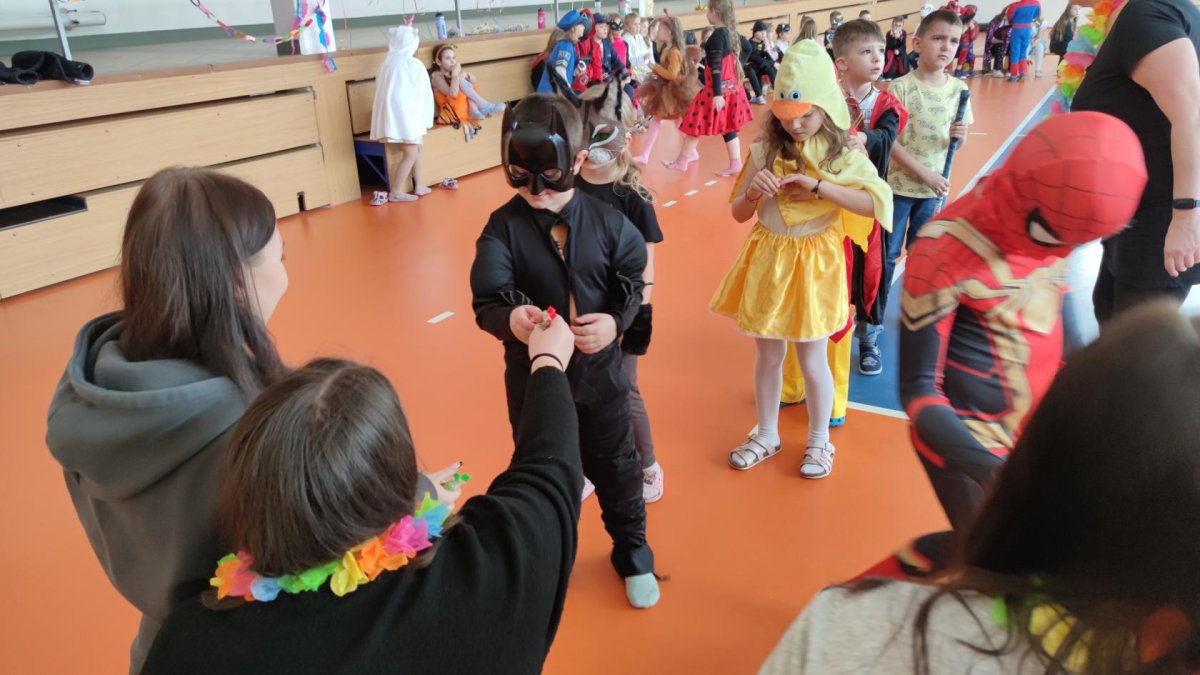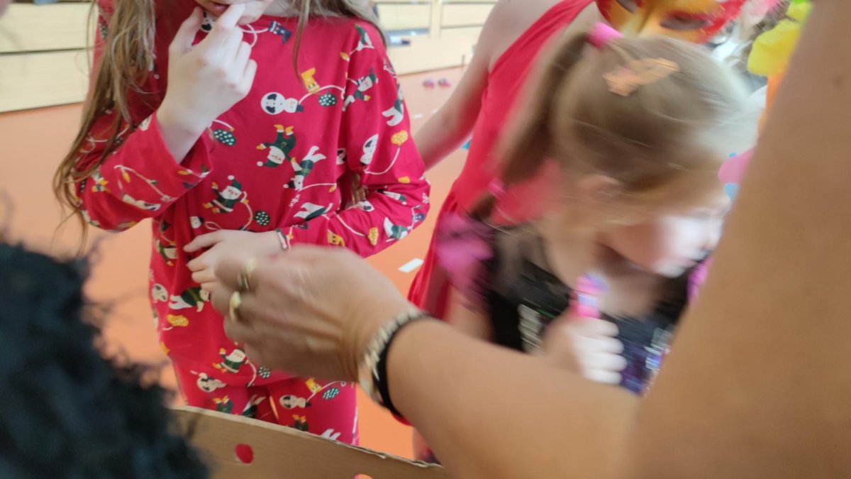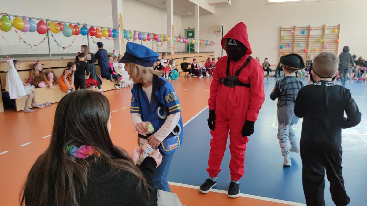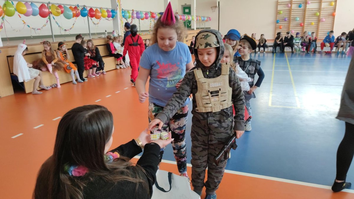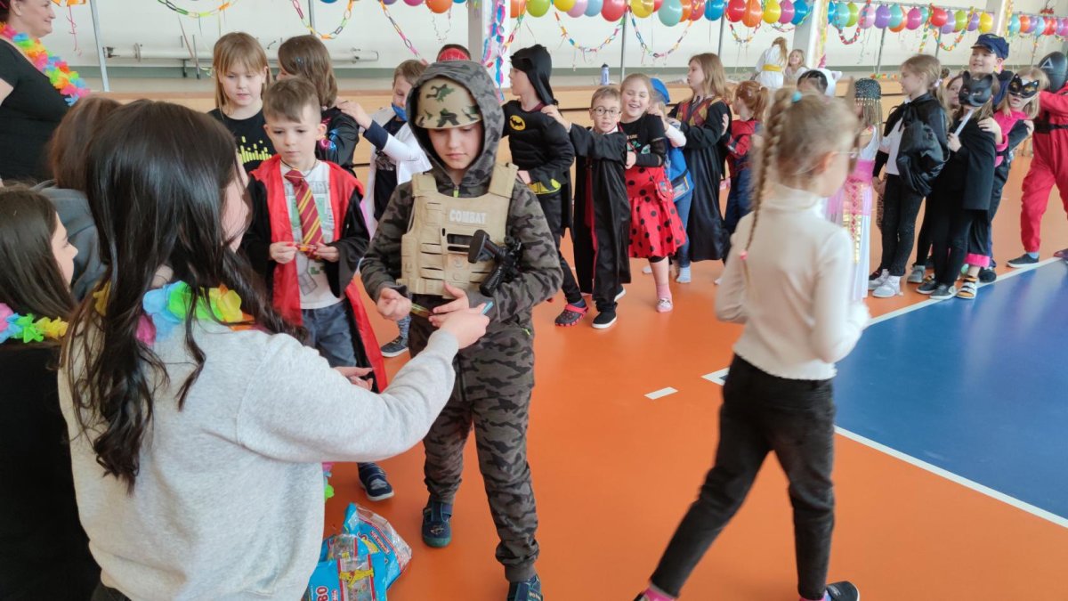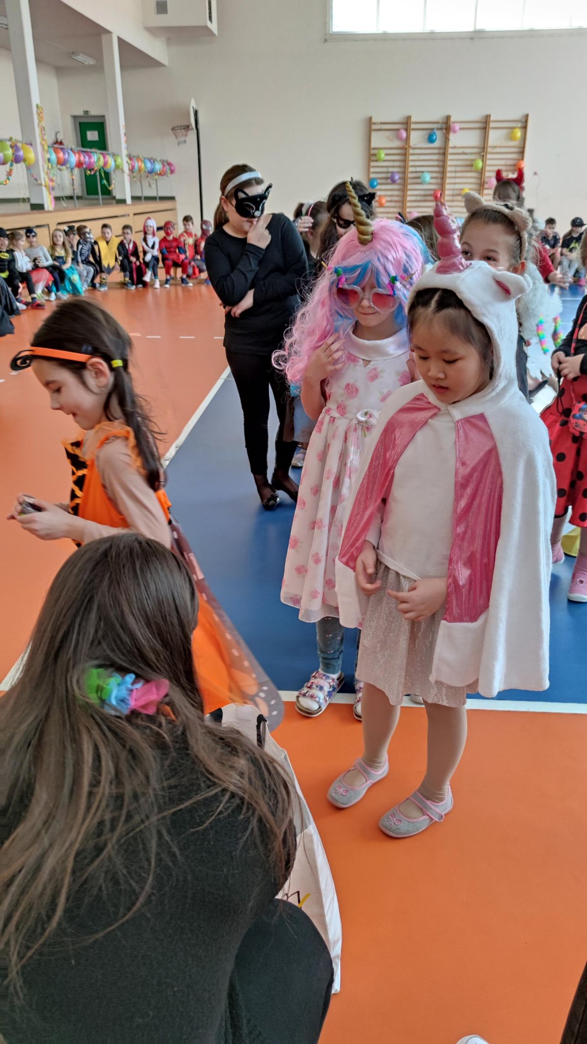 Družinová párty v maskách se konala v pondělí 26.2. v tělocvičně školy. Zpívali jsme, tančili, soutěžili a dobře jsme se bavili. Na párty přišly děti v nádherných kostýmech a mohli jsme tak vidět přehlídku princezen, čarodějek, zvířátek (například kočiček, tučňáků, včeliček, motýlků...), policistů, vojáků, superhrdinů, ale viděli jsme třeba i semafor nebo pirátku.