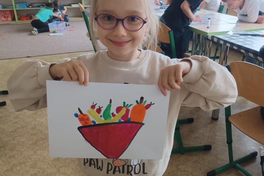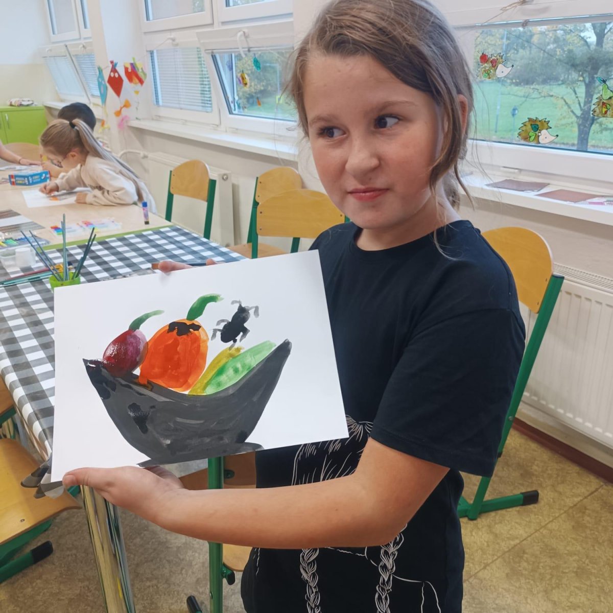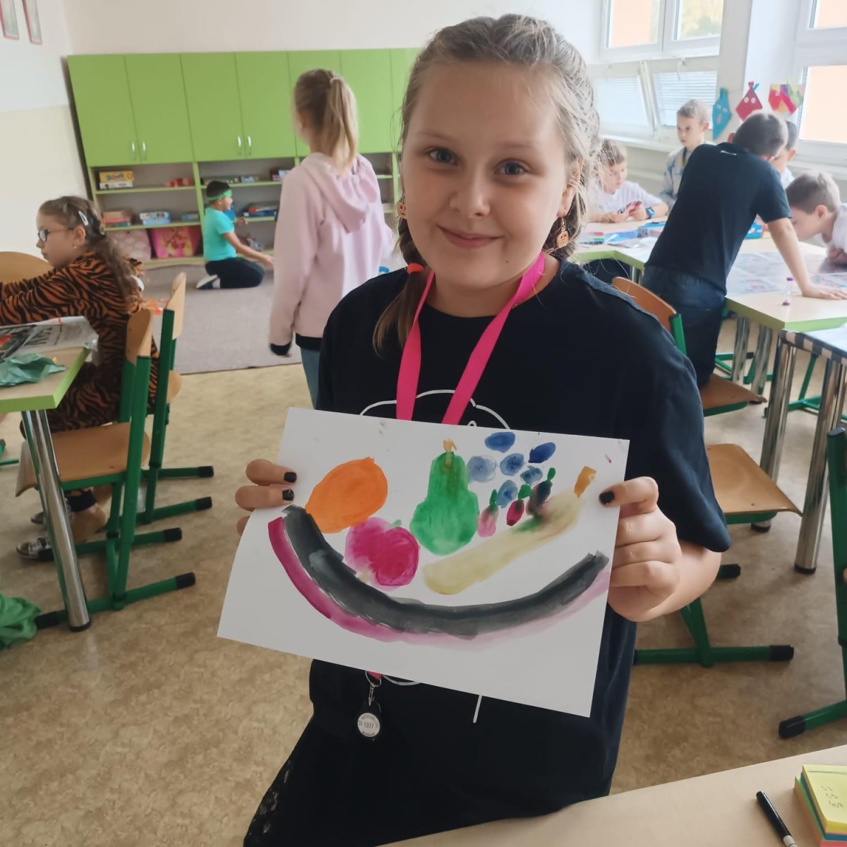 Mísy plné šťavnatého ovoce - ty jsme malovali vodovými barvami, nebo otiskovali. Jen se podívejte do fotogalerie!