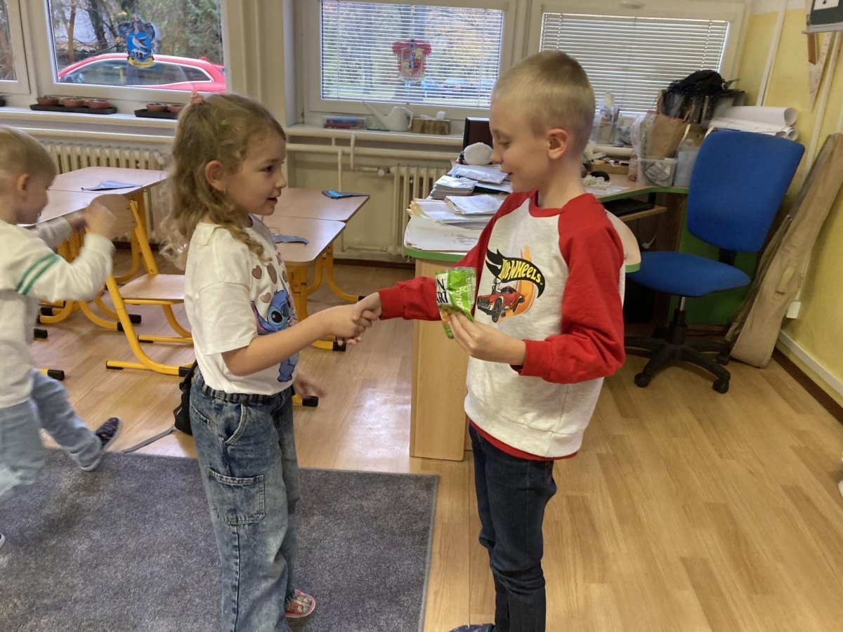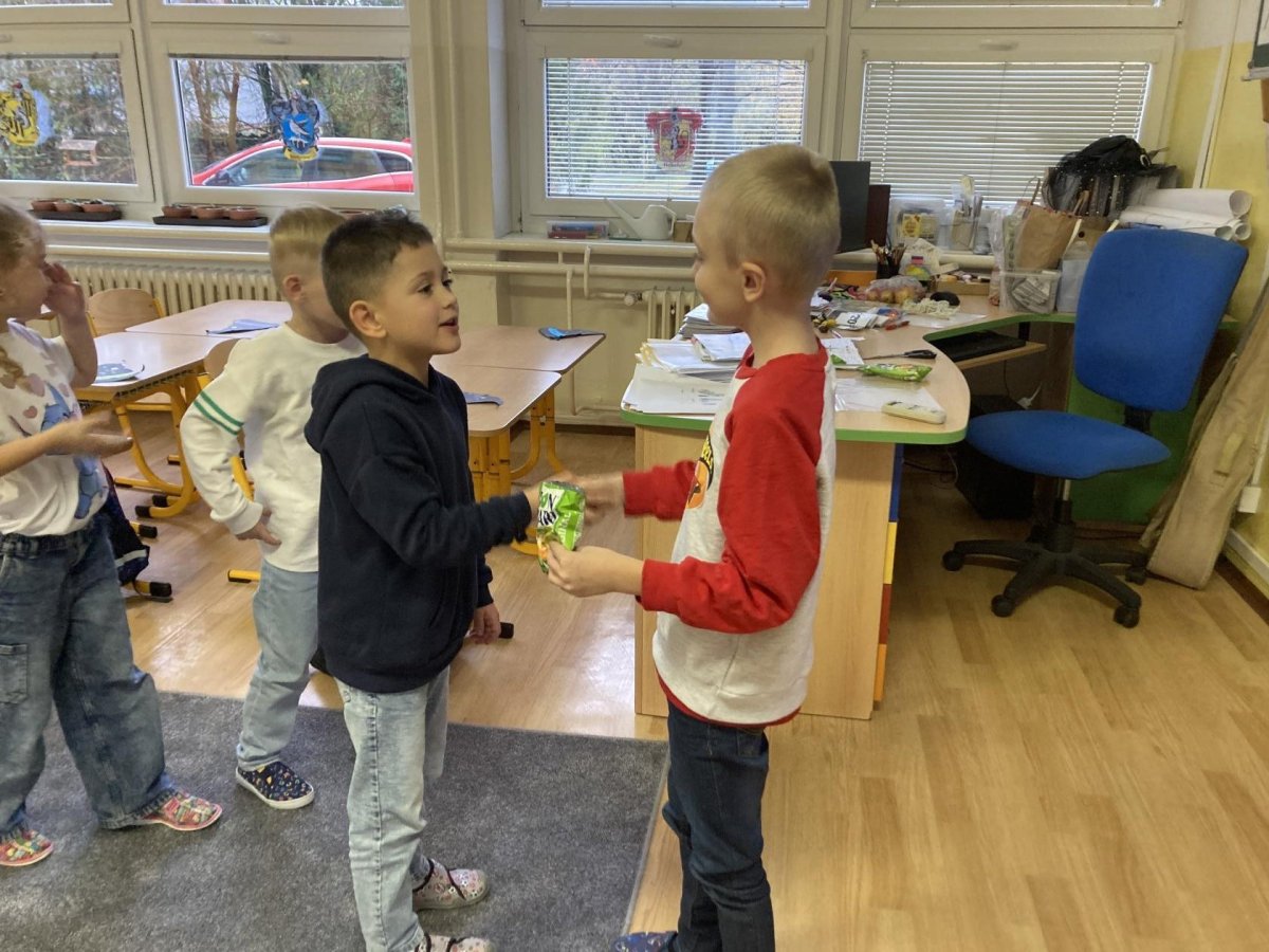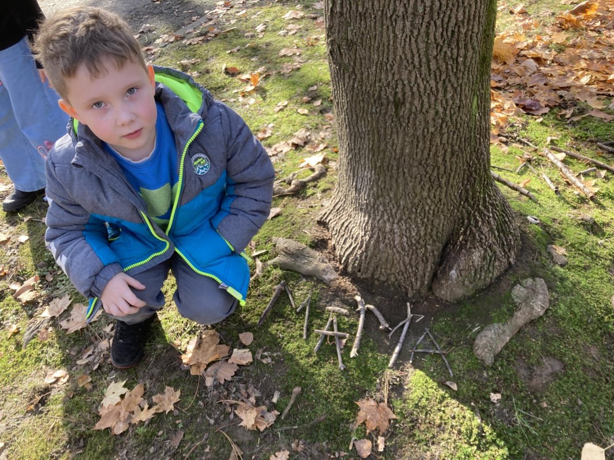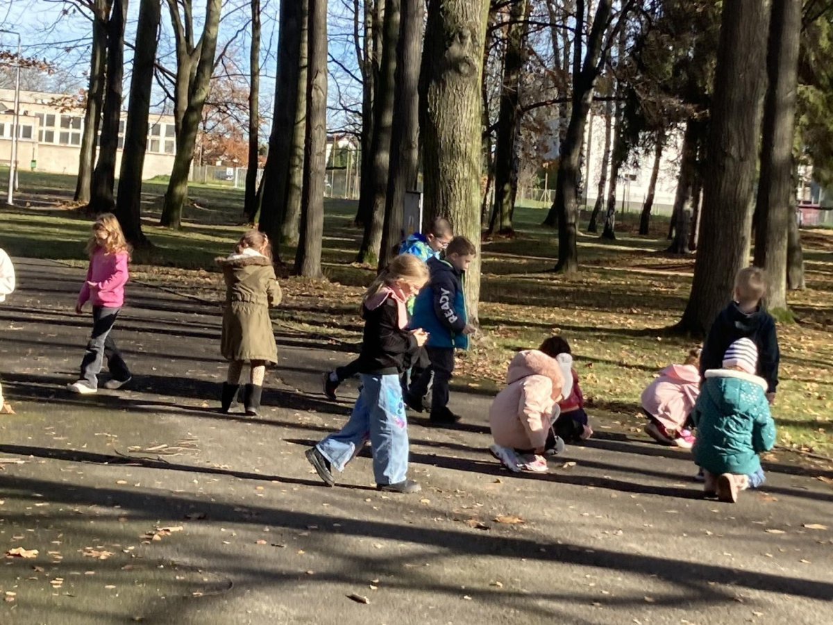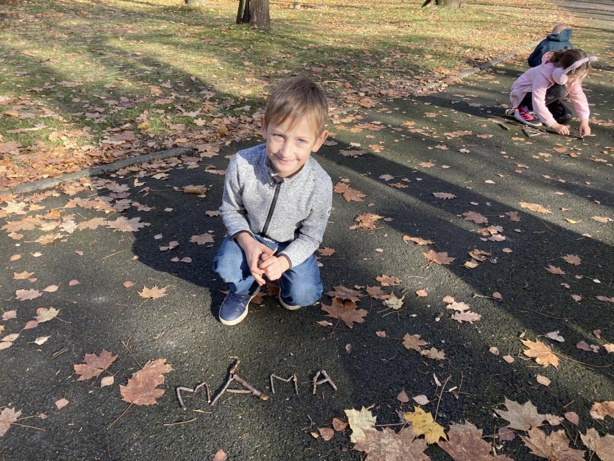 Tento týden slavil narozeniny Filípek Lukš. Děkujeme za sladkosti. Venku jsme procvičovali psaní slov z přírodnin a poznávali jsme stromy podle listí a plodů. V tělocviku jsme řádili s gymballem.