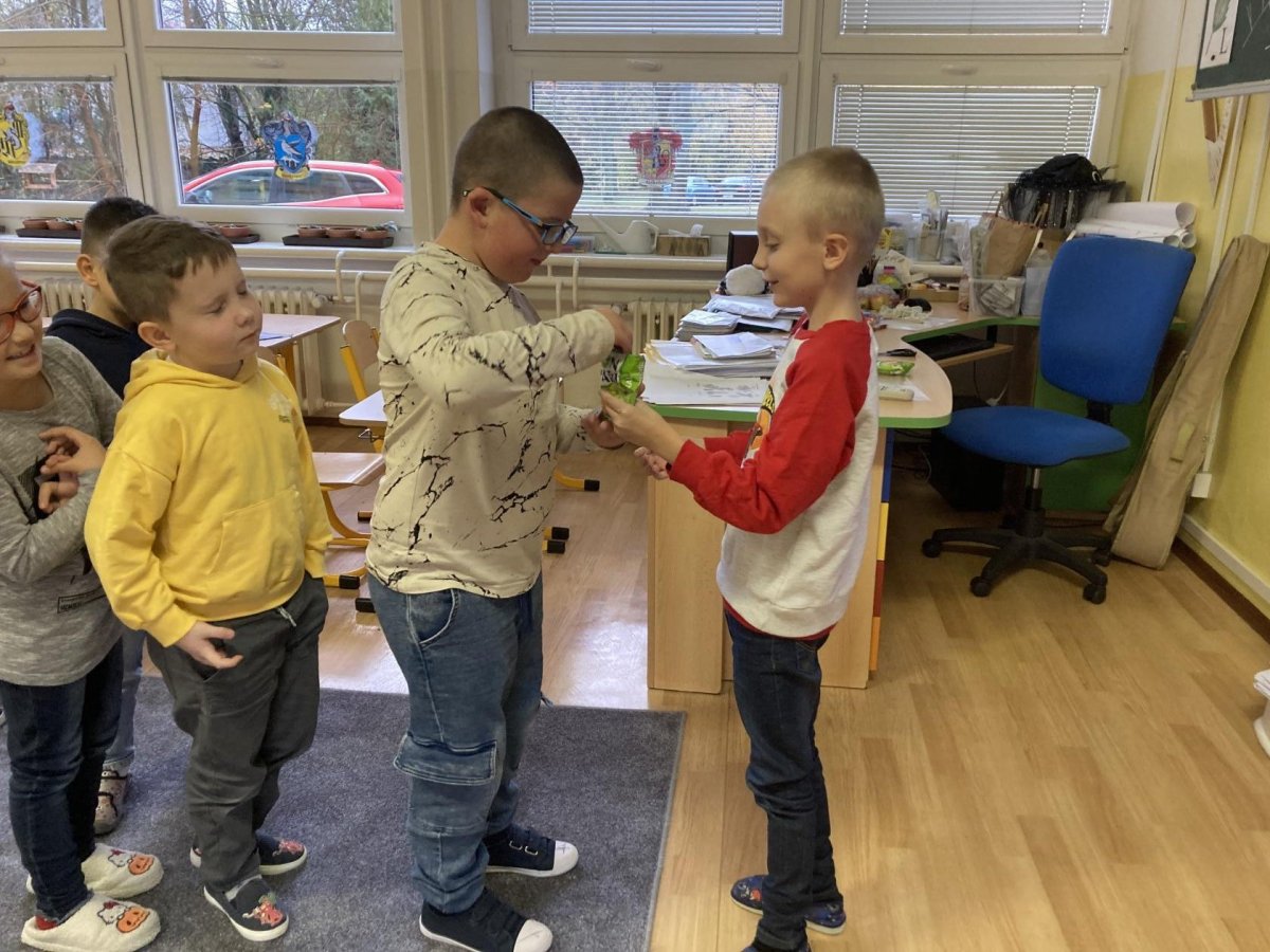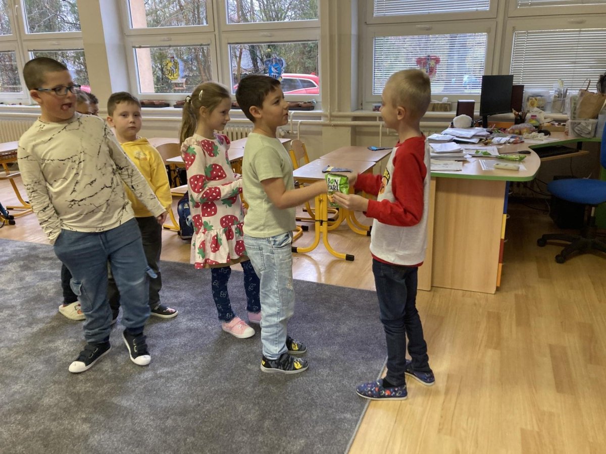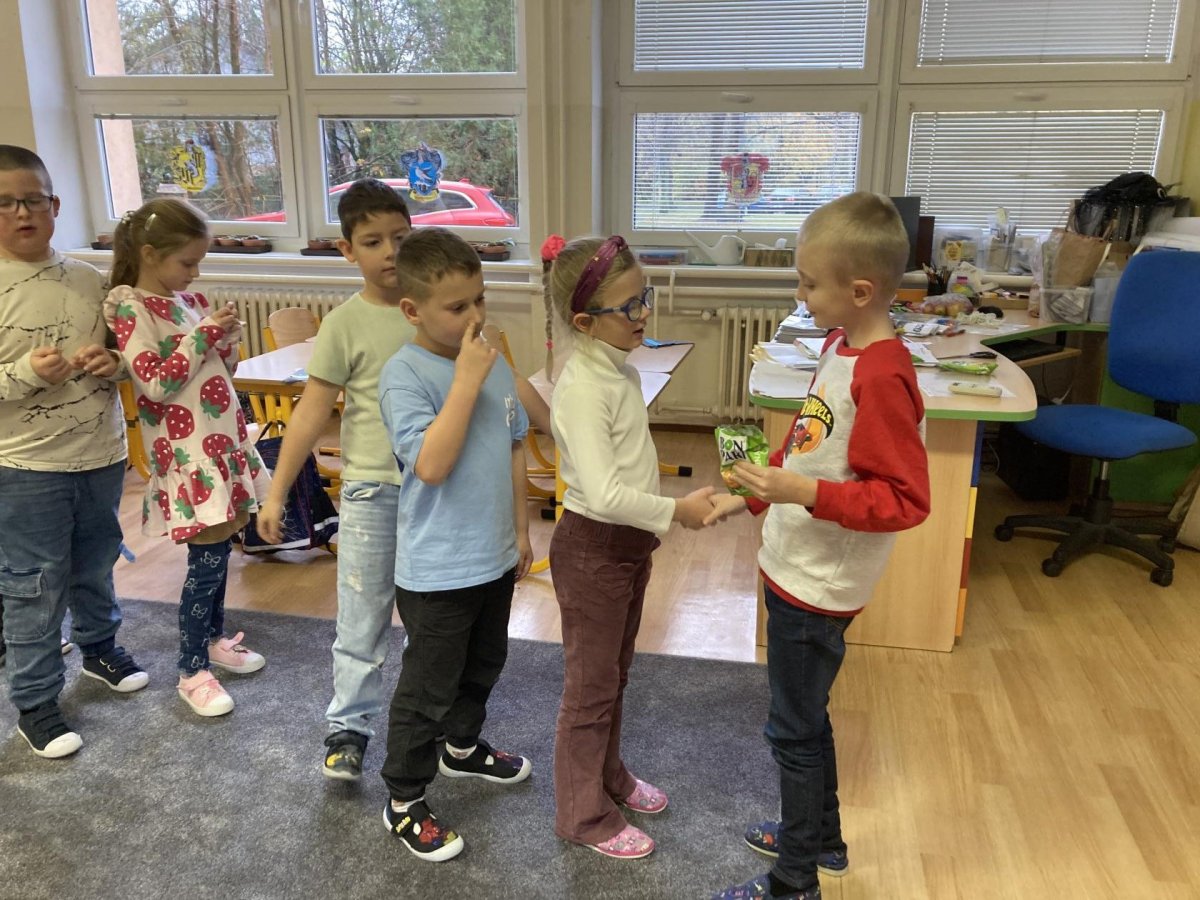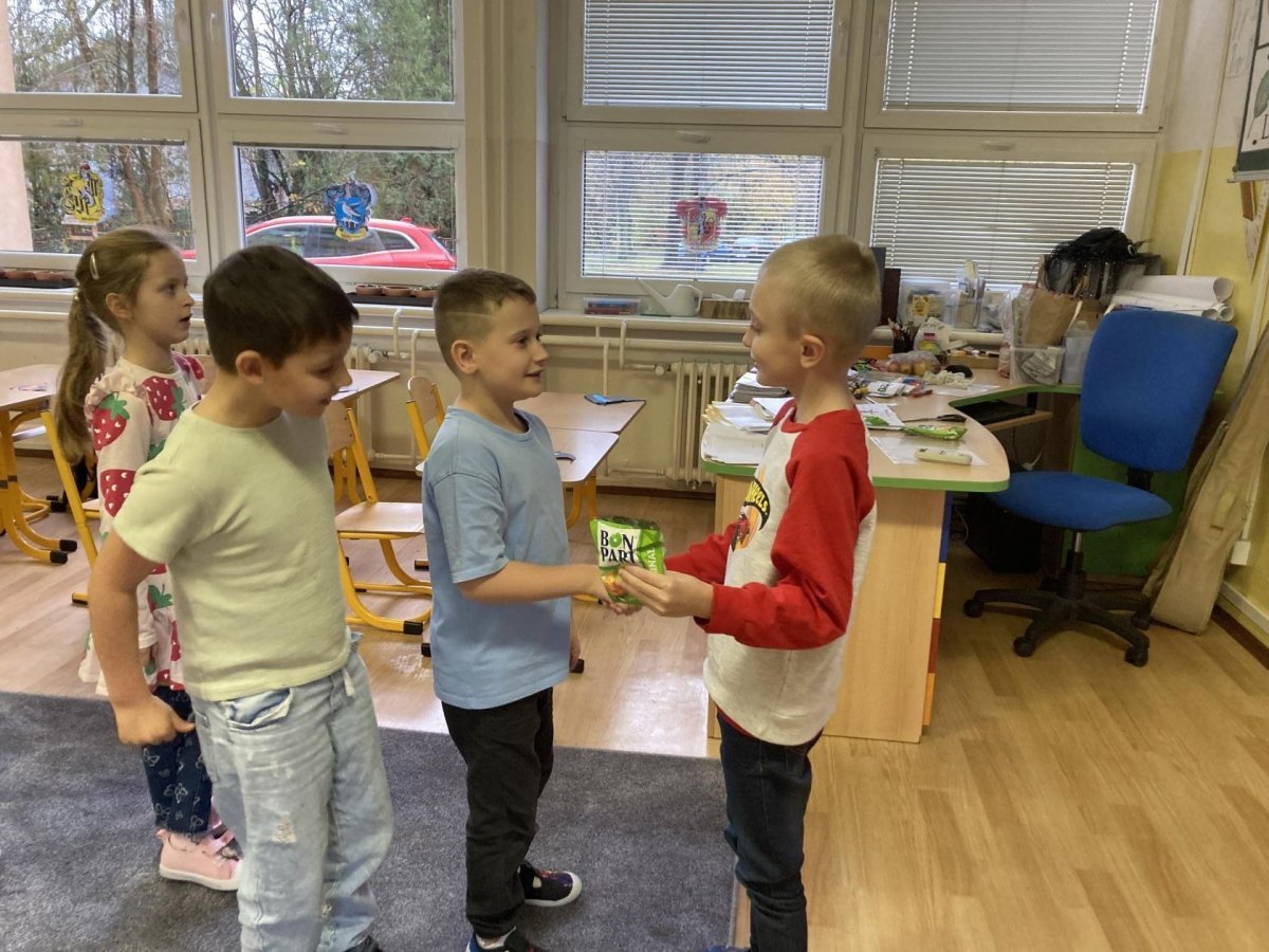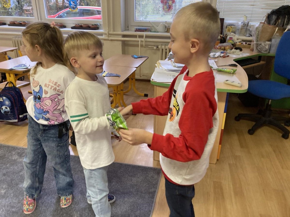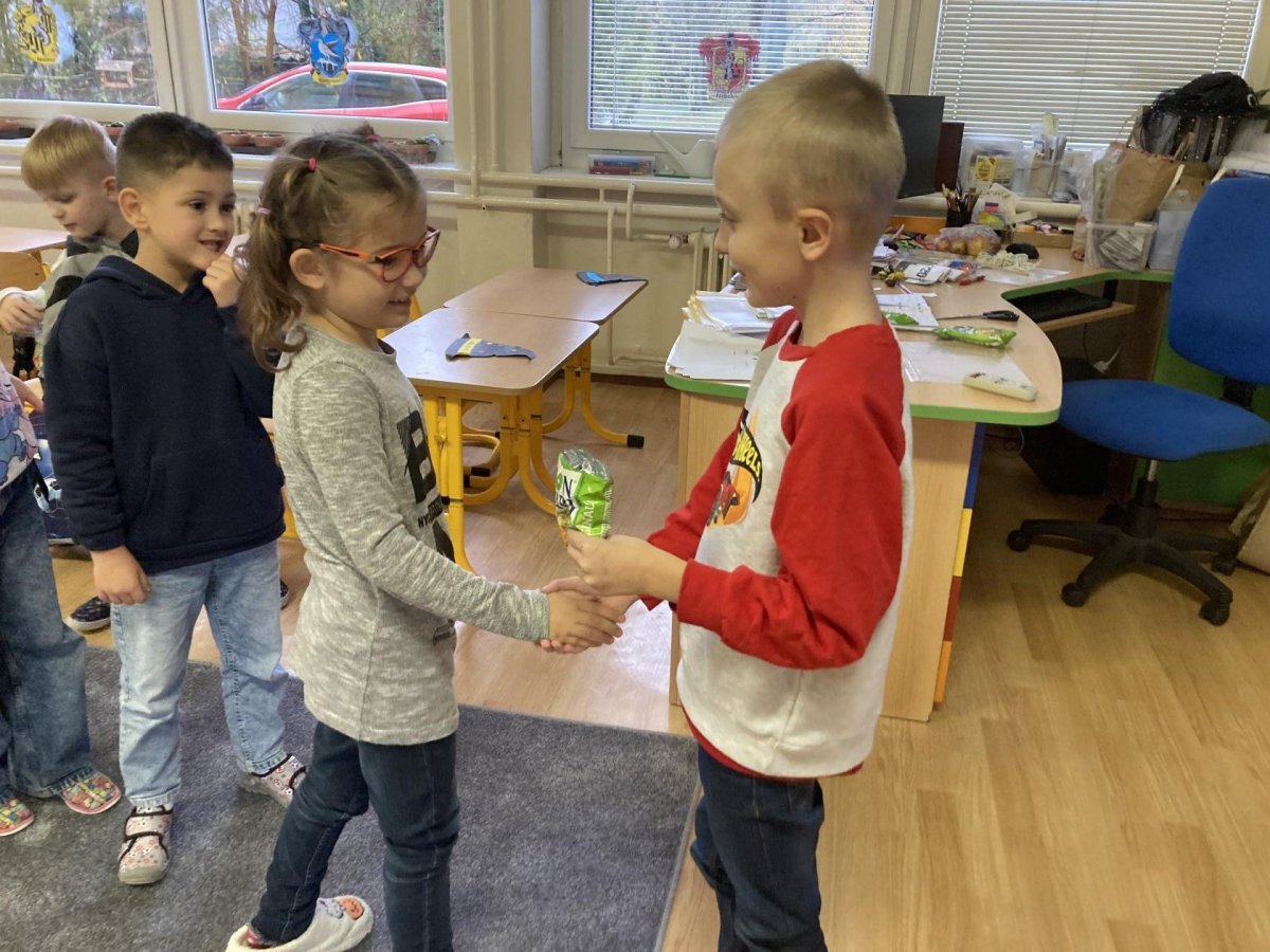 Tento týden slavil narozeniny Filípek Lukš. Děkujeme za sladkosti. Venku jsme procvičovali psaní slov z přírodnin a poznávali jsme stromy podle listí a plodů. V tělocviku jsme řádili s gymballem.