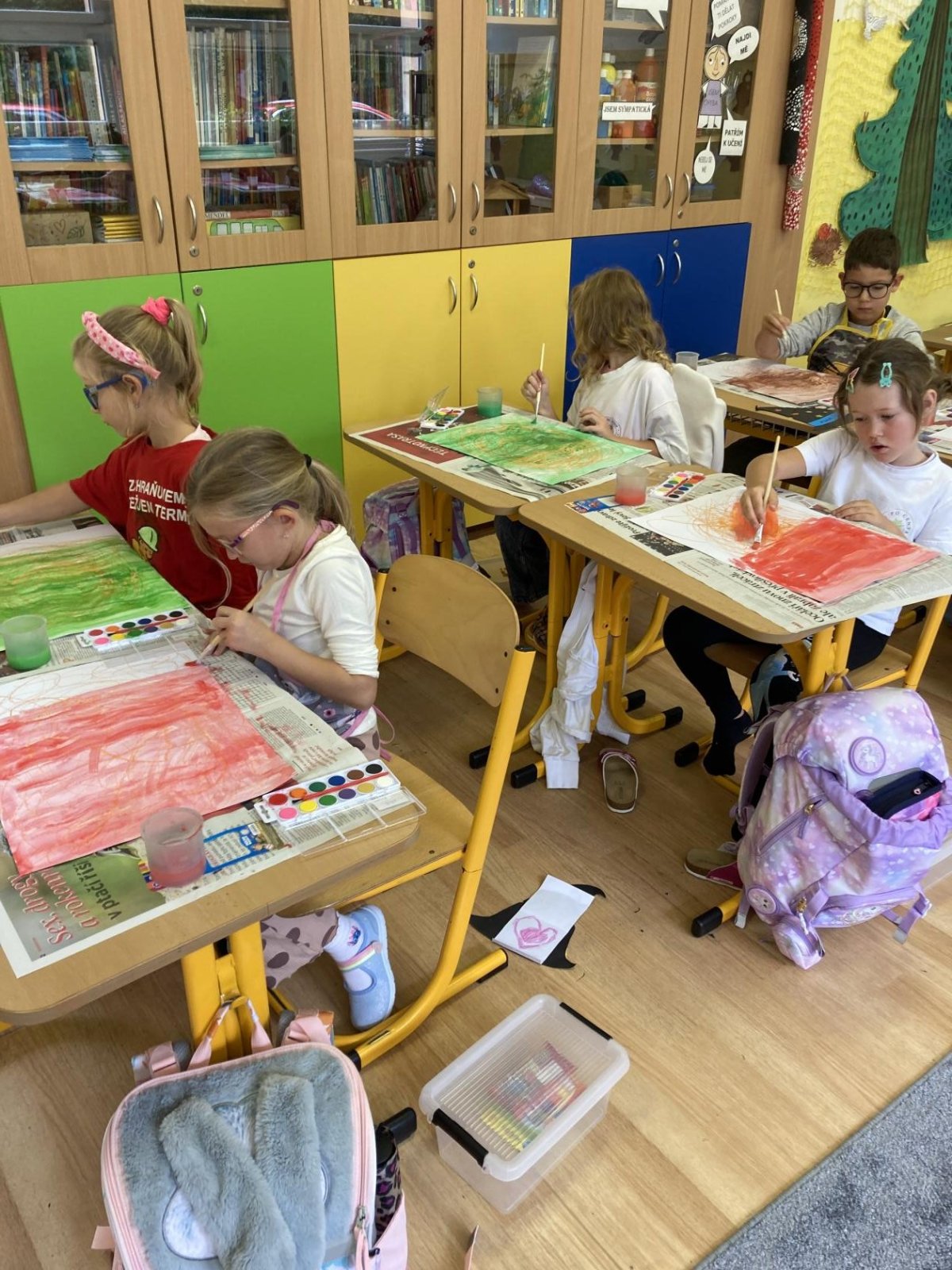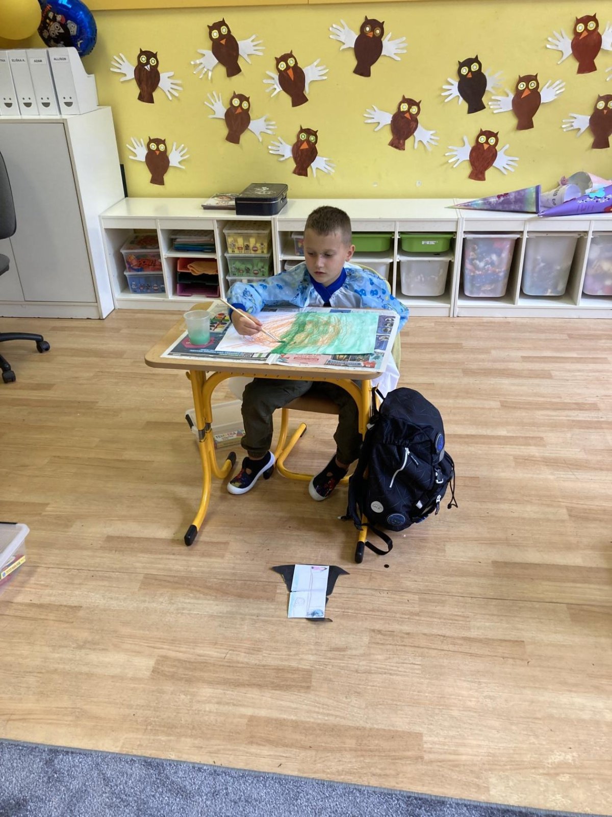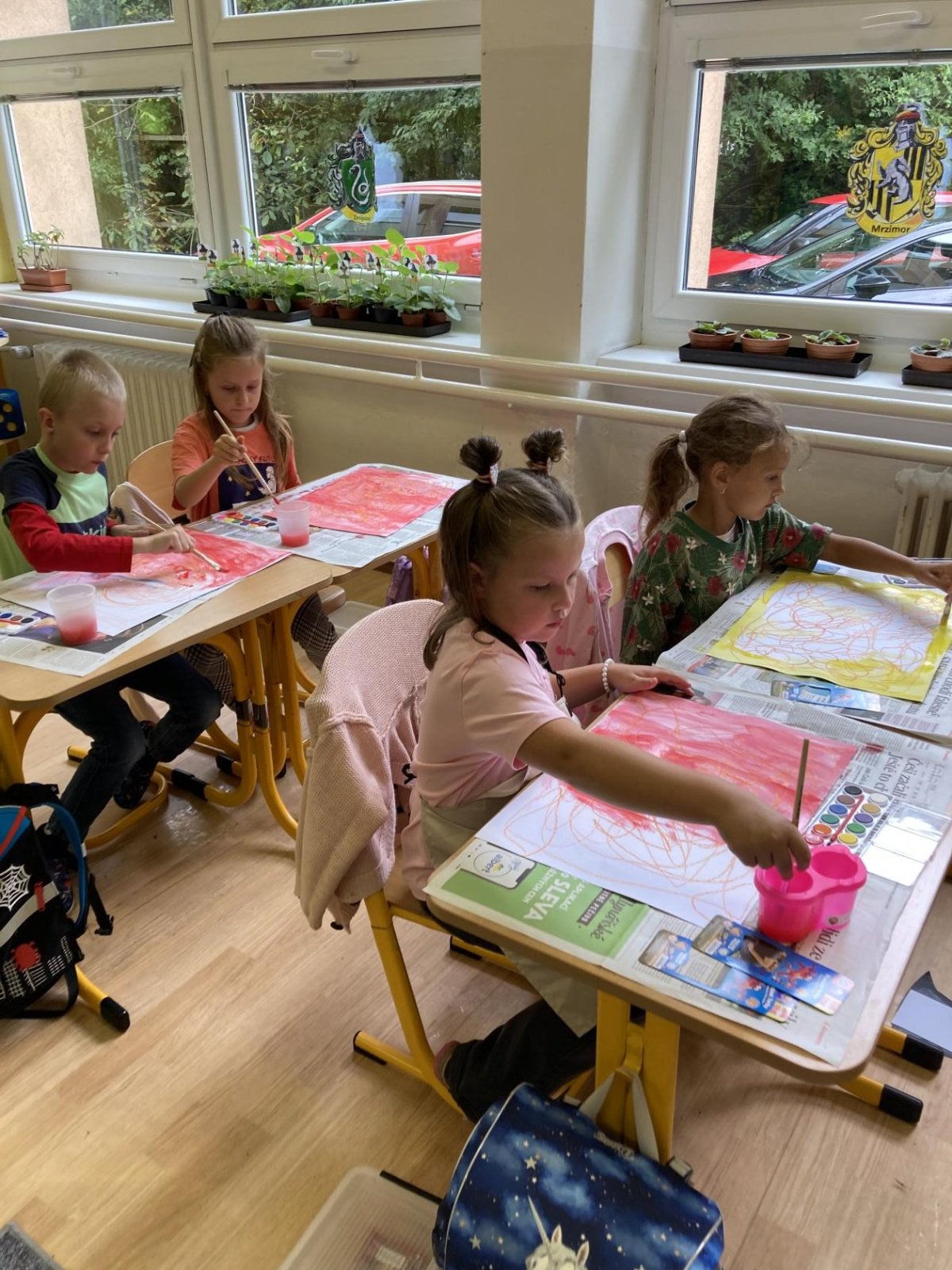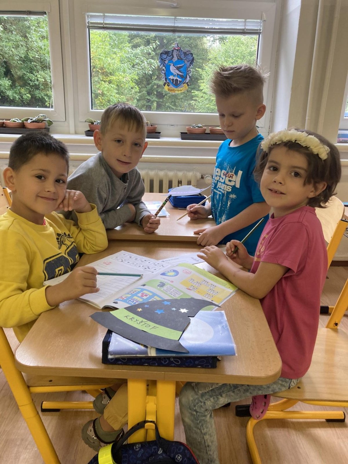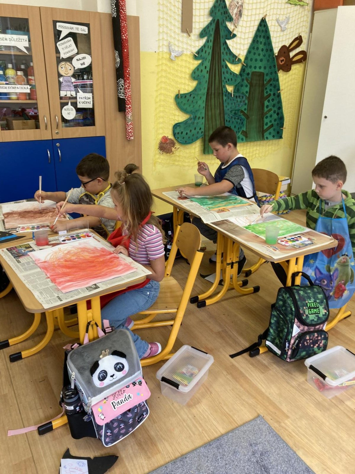 V matematice jsme si vyzkoušeli práci ve skupinkách. Moc jsme si to užili a zjistili jsme, že víc hlav, víc ví :-) Měli jsme první tělocvik, první Učení venku společně s kamarády z 1.A, první stavby z krychlí (na novém koberci) a první výtvarnou výchovu. Na závěr týdne jsme popřáli Filípkovi Szelongovi k narozeninám a dostali jsme od něj sladký balíček. DĚKUJEME!