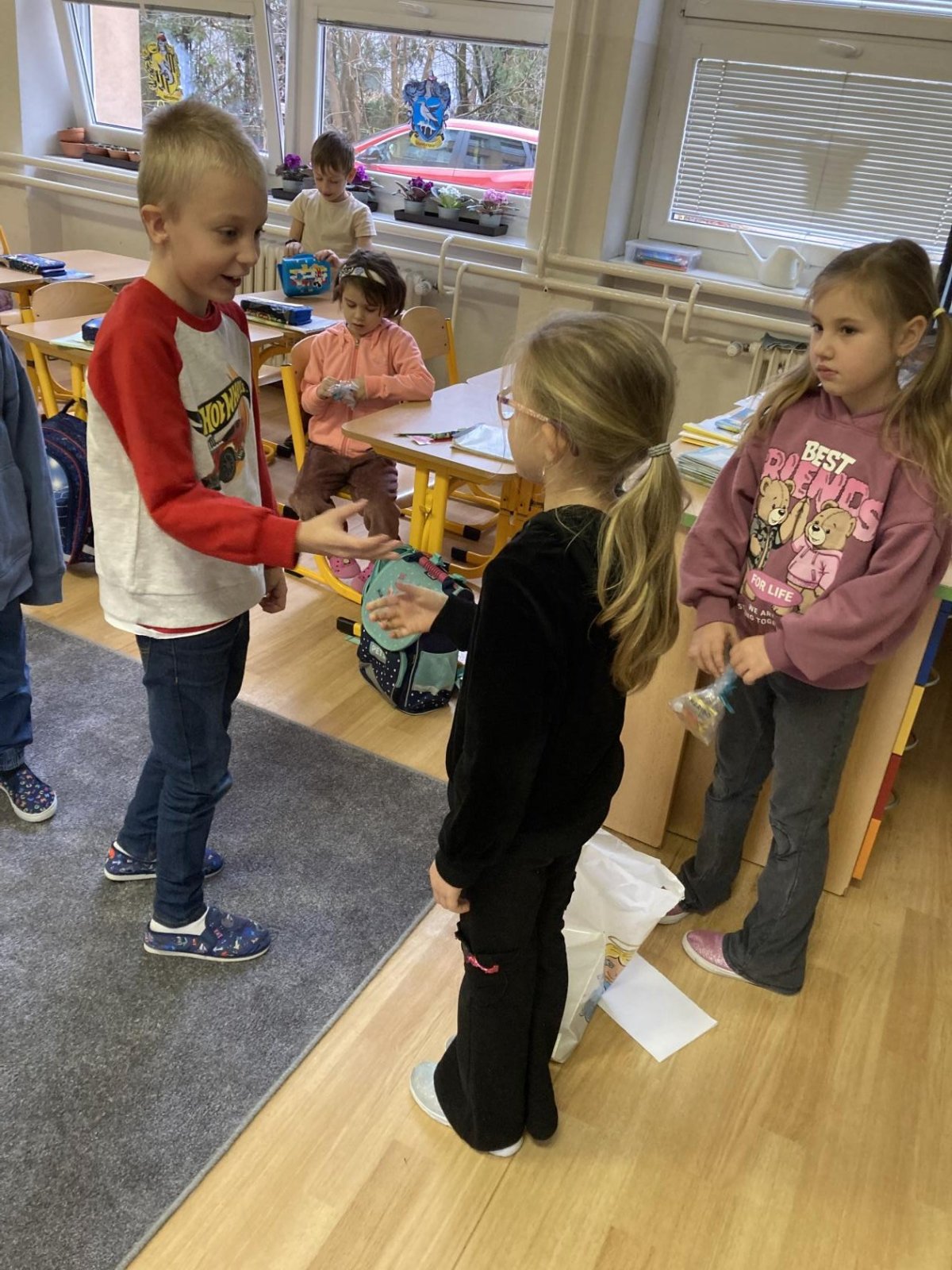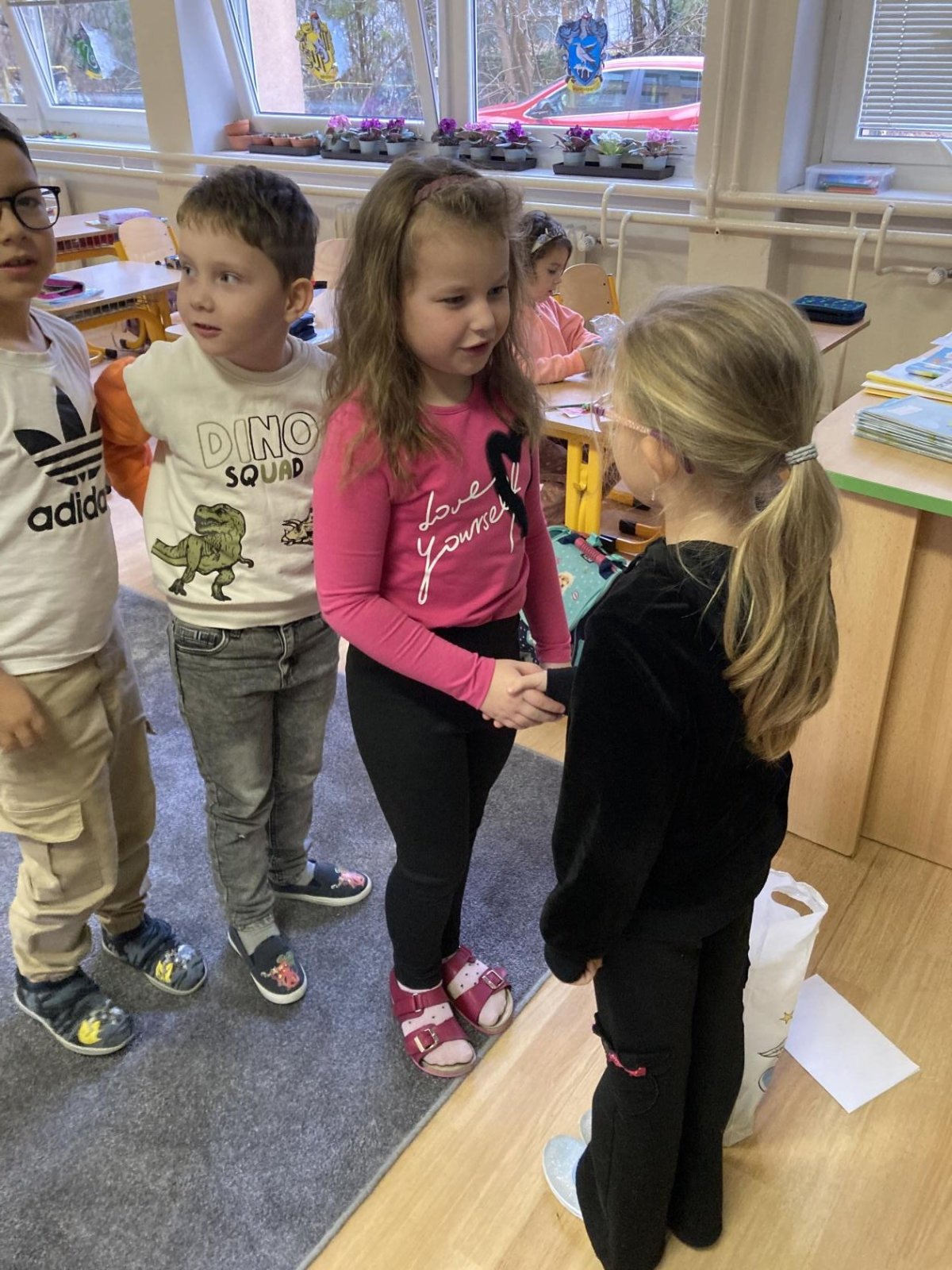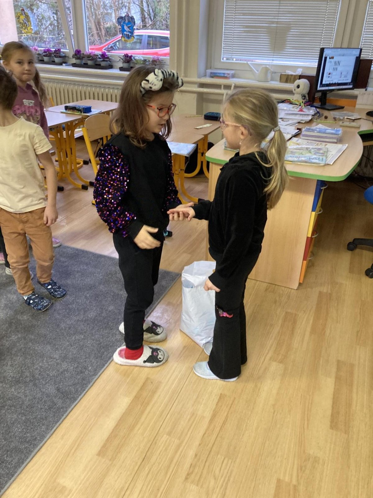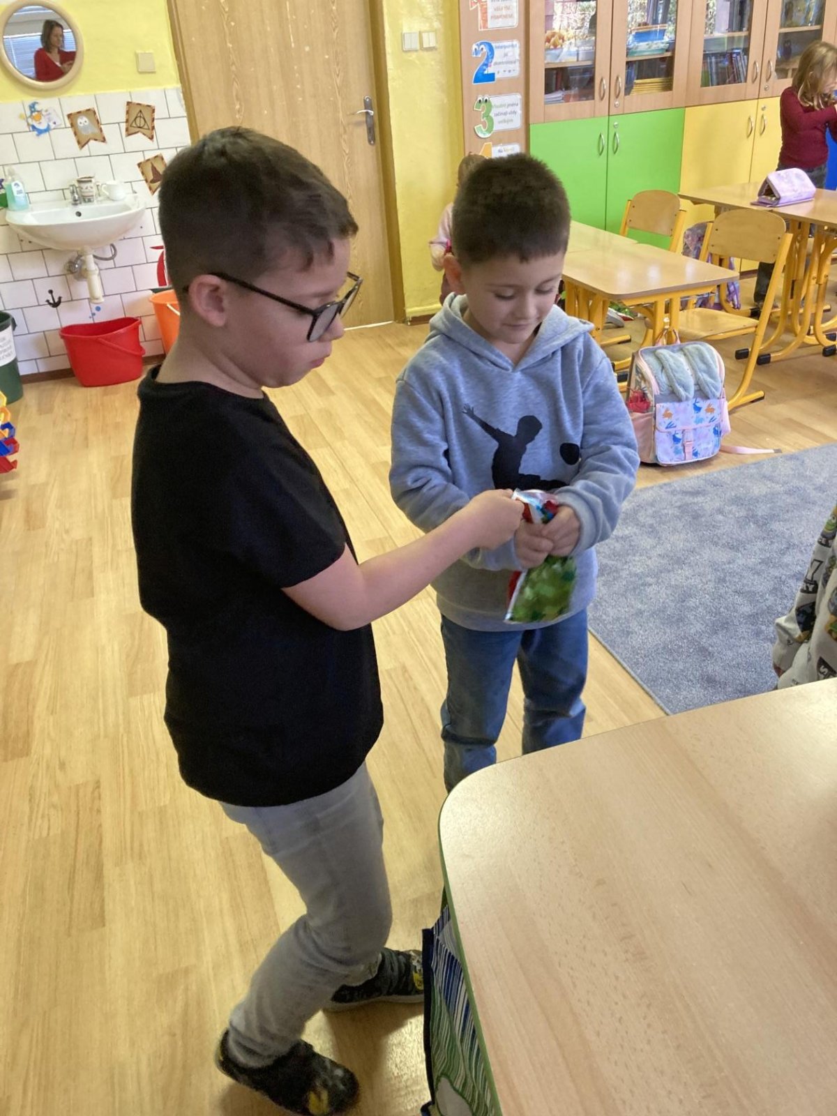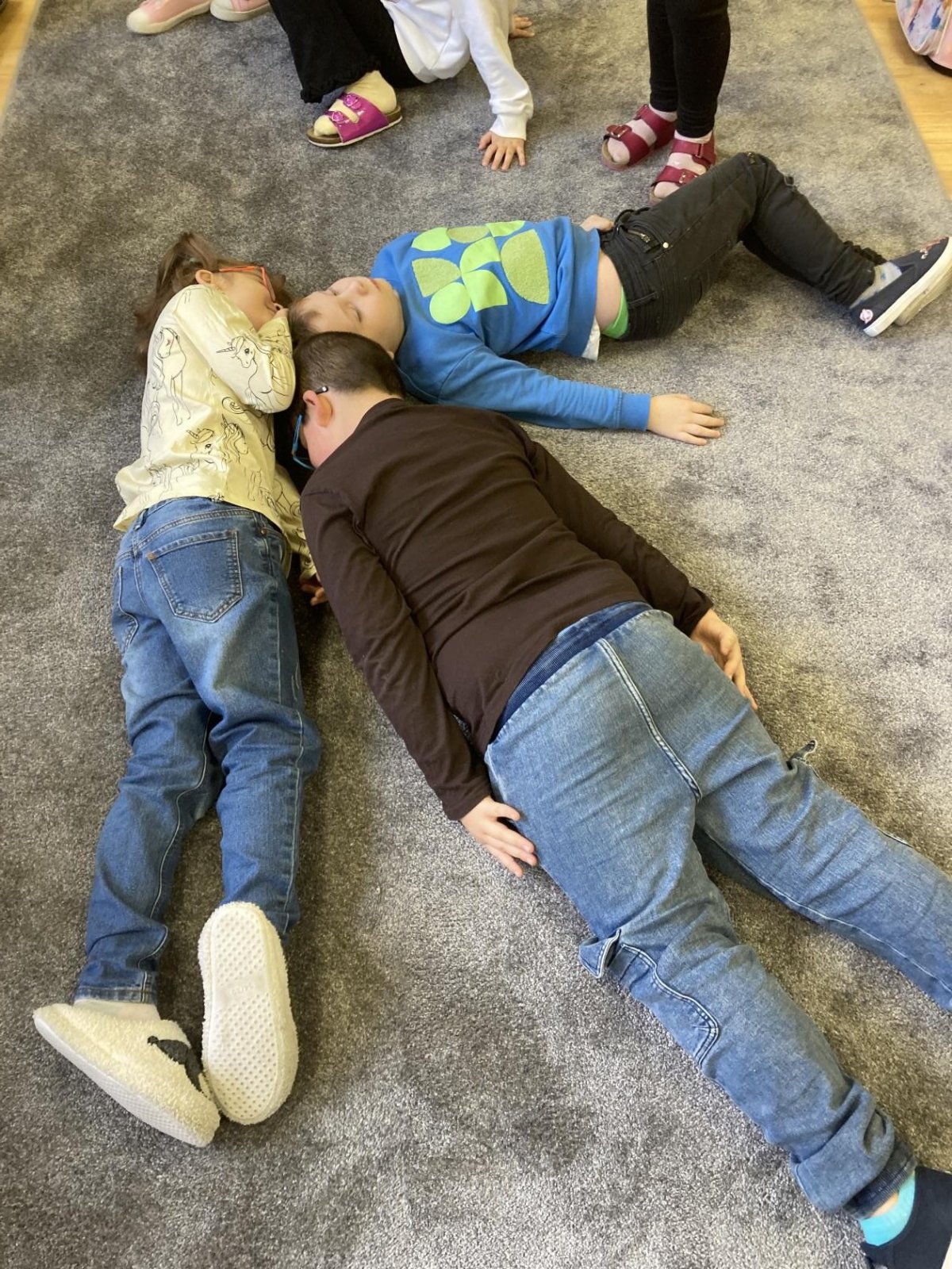 Tento týden jsme oslavili dvoje narozeniny (Adámek a Timinka). Tvořili jsme písmena z našich těl :-)