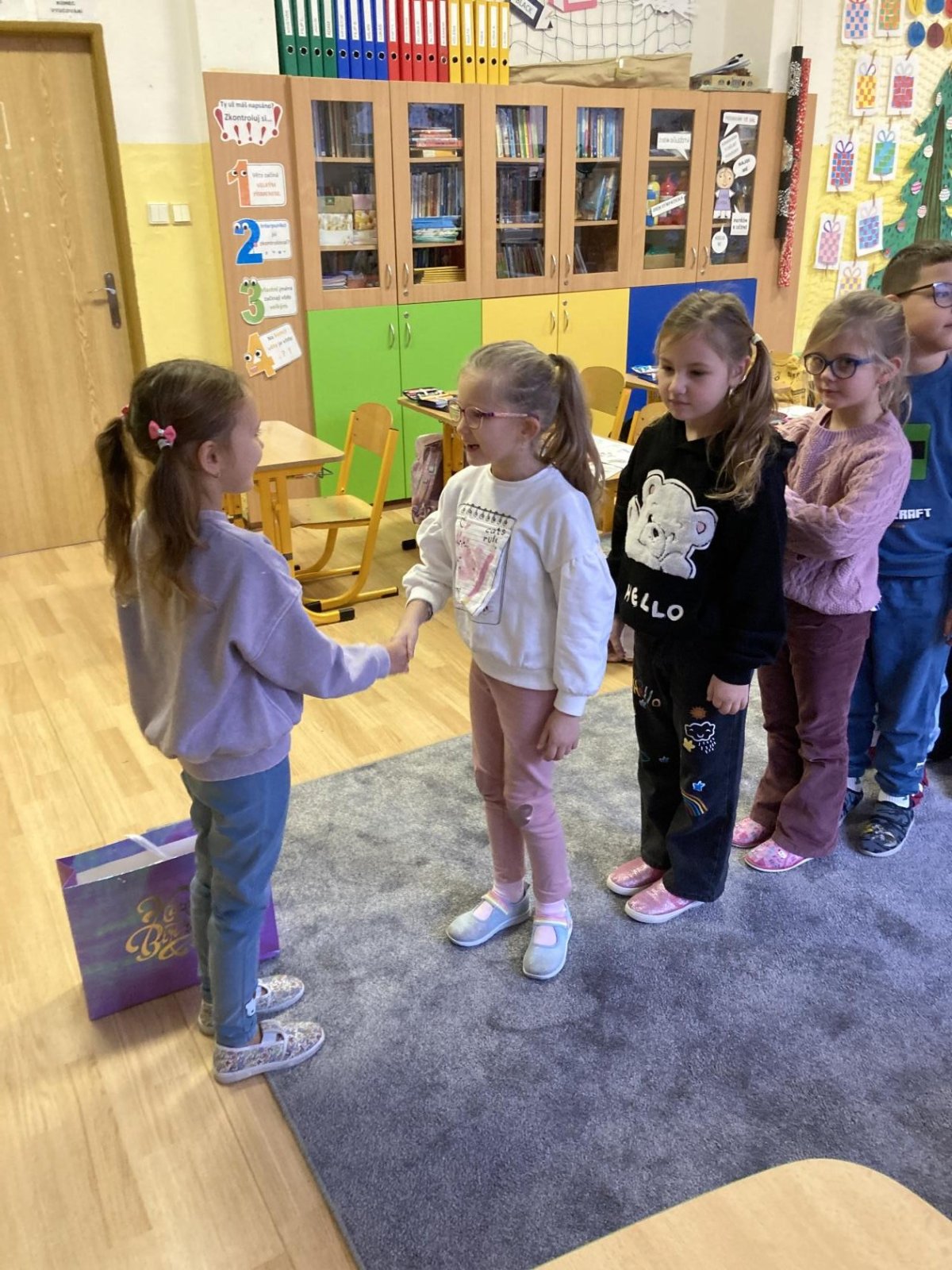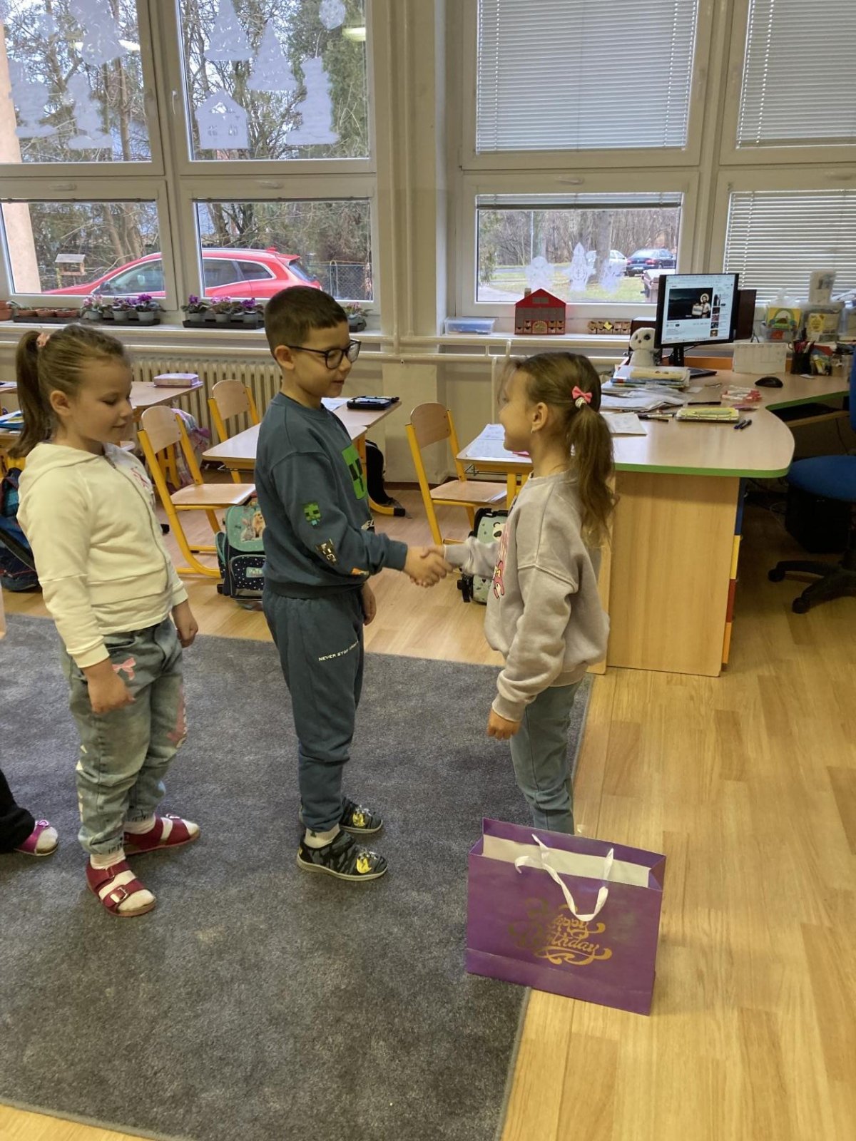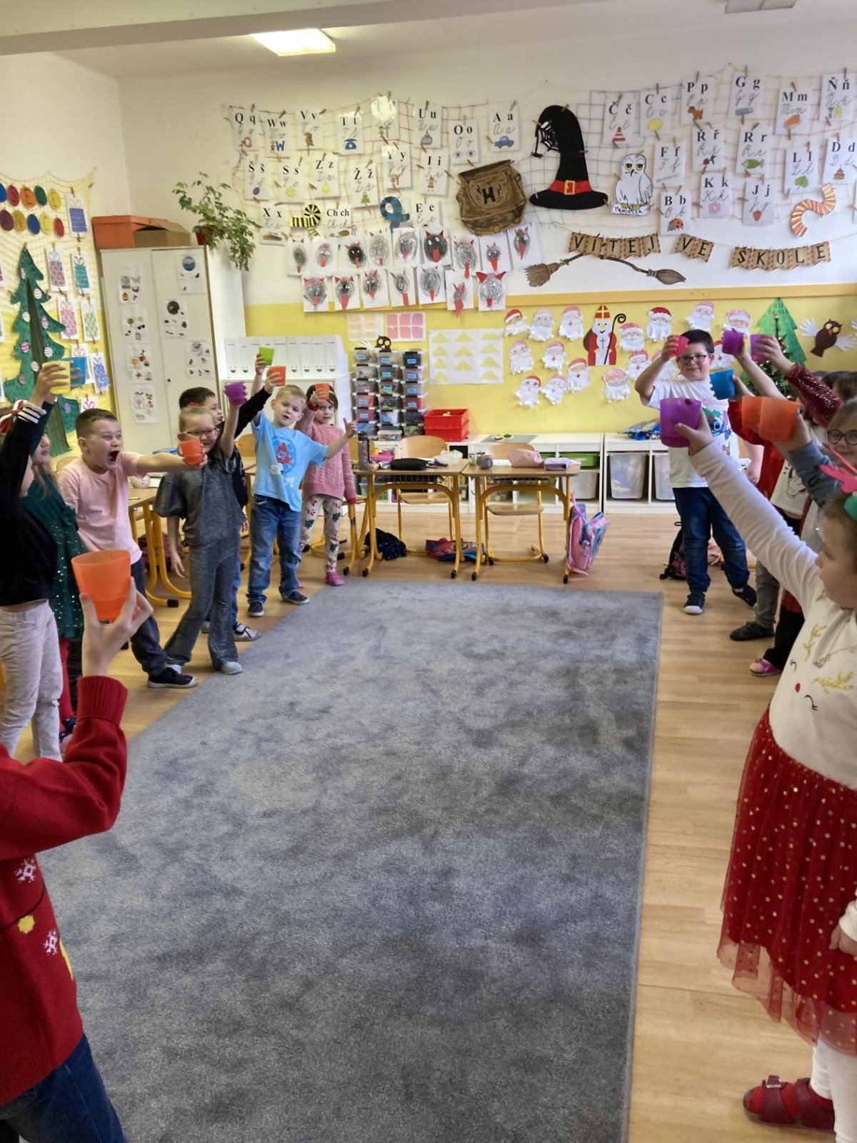 Během posledních dvou týdnů před Vánocemi jsme k narozeninám popřáli Káji, oběma Eliškám, Eleonor, Helence a Lukáškovi. K narozeninám, k vánočním svátkům a do nového roku jsme si připili dětským šampusem.
