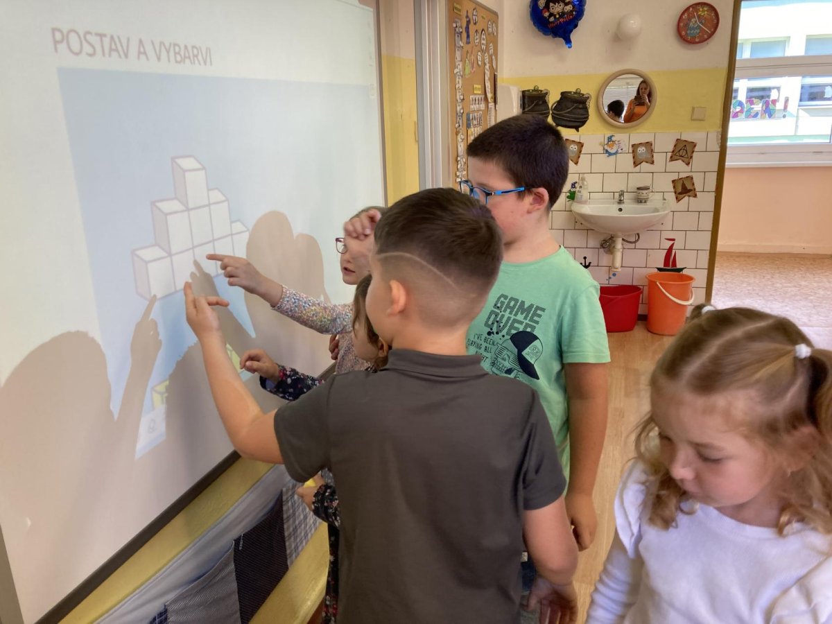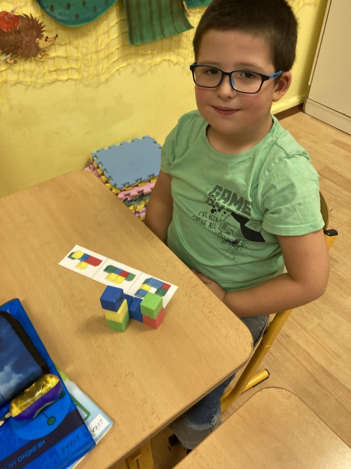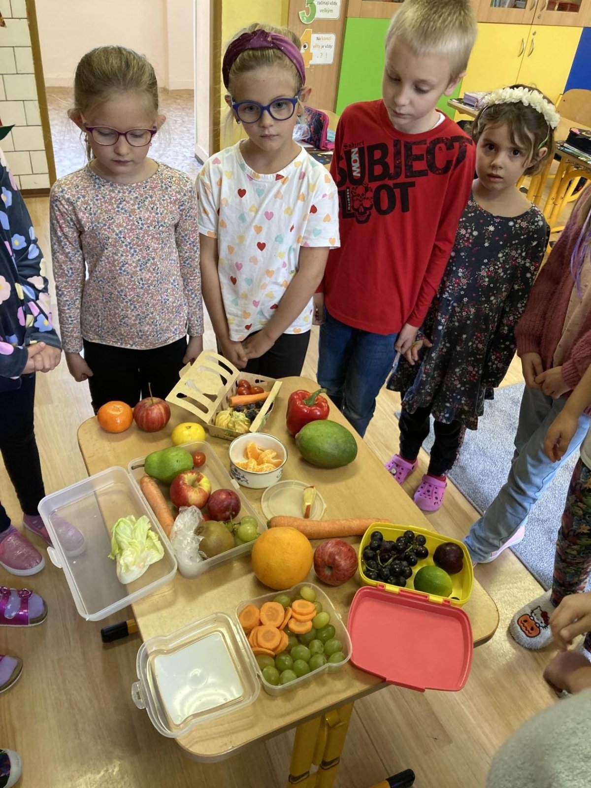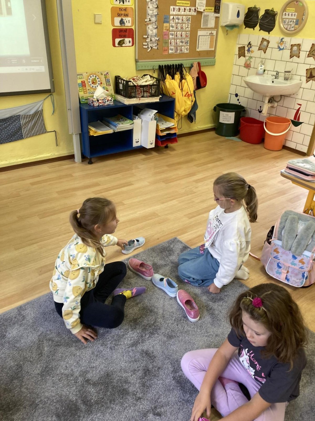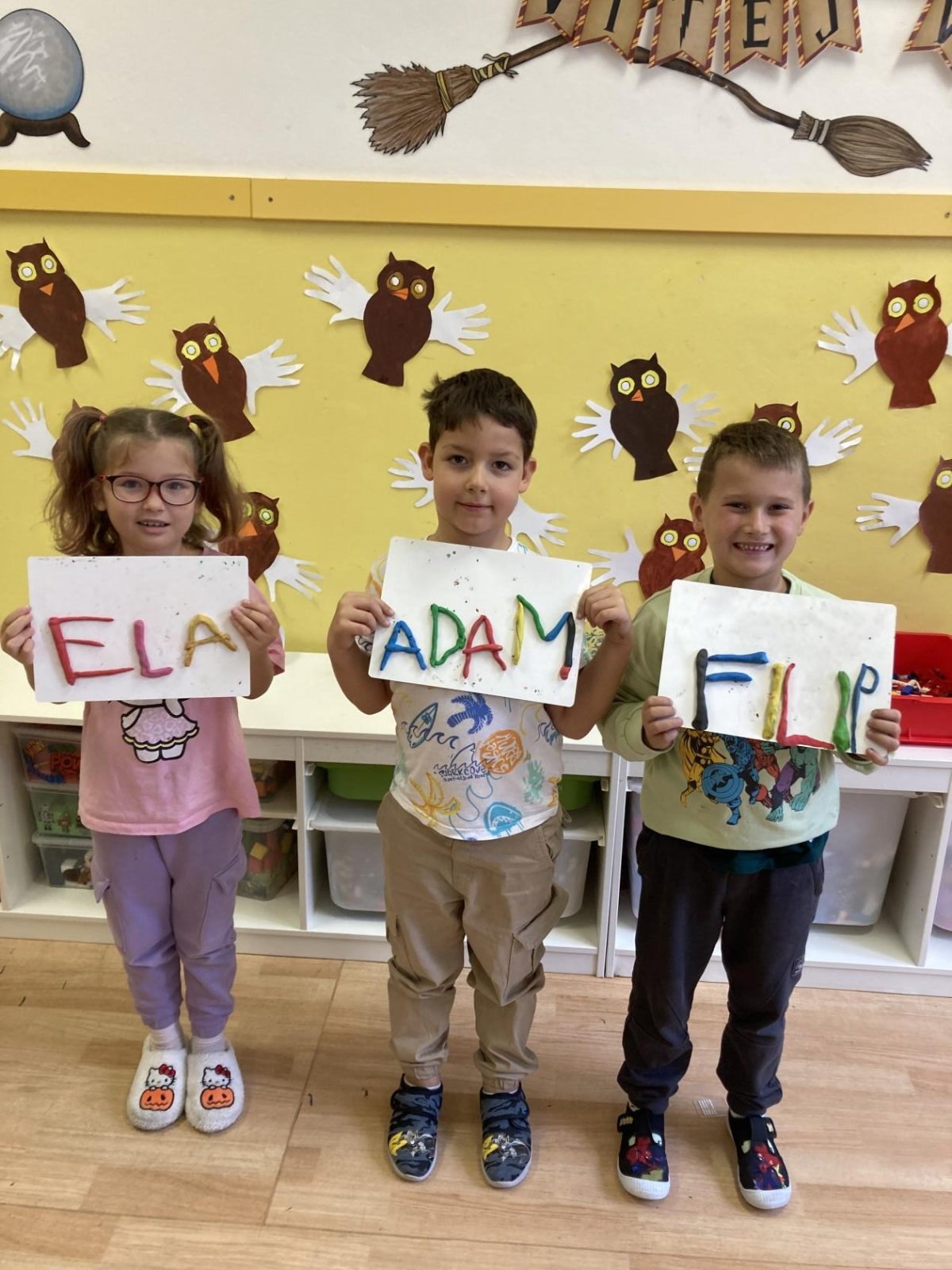 Tvořili jsme slova a jména z plastelíny i z písmenek, skládali jsme probraná písmenka z přezůvek, stavěli krychlové stavby podle plánu, užili si tělocvik místo Učení venku, ochutnávali ovoce a zeleninu a mnoho dalšího ...
