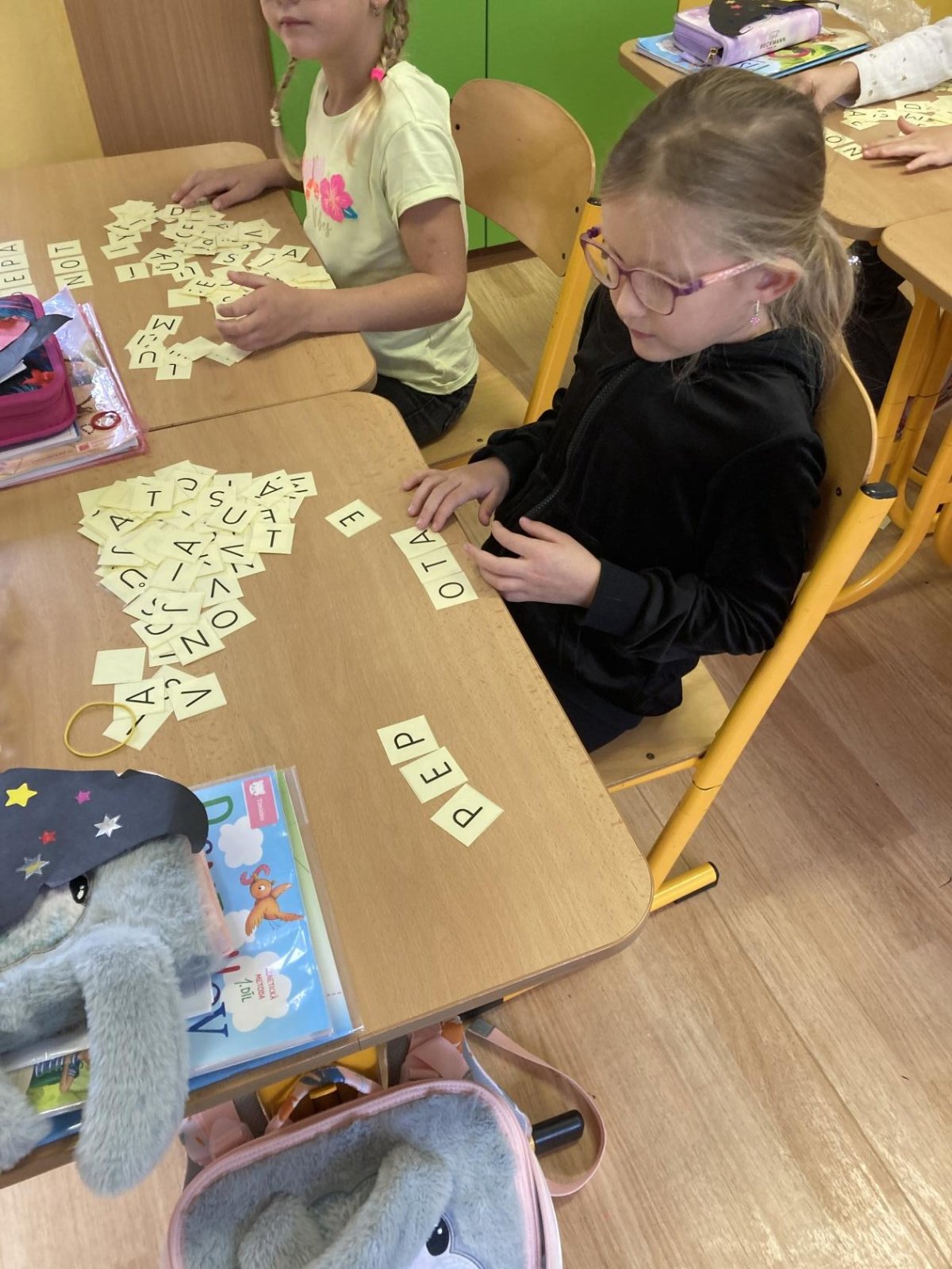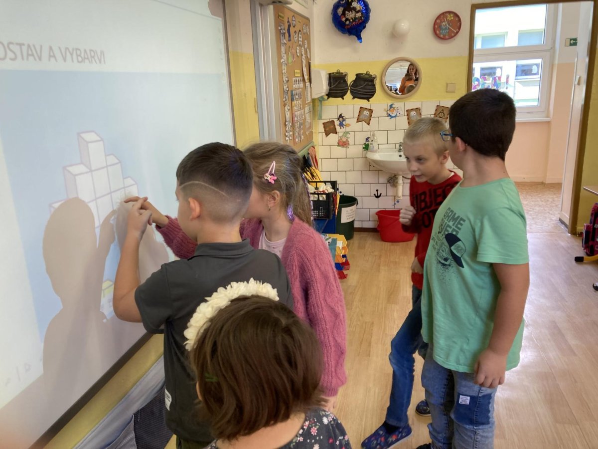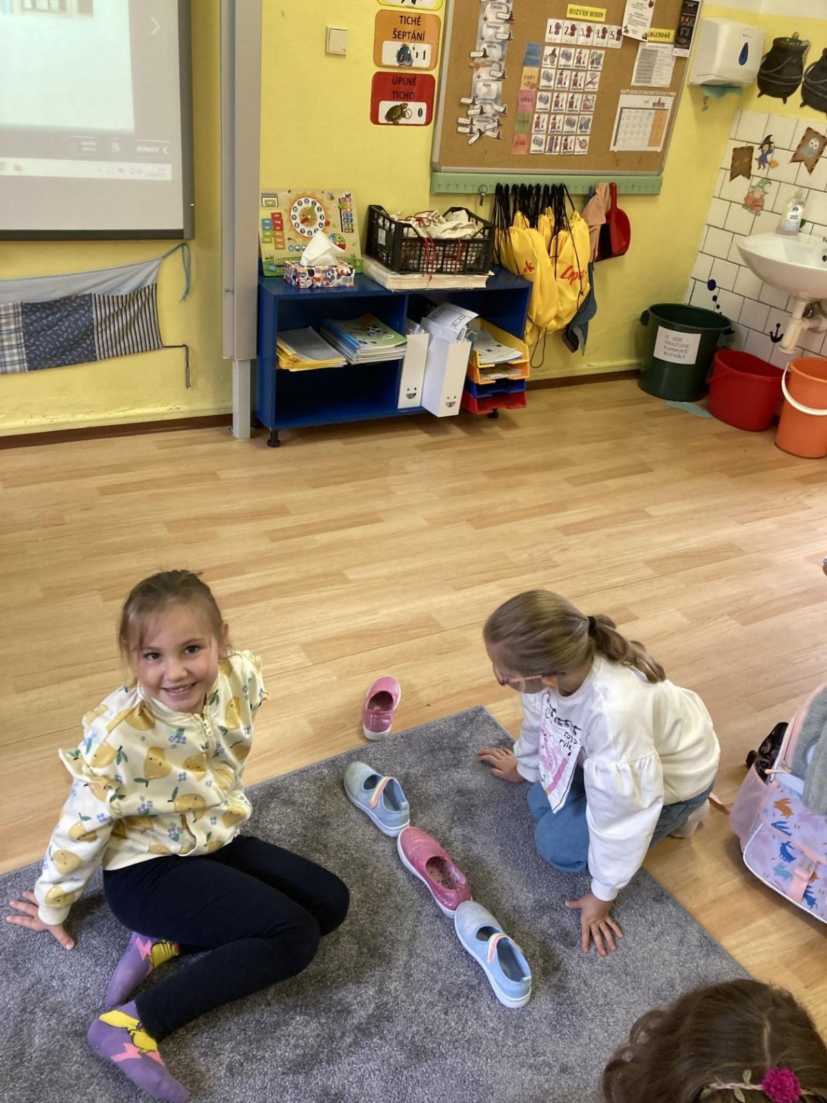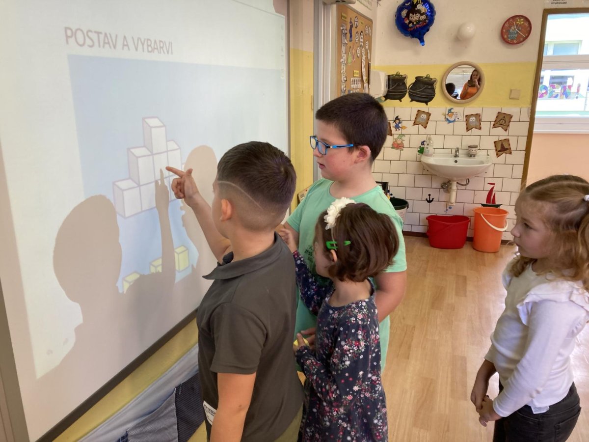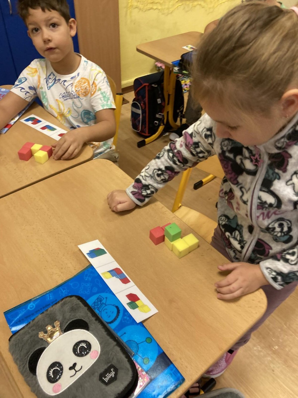 Tvořili jsme slova a jména z plastelíny i z písmenek, skládali jsme probraná písmenka z přezůvek, stavěli krychlové stavby podle plánu, užili si tělocvik místo Učení venku, ochutnávali ovoce a zeleninu a mnoho dalšího ...