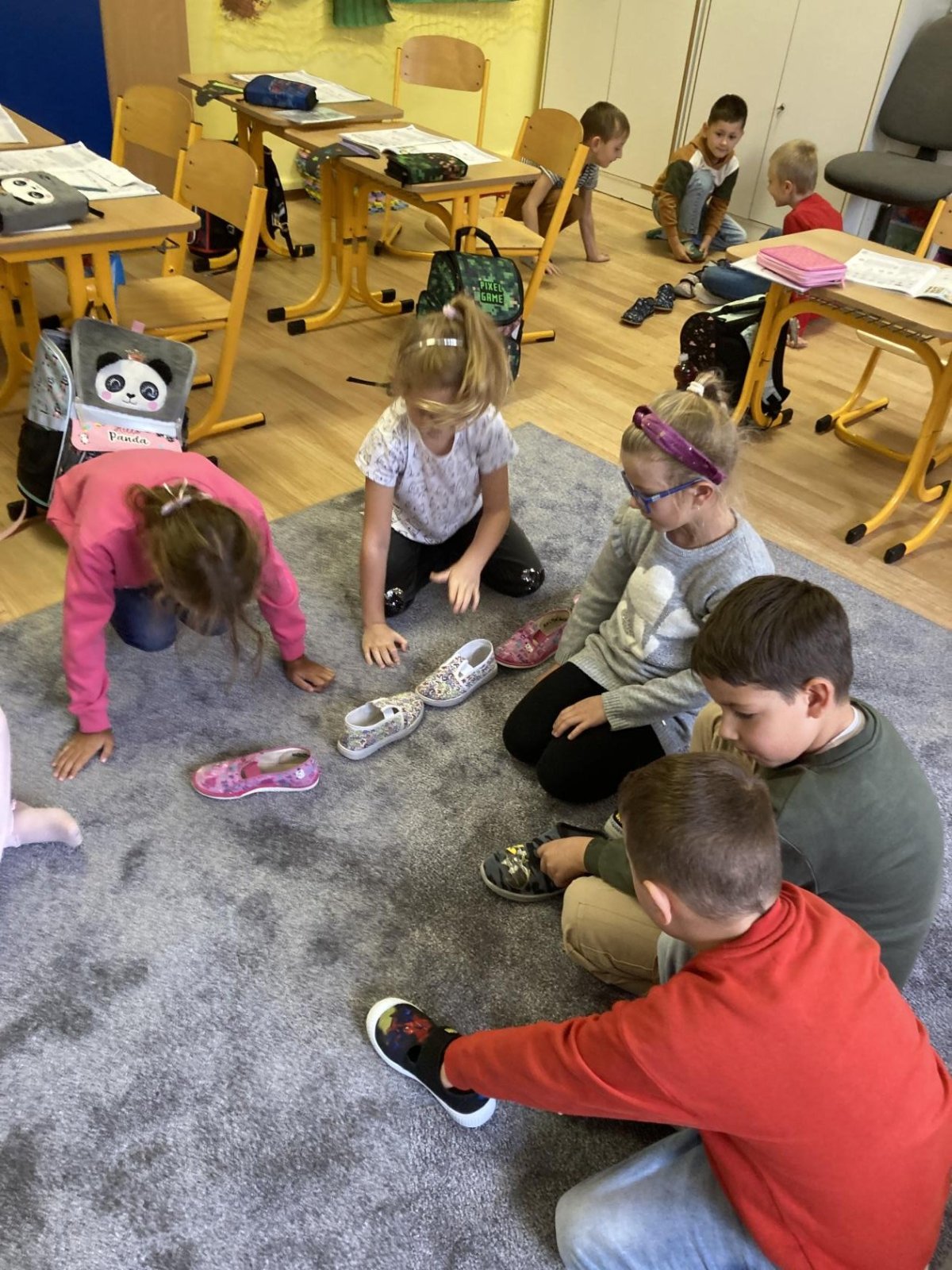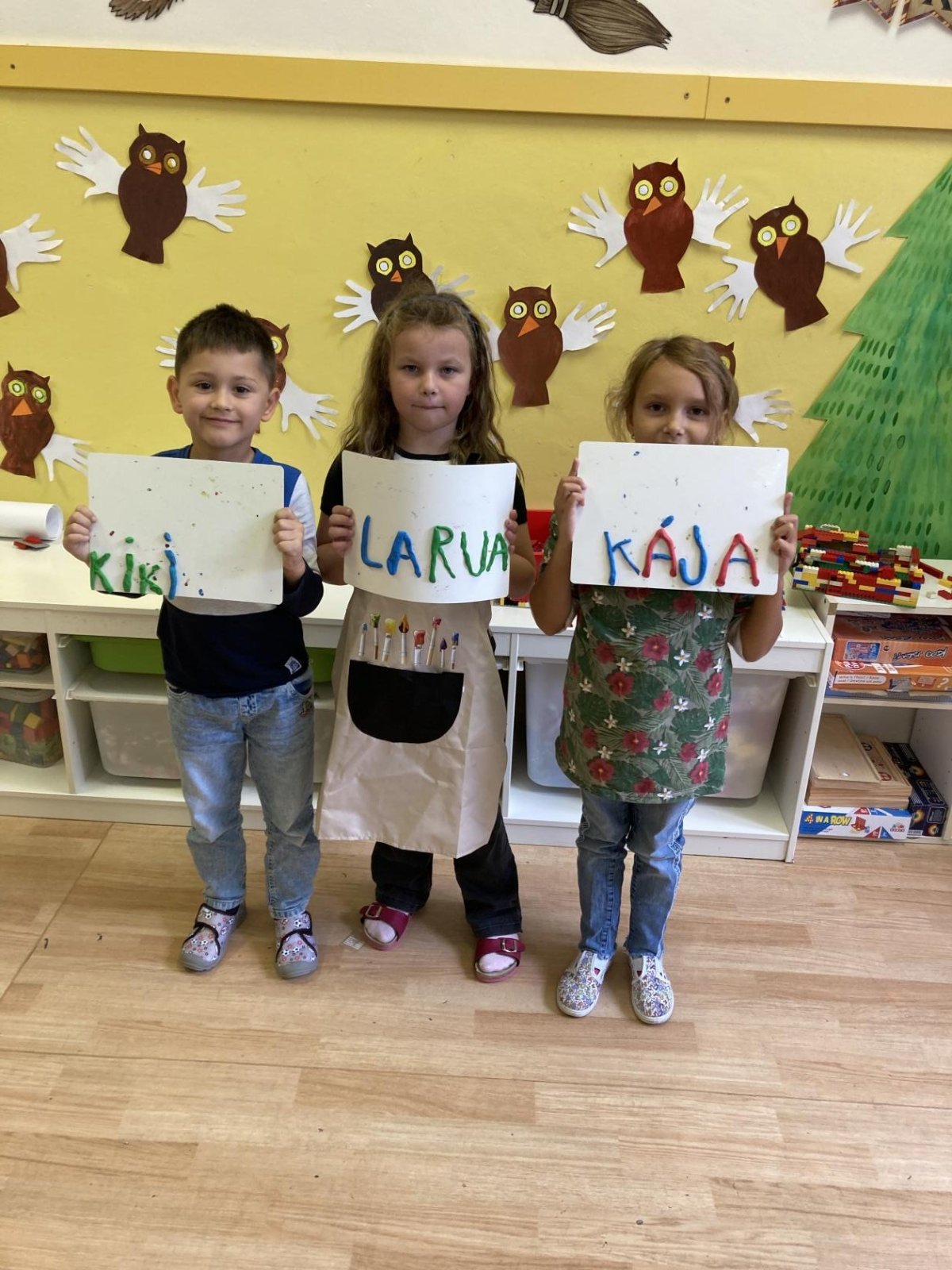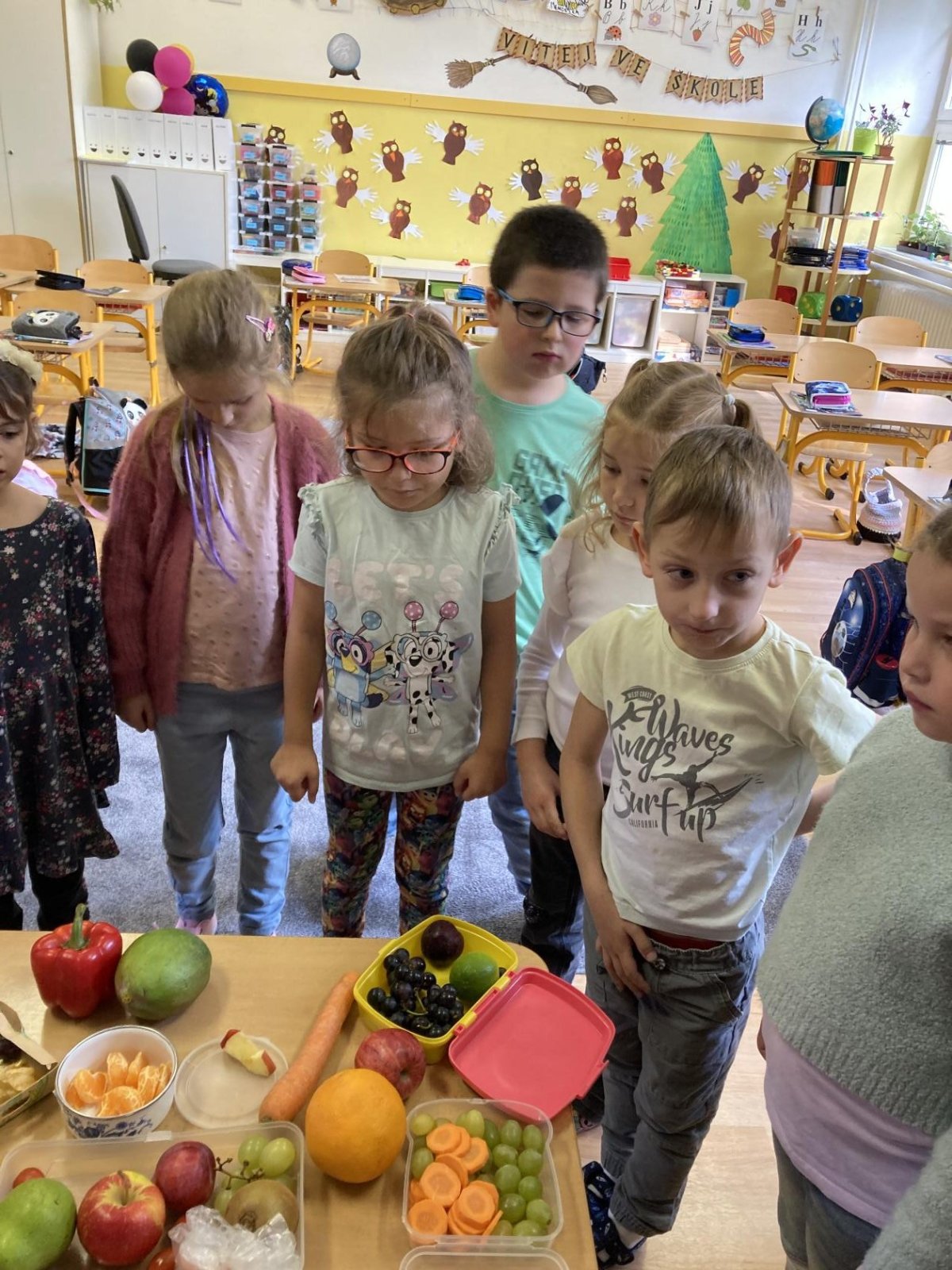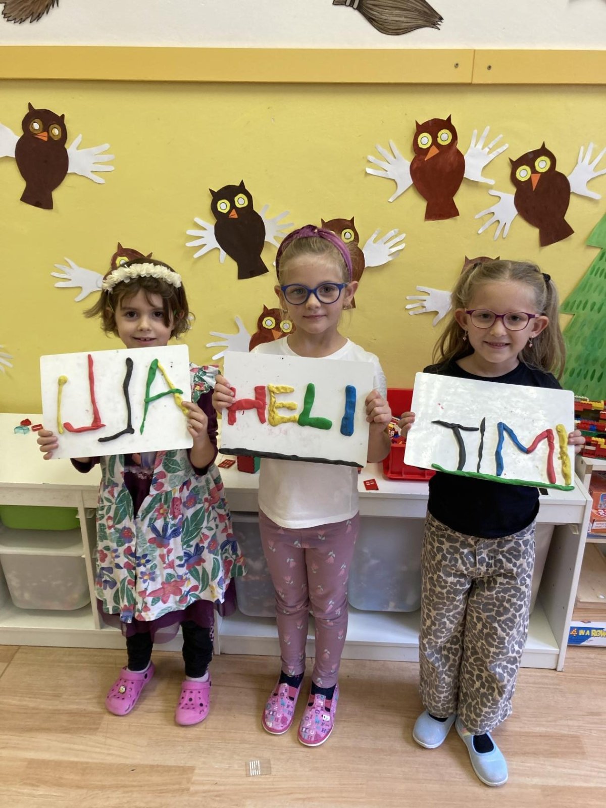 Tvořili jsme slova a jména z plastelíny i z písmenek, skládali jsme probraná písmenka z přezůvek, stavěli krychlové stavby podle plánu, užili si tělocvik místo Učení venku, ochutnávali ovoce a zeleninu a mnoho dalšího ...