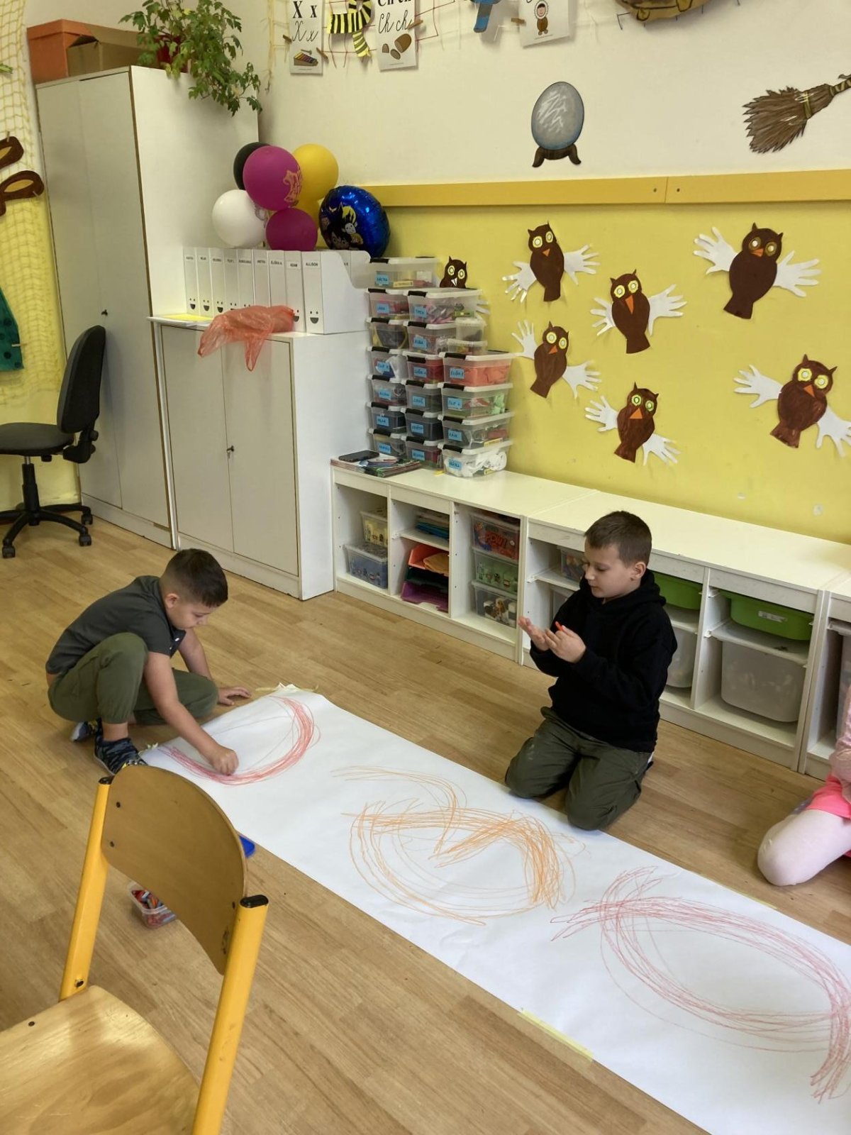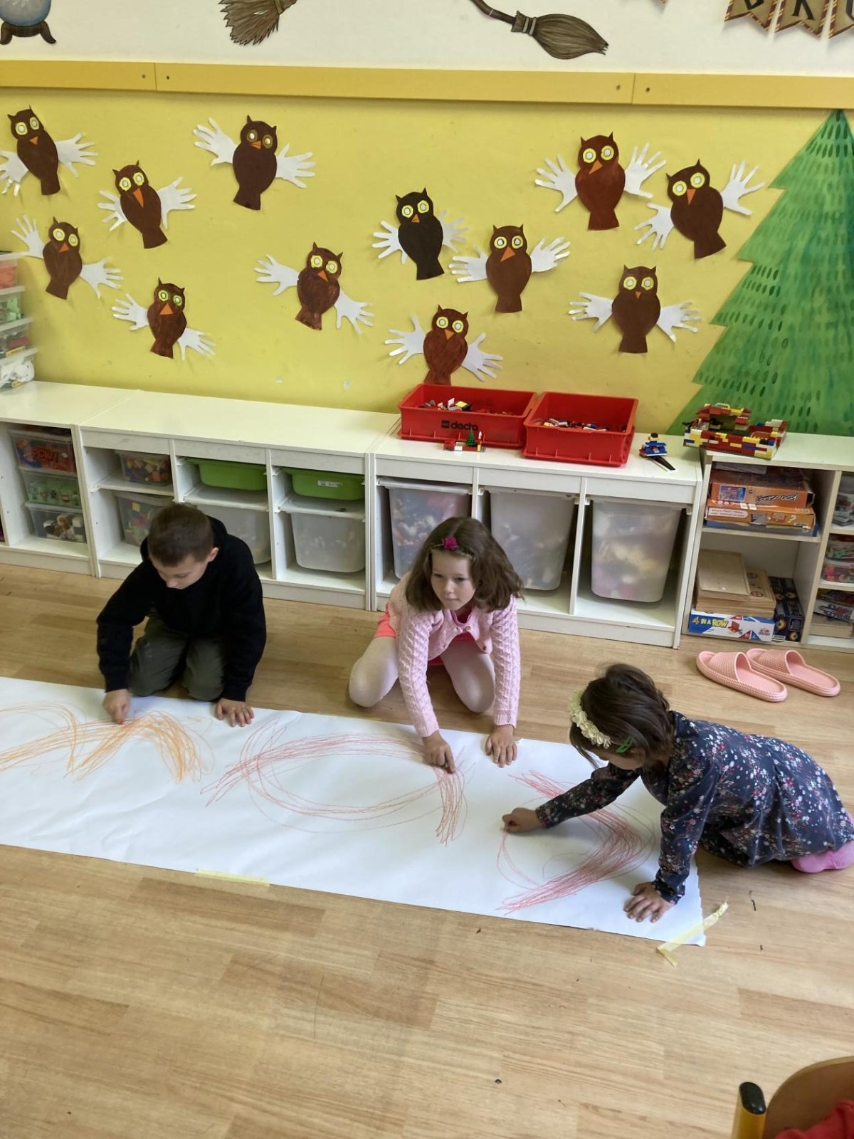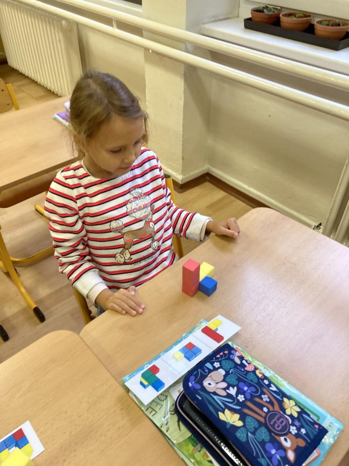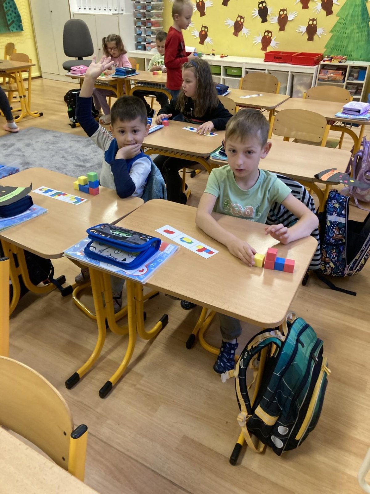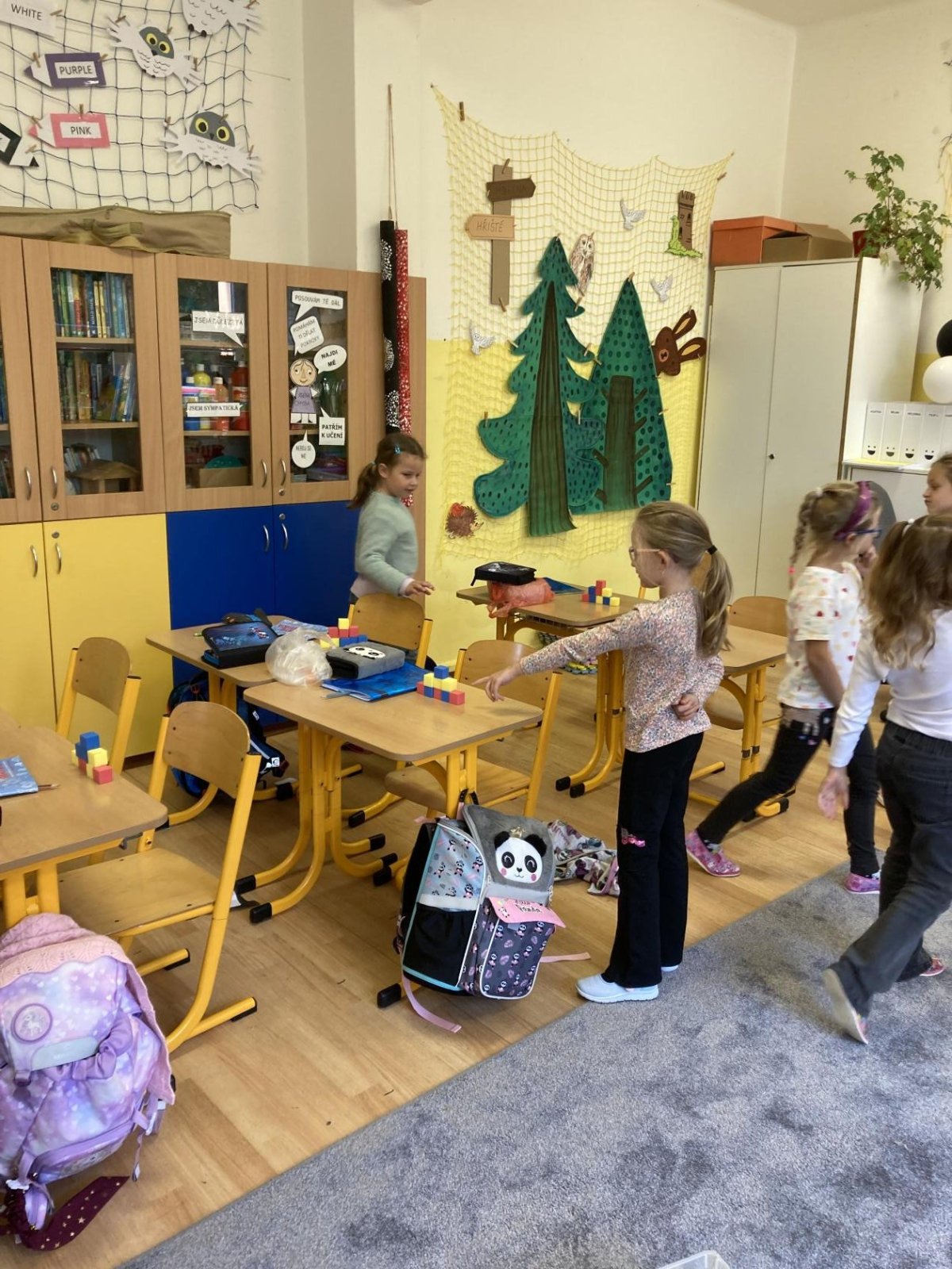 Tvořili jsme slova a jména z plastelíny i z písmenek, skládali jsme probraná písmenka z přezůvek, stavěli krychlové stavby podle plánu, užili si tělocvik místo Učení venku, ochutnávali ovoce a zeleninu a mnoho dalšího ...