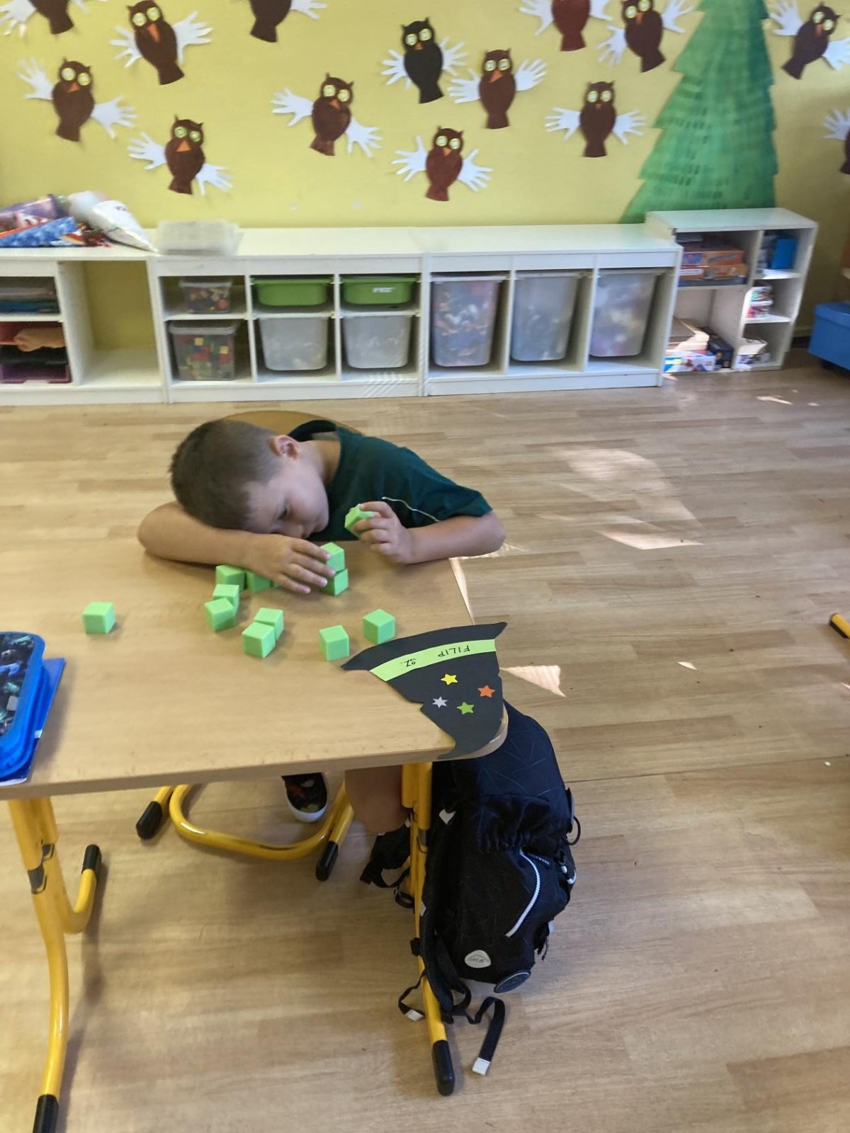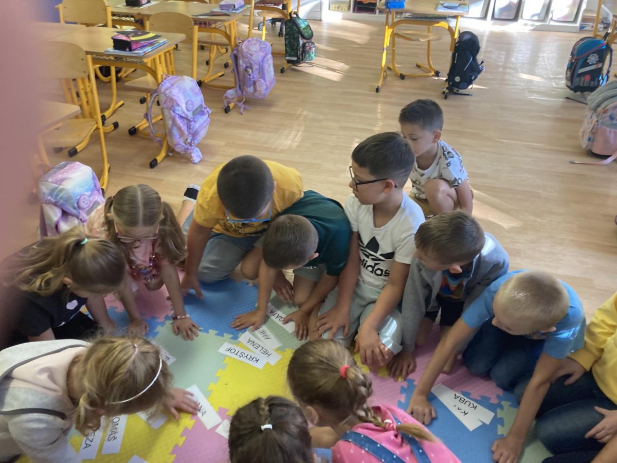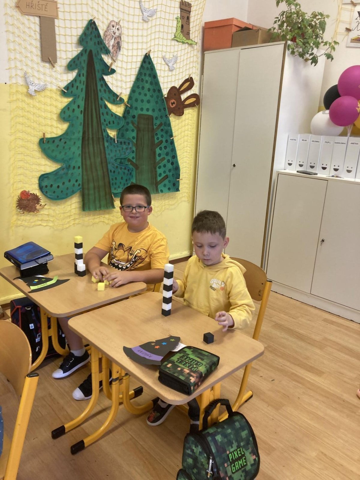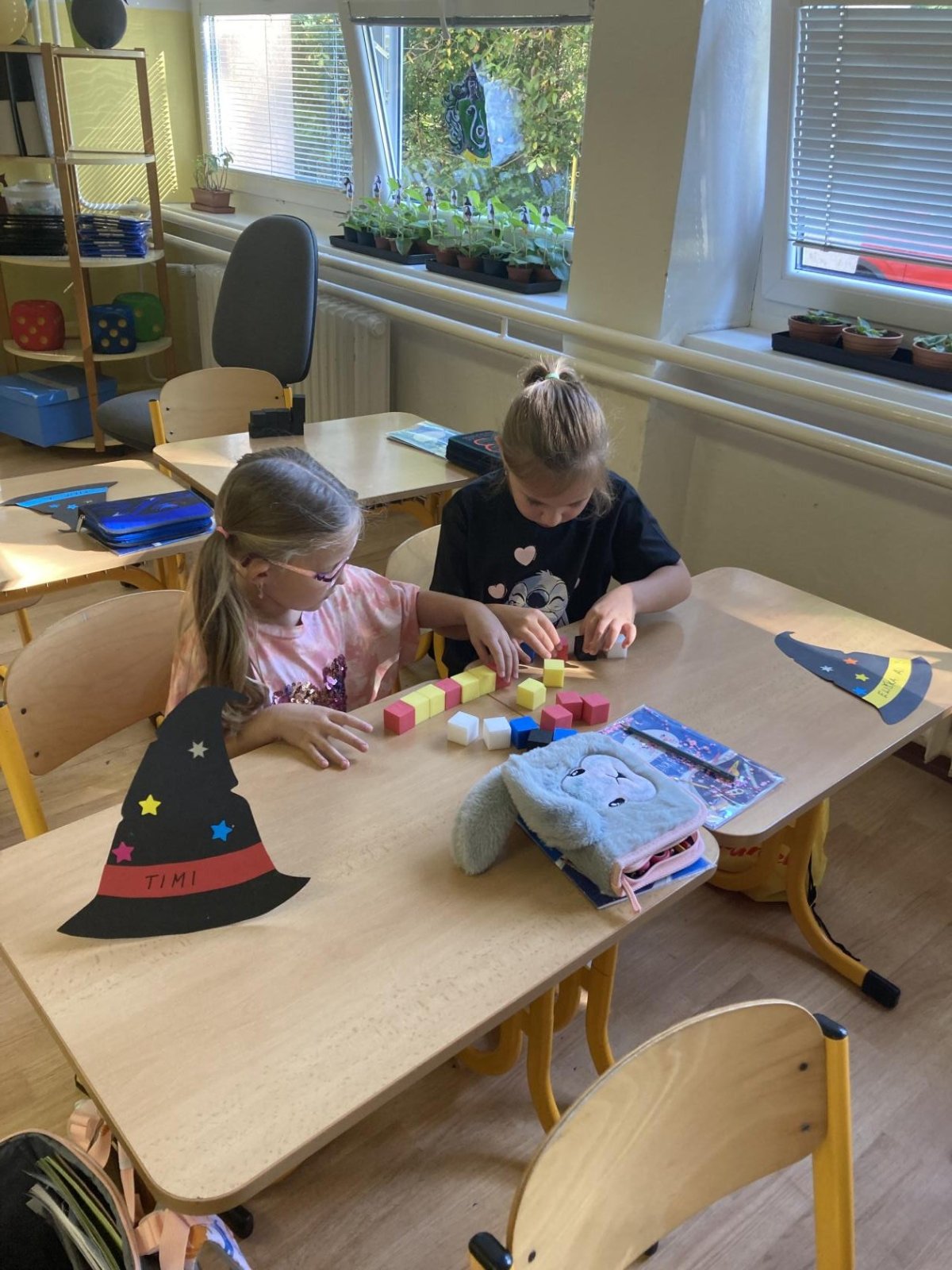 Hledáme své jméno, určujeme první hlásku, pátráme, kdo má s námi na začátku jména stejnou hlásku. Stavíme z krychlí.