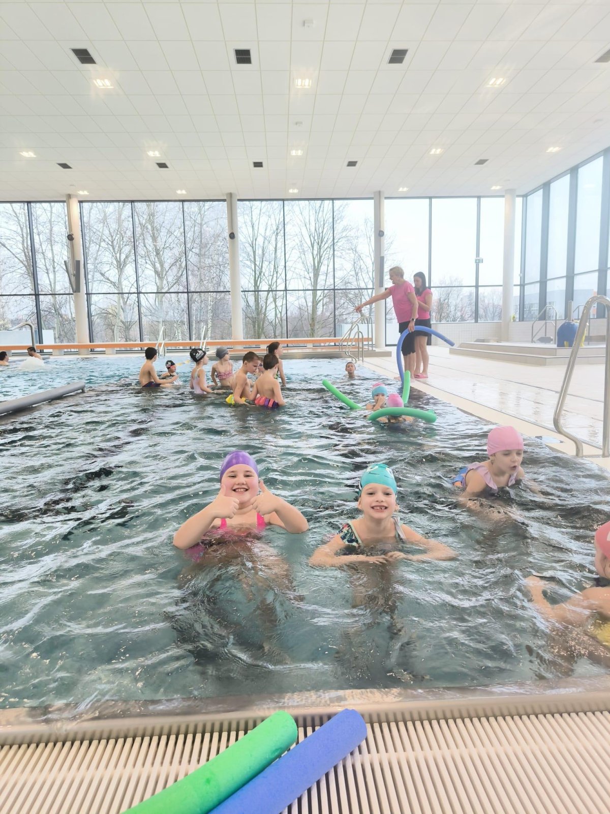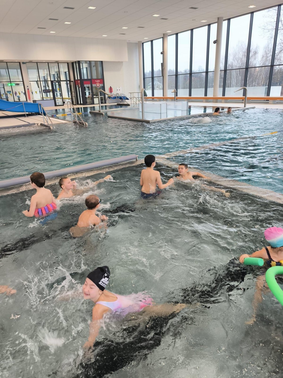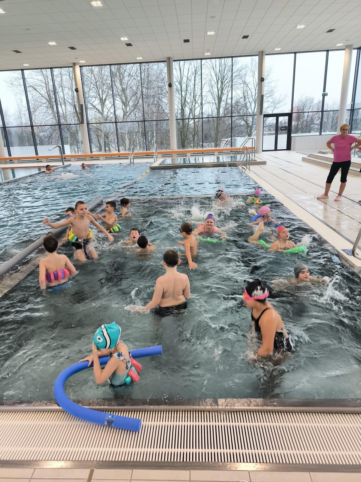 Od února děti čekají každé úterý lekce plavání. Dnes byli rozdělení do tří skupin podle dovedností a užili si i volné plavání.