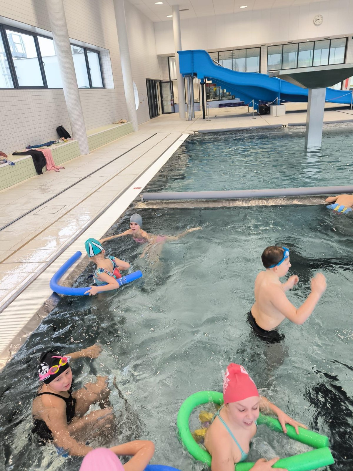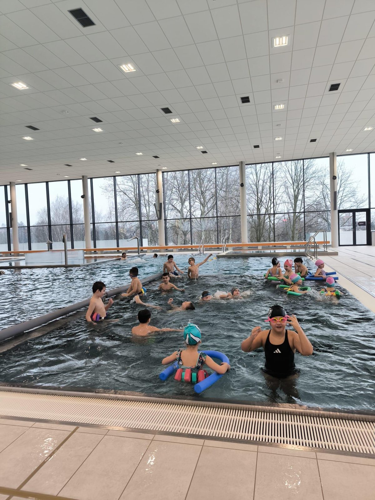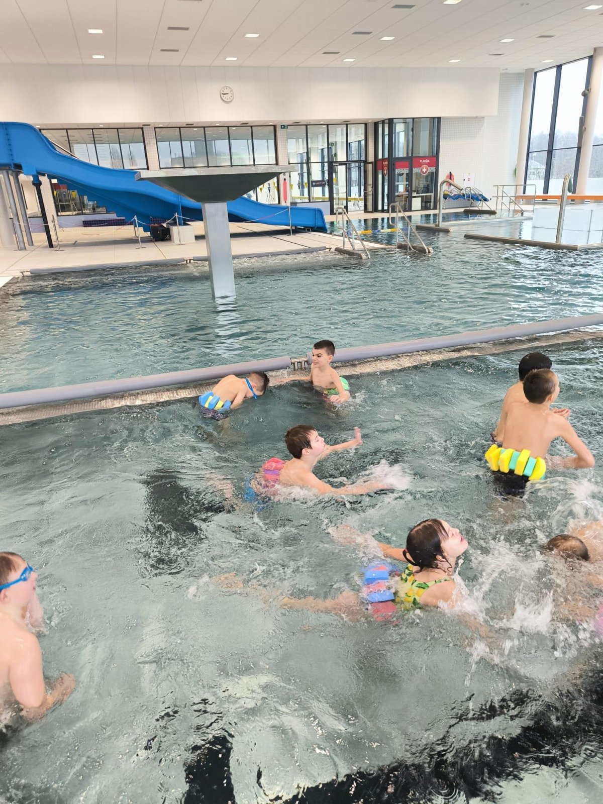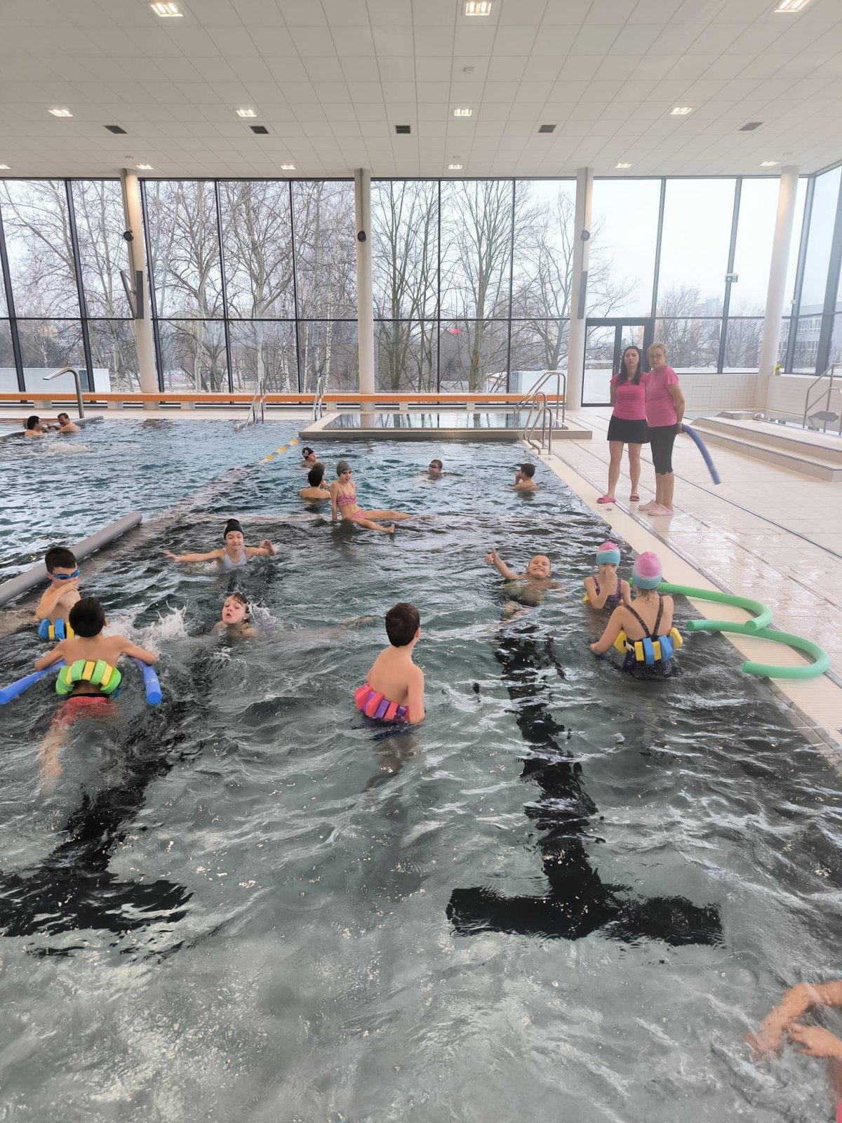 Od února děti čekají každé úterý lekce plavání. Dnes byli rozdělení do tří skupin podle dovedností a užili si i volné plavání.