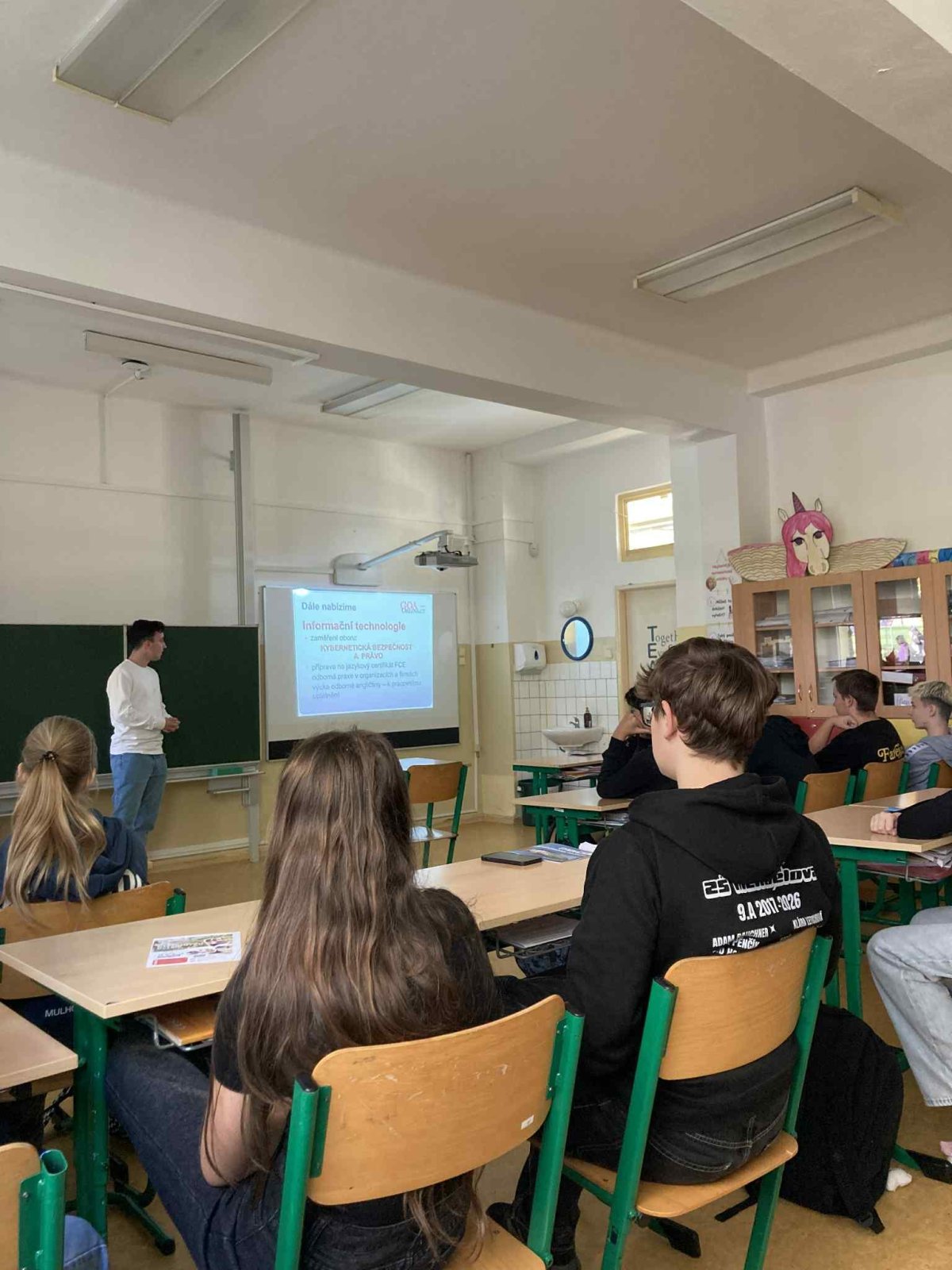 Dnes naši deváťáci přivítali na škole zástupce několika středních škol, kteří jim přijeli představit možnosti dalšího studia po ukončení základní školy. Mezi hosty byli zástupci Gymnázia a Obchodní akademie Orlová a Střední průmyslové školy elektrotechniky a informatiky Havířov. Spolu s učiteli dorazili i studenti těchto škol, kteří našim žákům přiblížili nejen studijní obory, ale také atmosféru a život na střední škole z pohledu současných studentů. Žáci se dozvěděli o přijímacím řízení, studijních programech, možnostech dalšího uplatnění i o mimoškolních aktivitách, které školy nabízejí. Setkání bylo pro deváťáky velmi přínosné – pomohlo jim lépe se zorientovat v nabídce středních škol a udělat si představu o tom, jaký směr by mohli po základní škole zvolit. Děkujeme zástupcům škol i jejich studentům za návštěvu a cenné informace.