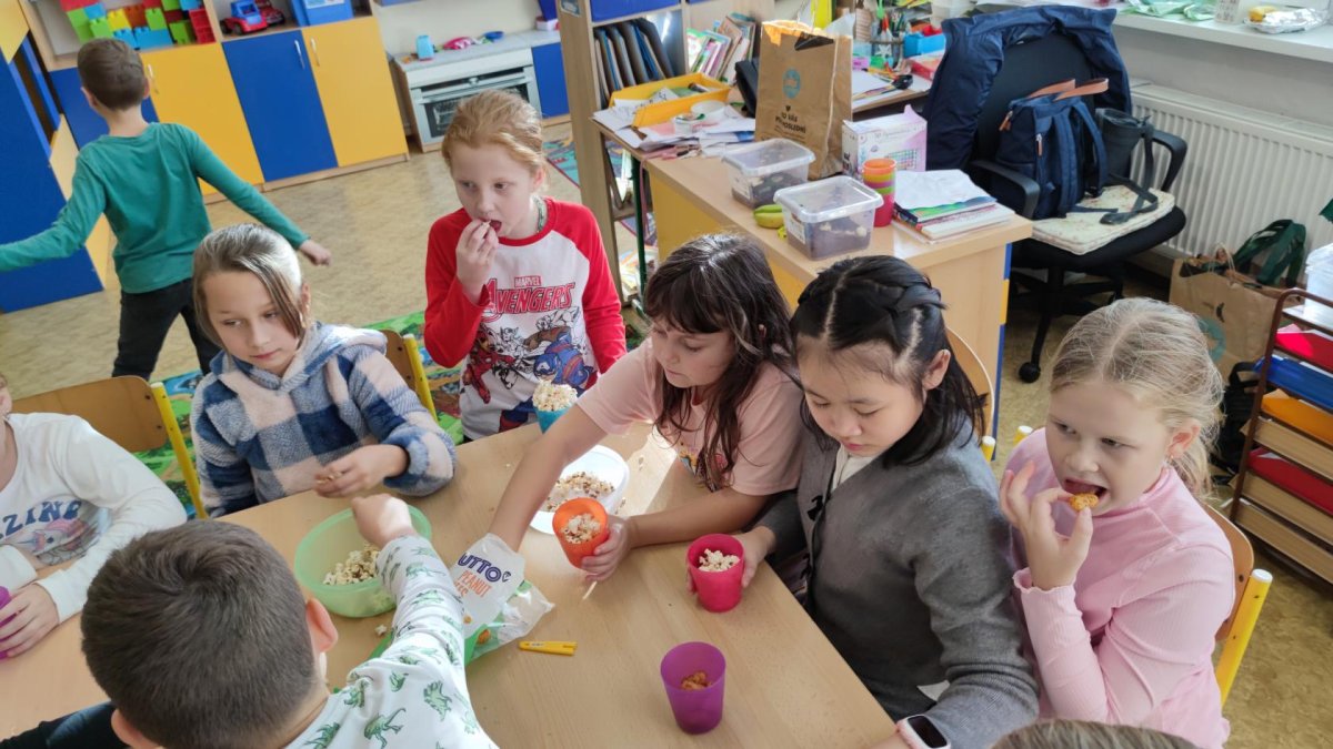 Děti z naší školní družiny se zapojily do výtvarné soutěže pořádané školní družinou při ZŠ Majakovského. Hlavní výhrou byla živá oblovka žravá. Slavnostní vyhlášení soutěže se konalo v pátek 14. 11. 2025. Akci jsme si moc užili. Pochutnali jsme si na připravené bábovce s čajem. Prohlédli jsme si všechna vystavená díla i zajímavá živá zvířátka jako pakobylky či rosnice. Za příjemně strávené dopoledne děkujeme vedoucí vychovatelce ŠD při ZŠ Majakovského, paní Miladě Stejskalové.