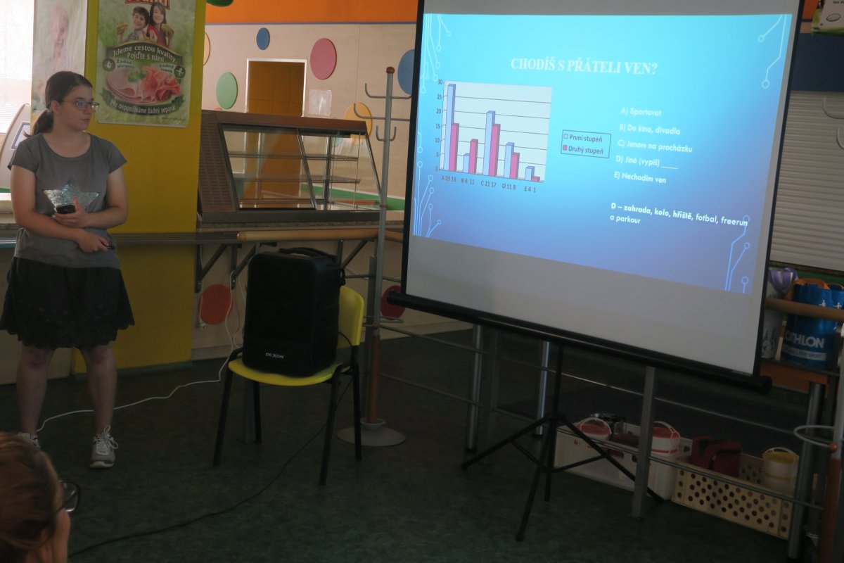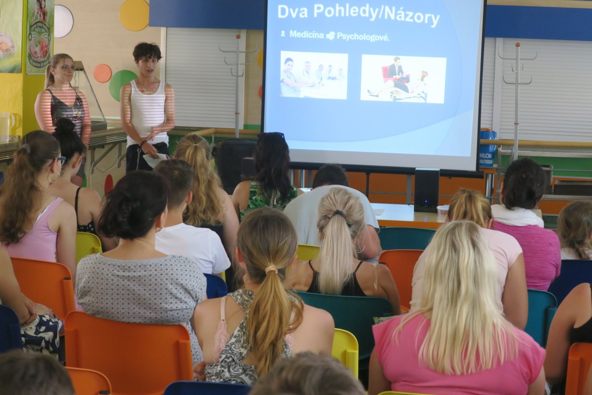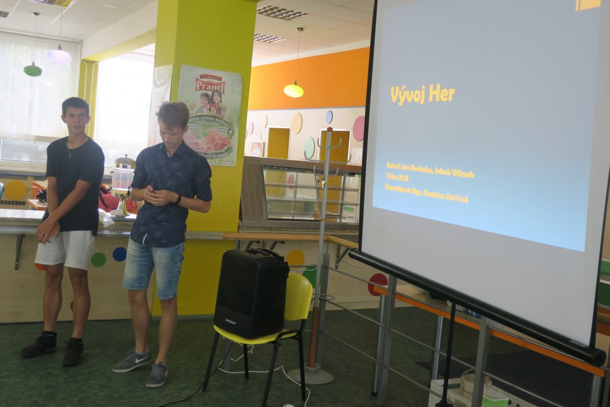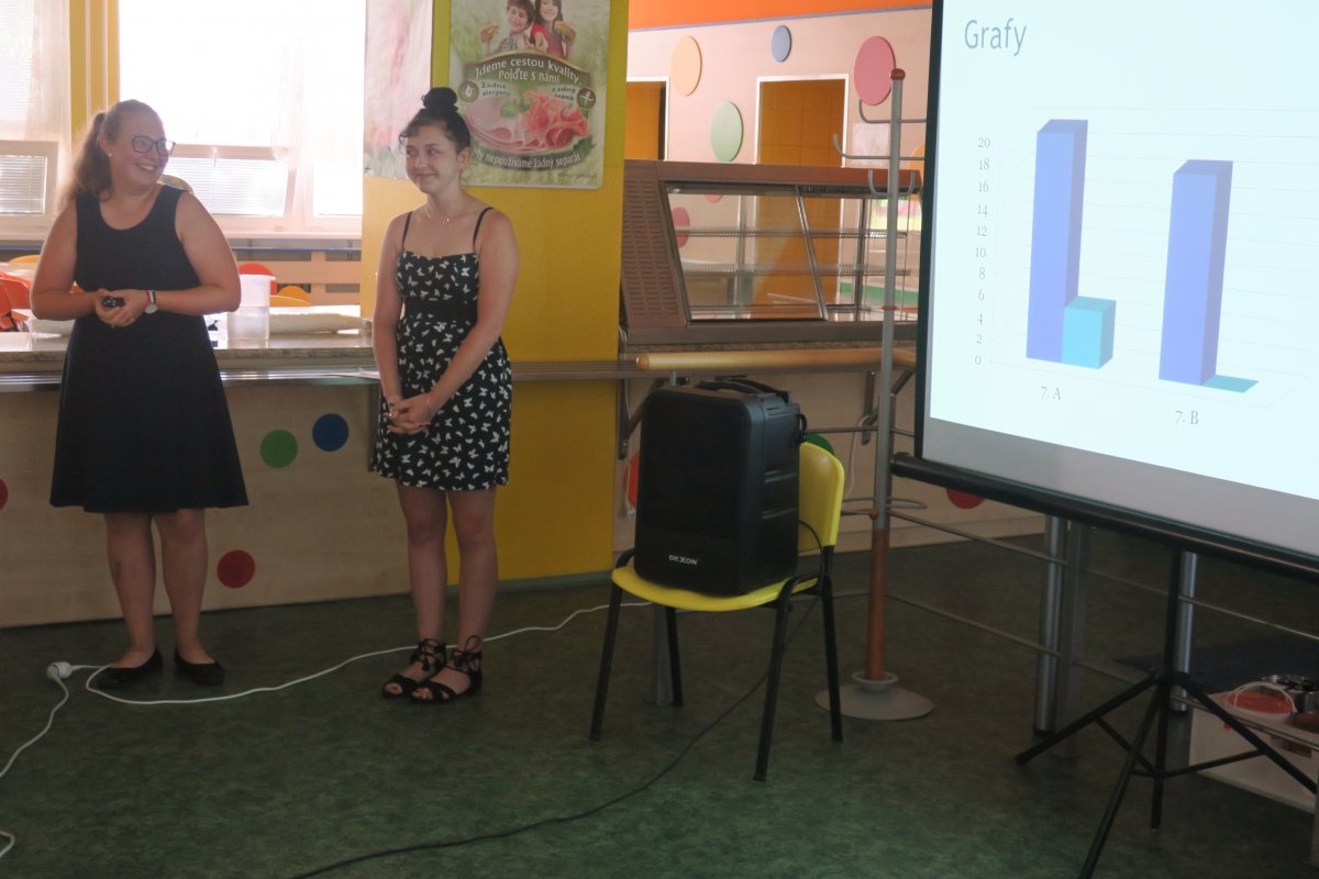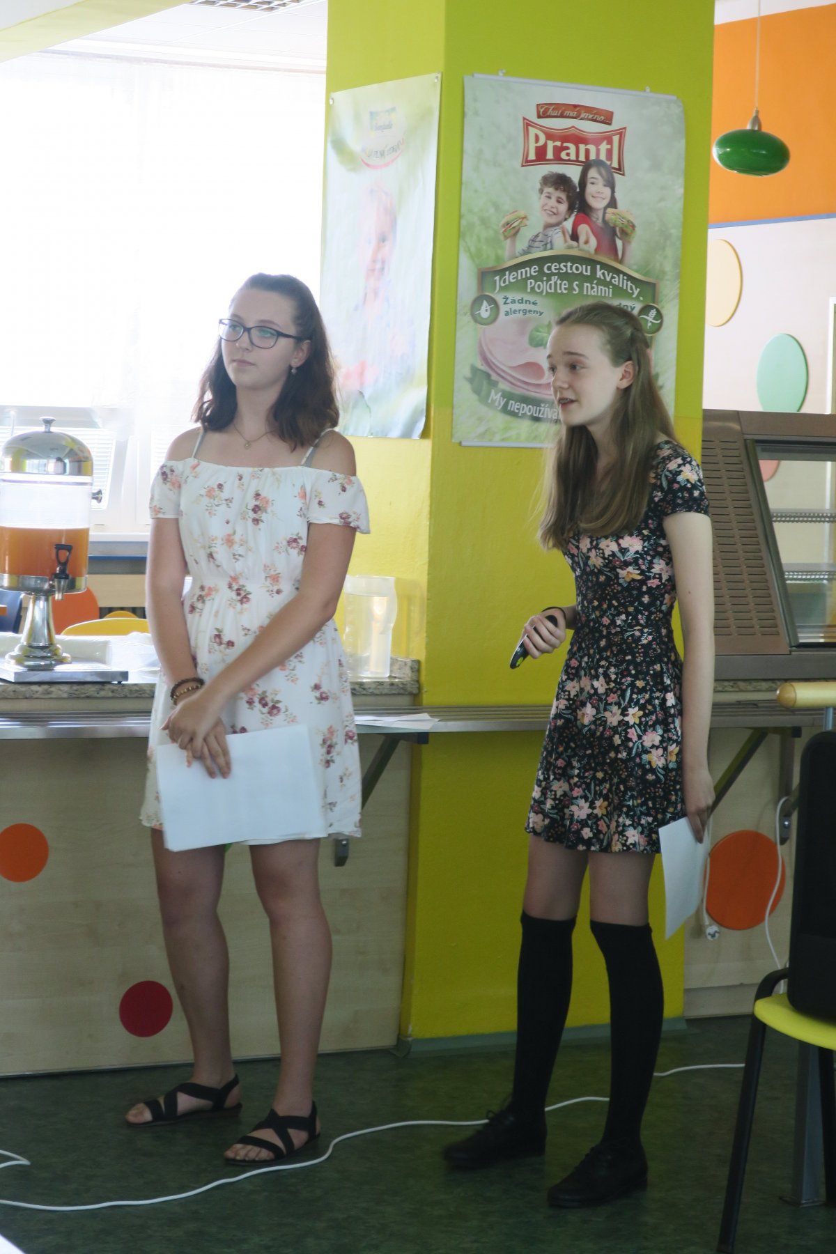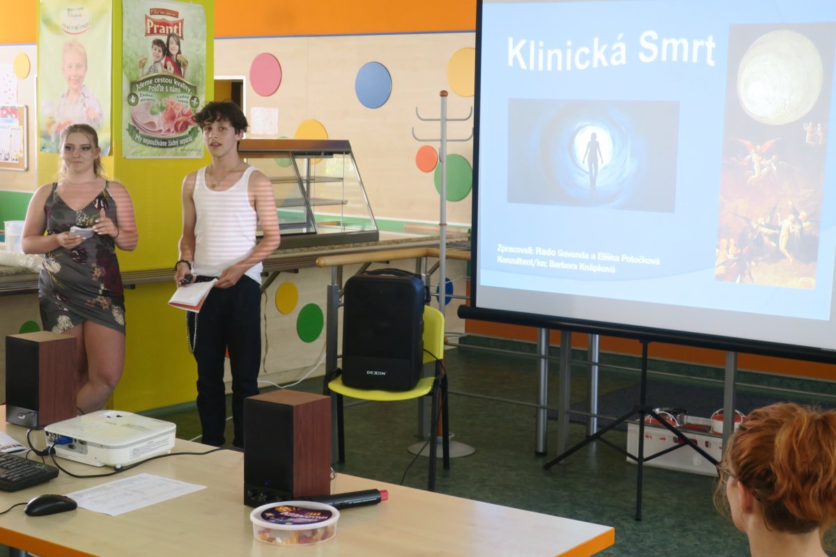 V úterý a ve středu 18. a 19. 6. 2019 odpoledne předstupovali ve školní jídelně postupně naši deváťáci před hosty z řad rodičů, pedagogů i současných či bývalých žáků Mendelky, aby jim odprezentovali své závěrečné absolventské práce. Témata, která si deváťáci vybrali a ve spolupráci s učiteli zpracovali, byla různorodá (viz. seznam níže). Návštěvníci veřejných prezentací tleskali a oceňovali, že zpracování a prezentování bylo na vysoké úrovni.