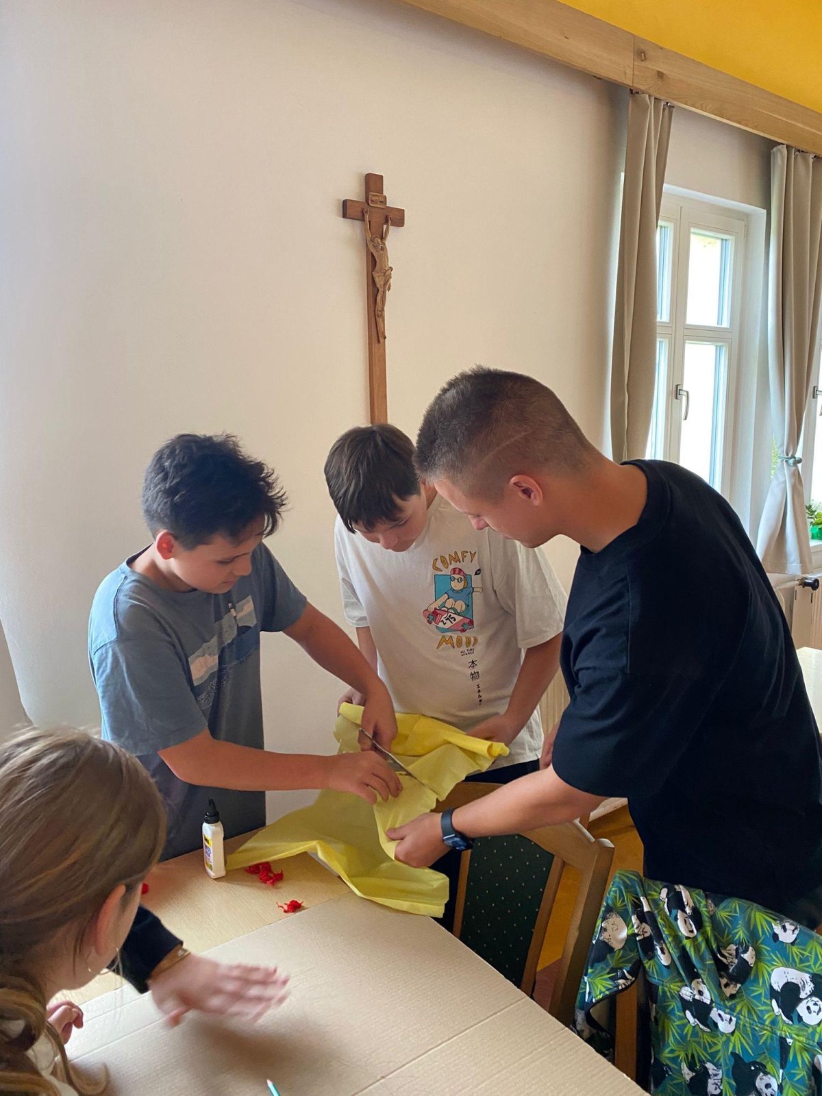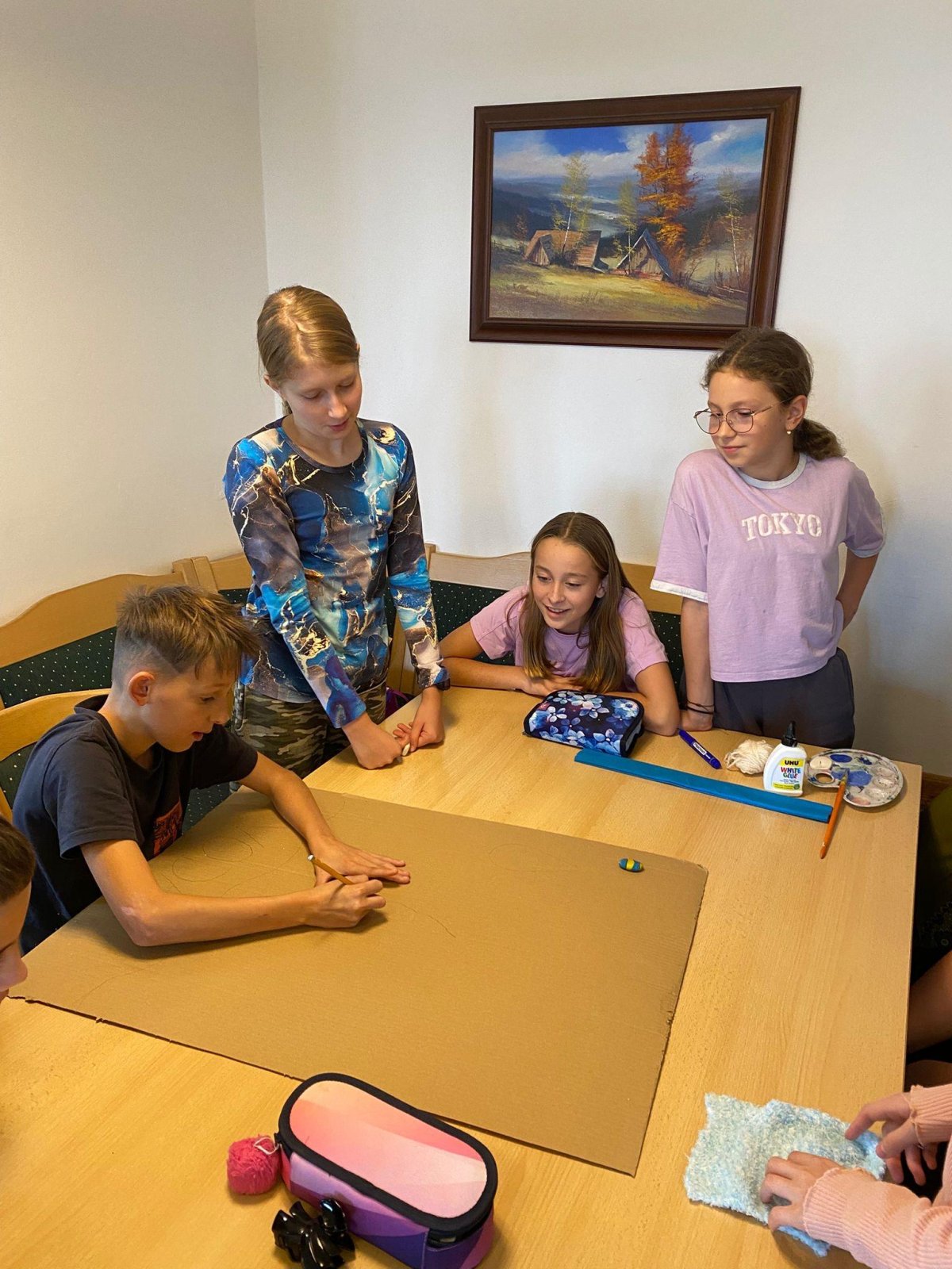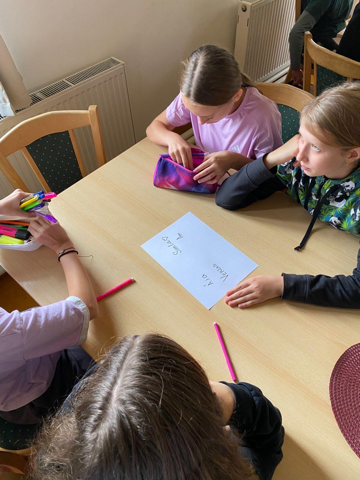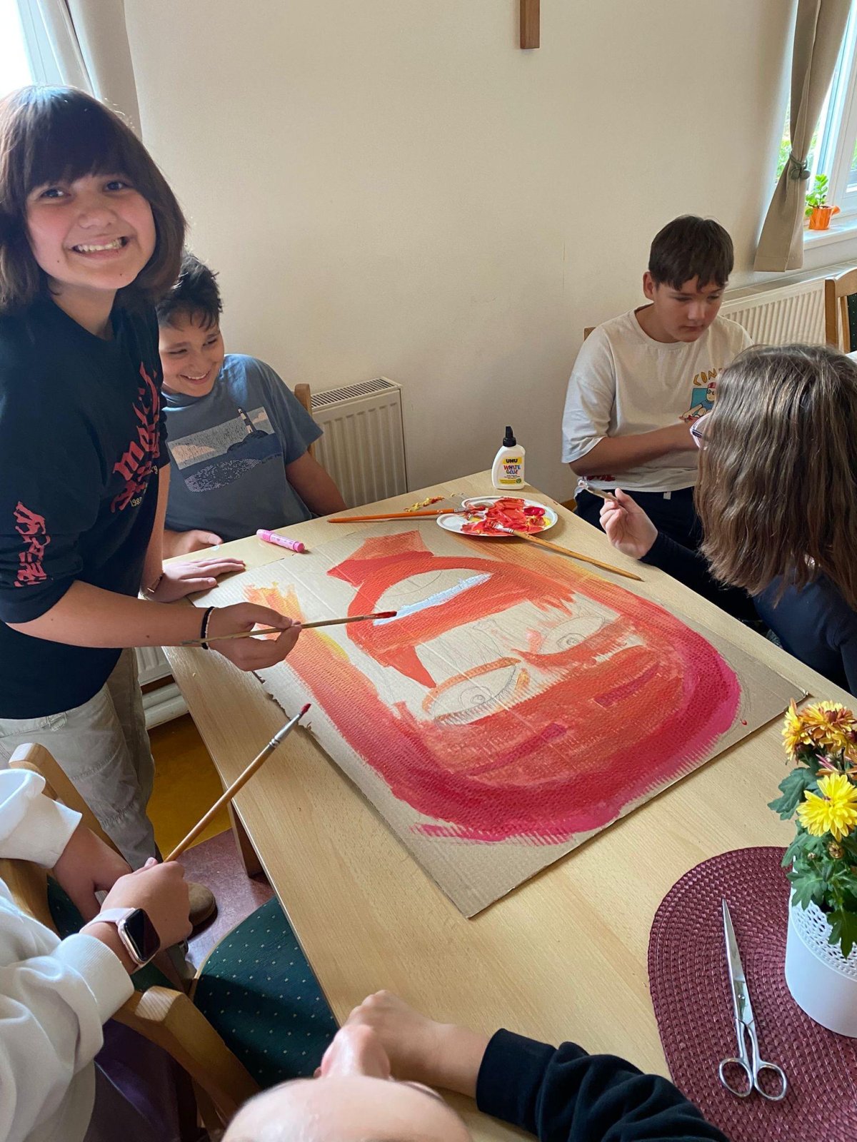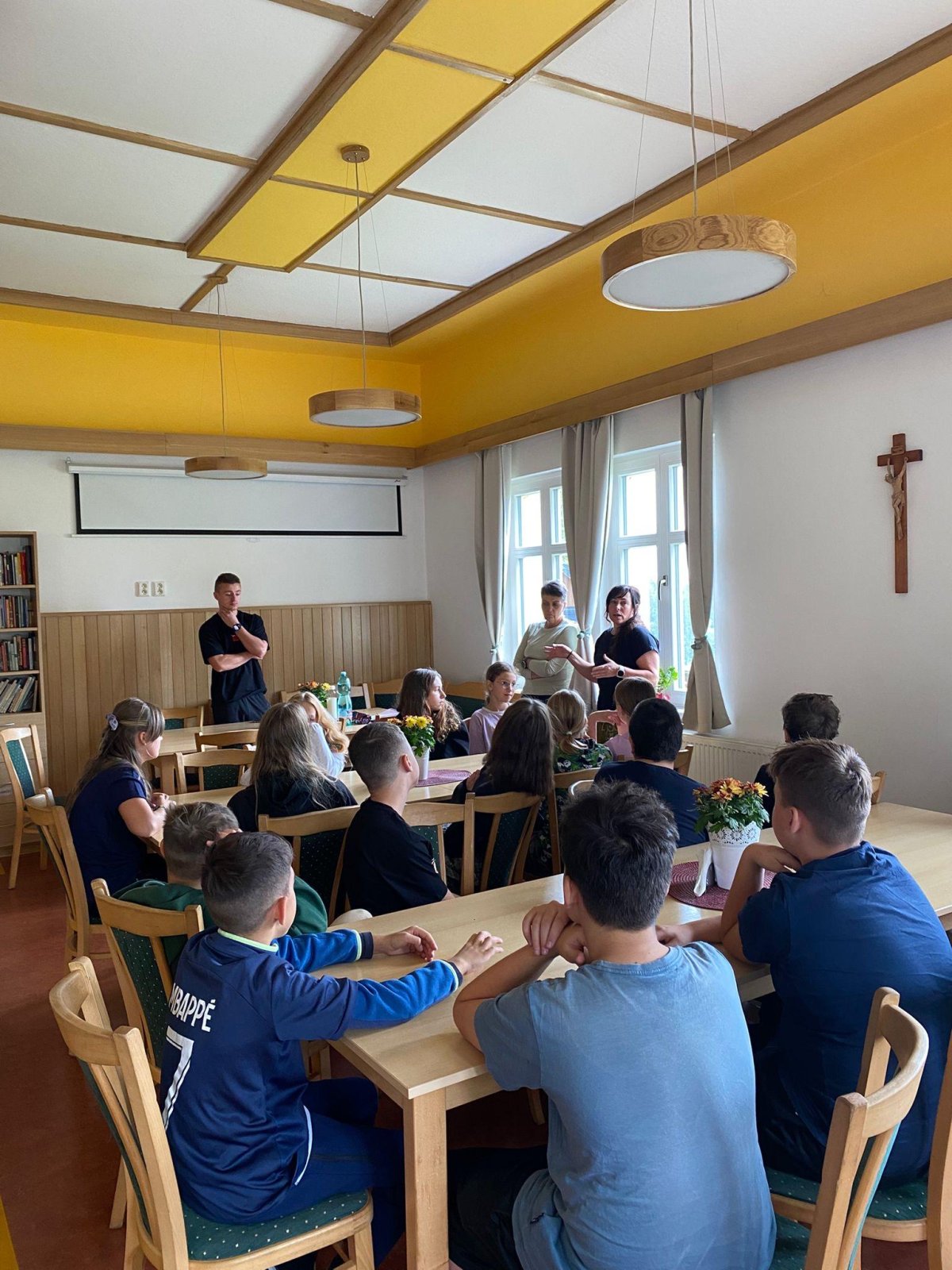Dneska se vám hlásíme z našeho adaptačního pobytu. Rozdělili jsme se do čtyř týmů podle živlů – oheň, voda, země a vzduch. Cílem celého pobytu je, abychom se mezi sebou lépe poznali, naučili se spolupracovat a zjistili, že i když jsme každý jiný, společně dokážeme velké věci.